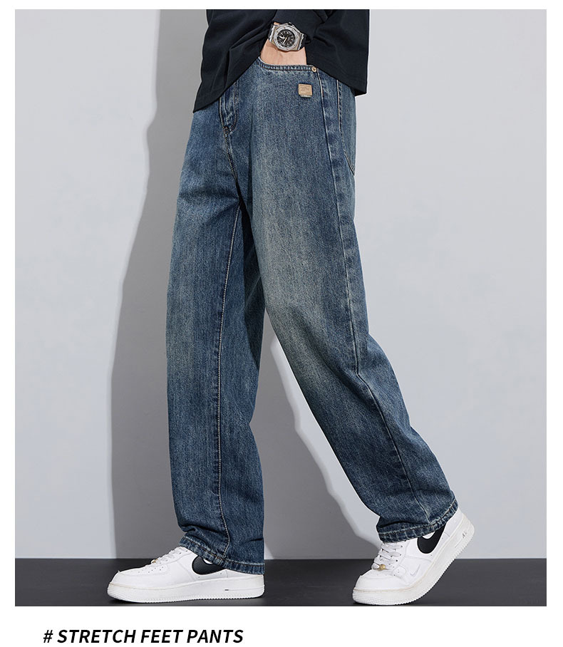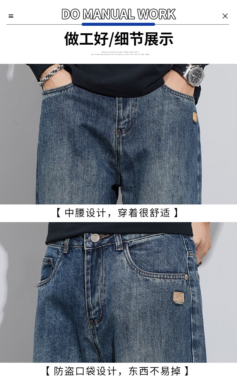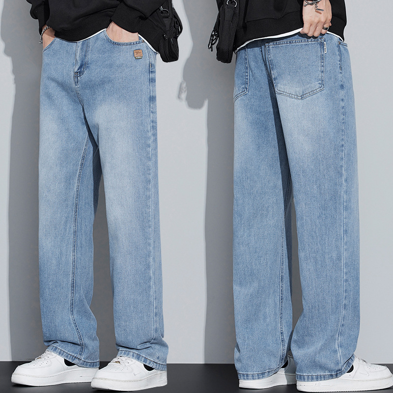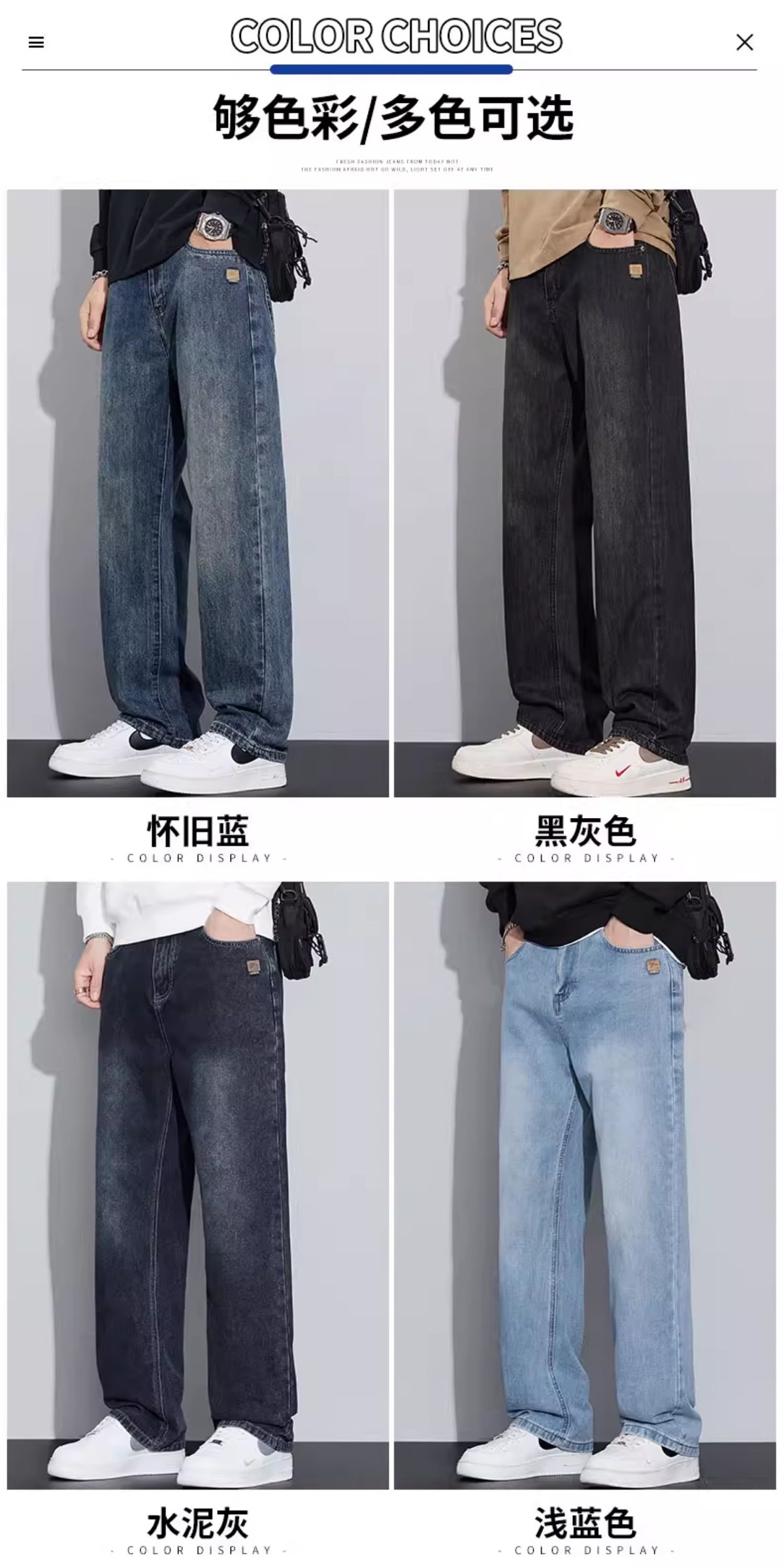 男装加绒牛仔裤男秋冬季2025新款男生休闲长裤宽松直筒阔腿裤子男