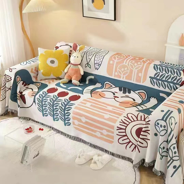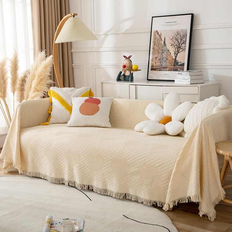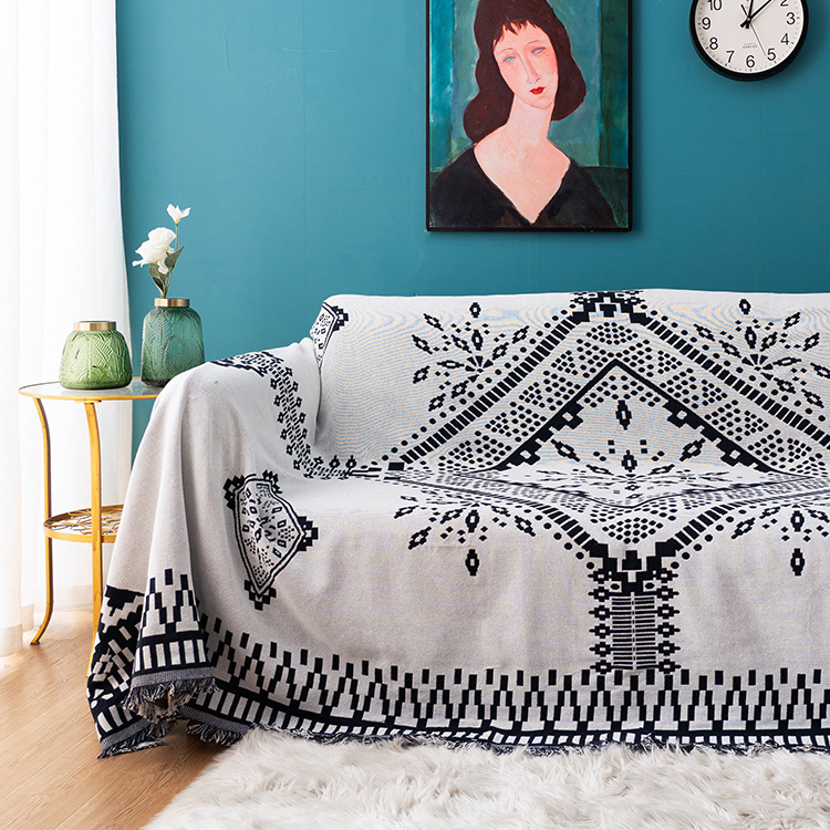 跨境沙发巾白色沙发垫沙发罩靠背巾线毯沙发套布艺沙发毯盖布