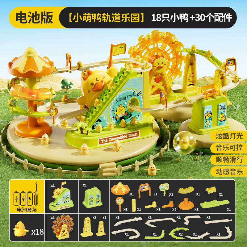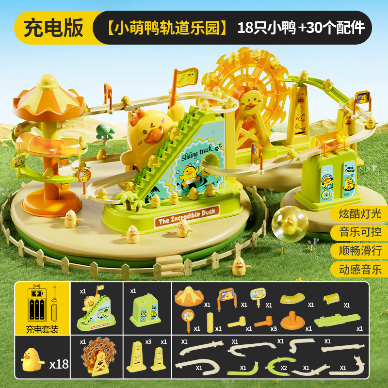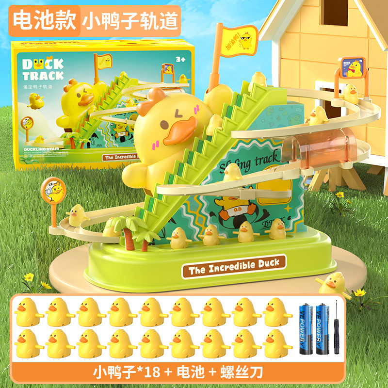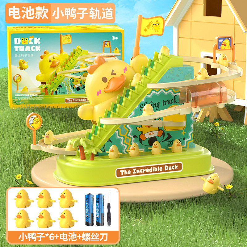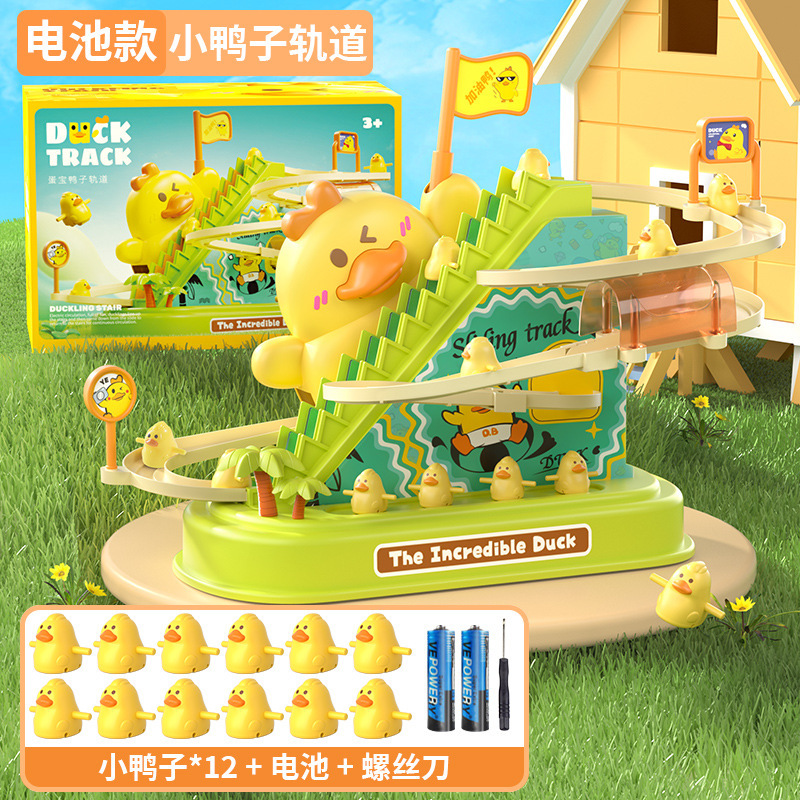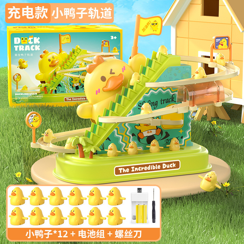 儿童电动轨道车小鸭子爬上楼梯音乐电动鸭子滑滑梯轨道车益智玩具