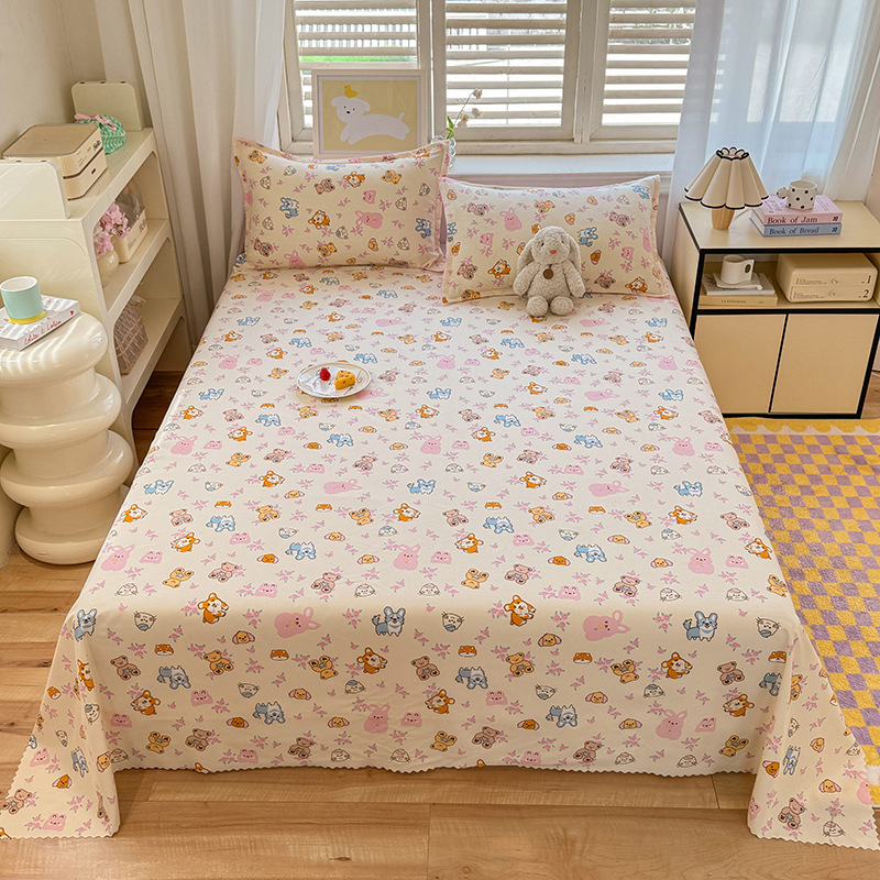 ins单件水洗棉印花单品床单磨毛学生宿舍芦荟棉单人双人被单批发