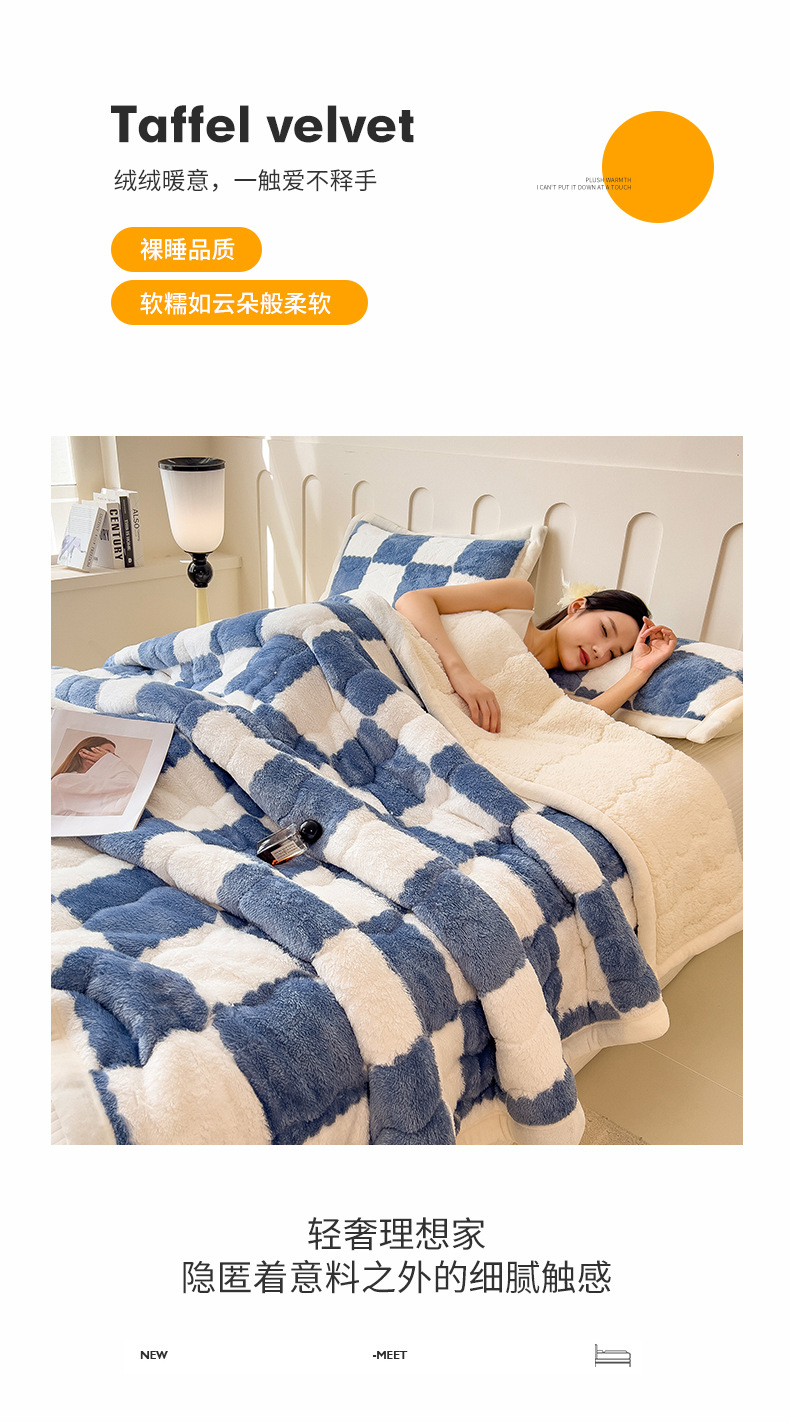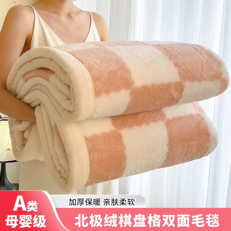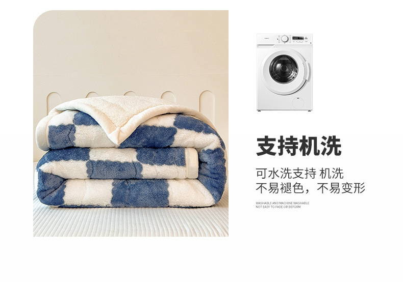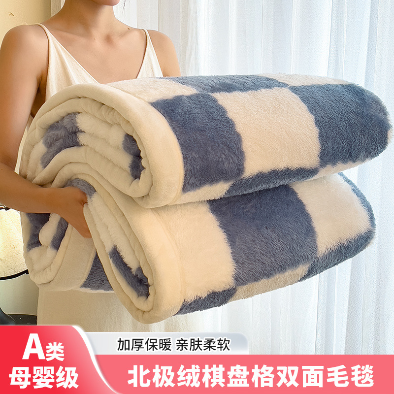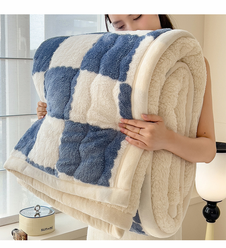 A类加厚棋盘格毛毯秋冬季三层夹棉毯子简约双面毛毯外贸毛毯批发