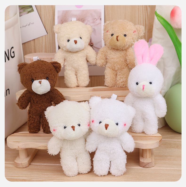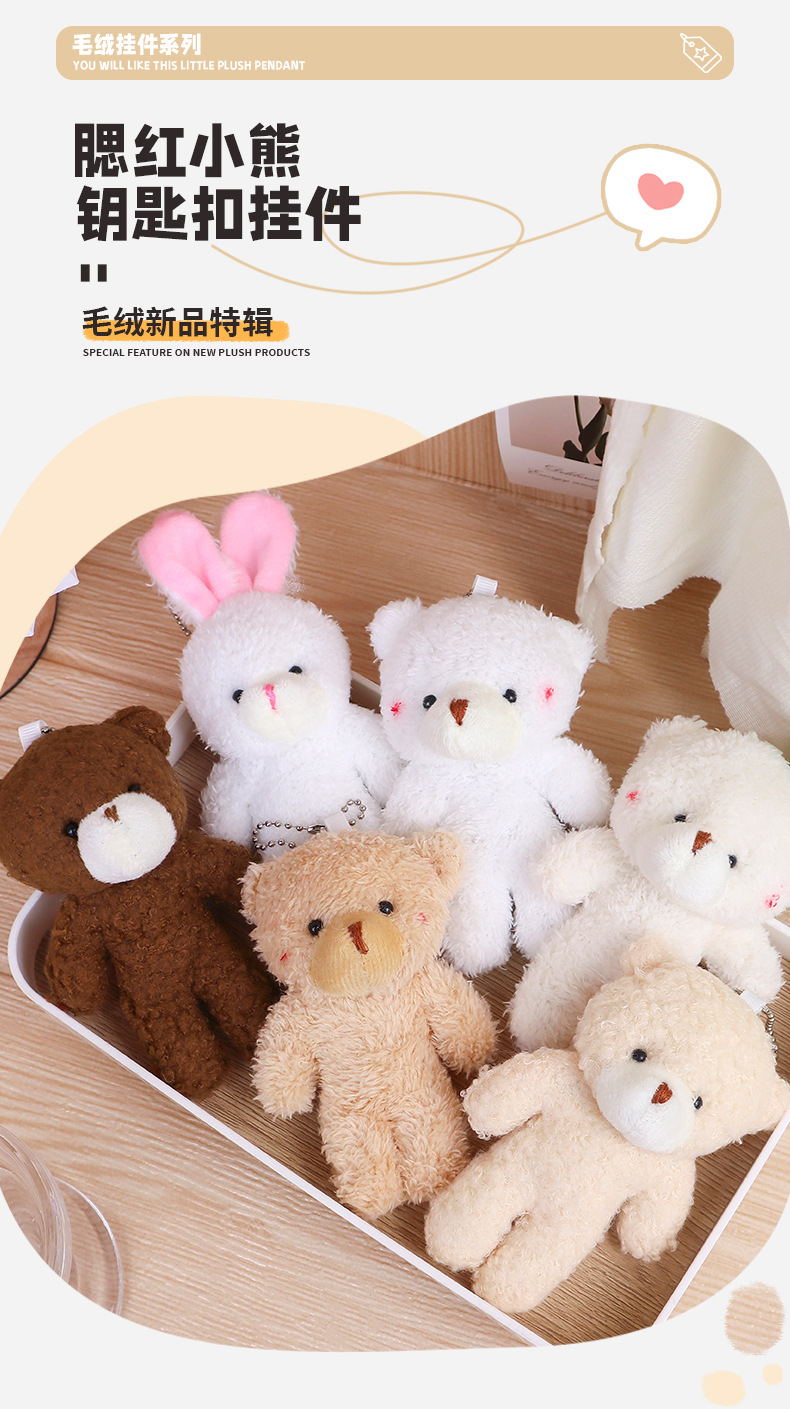可爱腮红连体泰迪熊钥匙扣包包挂饰兔子玩偶公仔毛绒小熊挂件批发