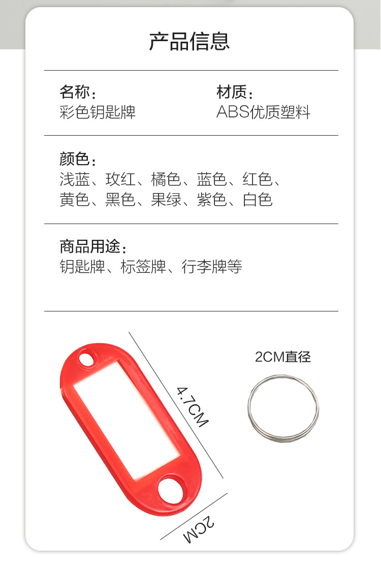 跨境塑料pp钥匙牌出租房宾馆酒店钥匙标记牌分类标签牌记号钥匙扣