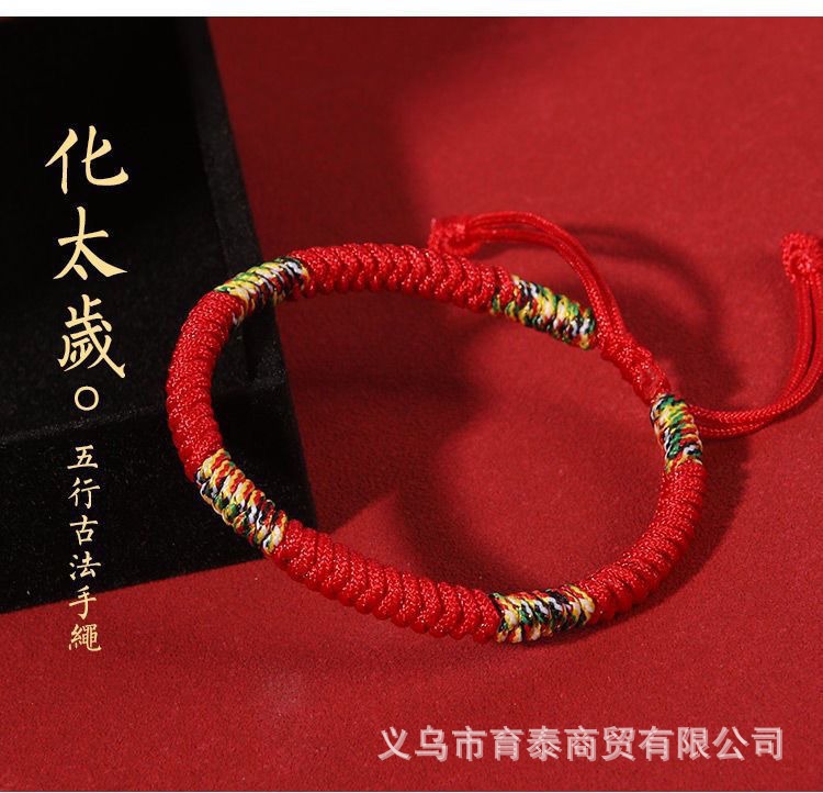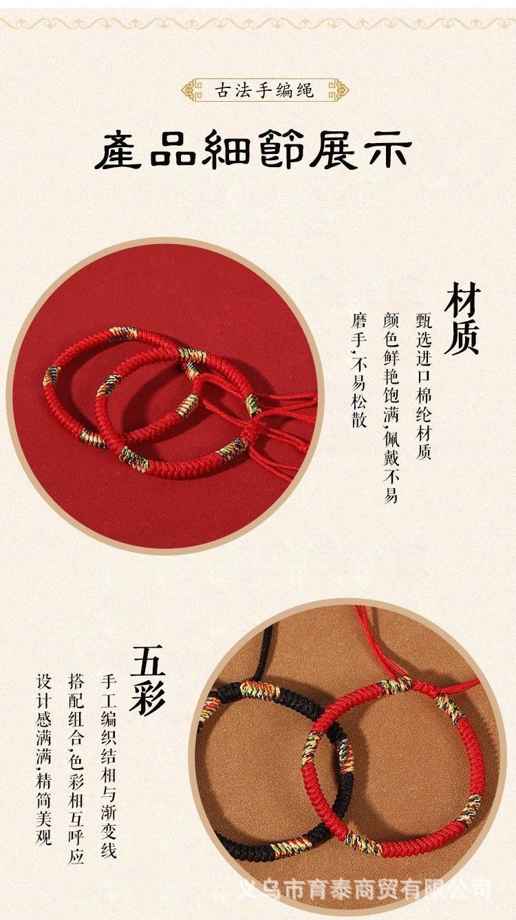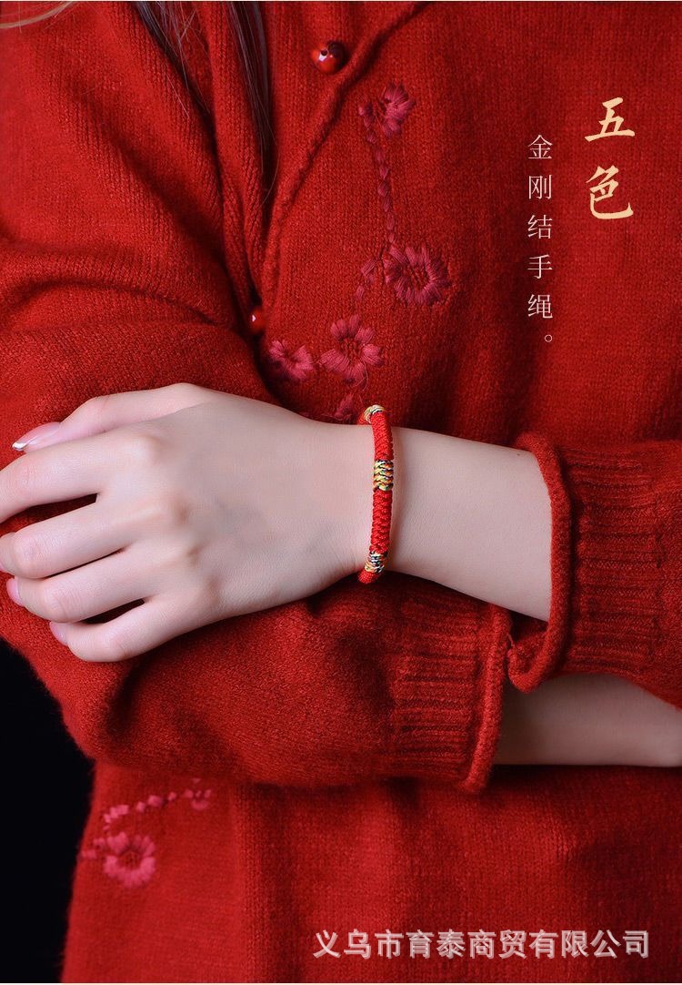 金刚结编织手绳本命年红绳手链女藏式五彩绳可调节国潮情侣红手绳