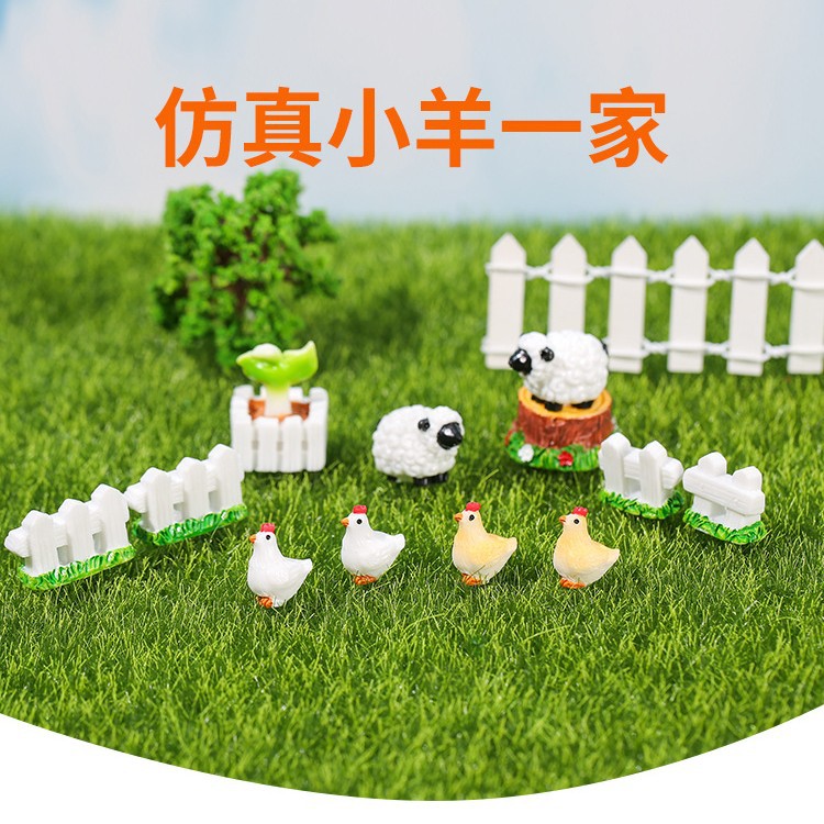 新款公鸡 母鸡苔藓微景观装饰摆件 围栏树墩 ZAKKA杂货树脂摆件造