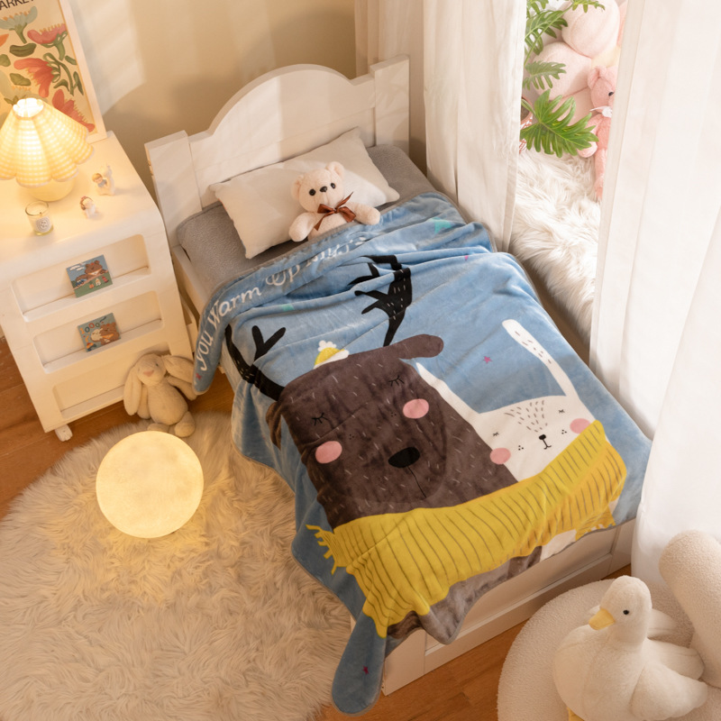 儿童毛毯幼儿园春秋宝宝珊瑚绒毯子春夏季单层薄款盖毯办公室午睡