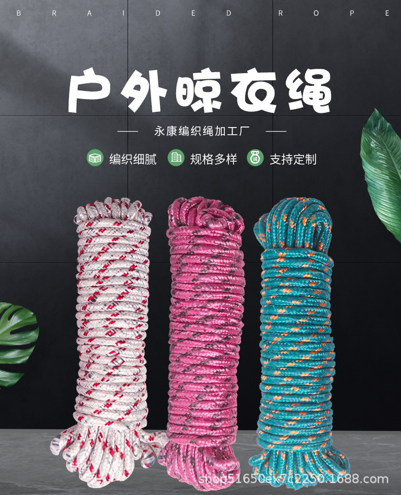 10米晾晒绳晾衣绳户外晒衣服绳子挂衣绳晒被子彩色编织绳加粗耐用