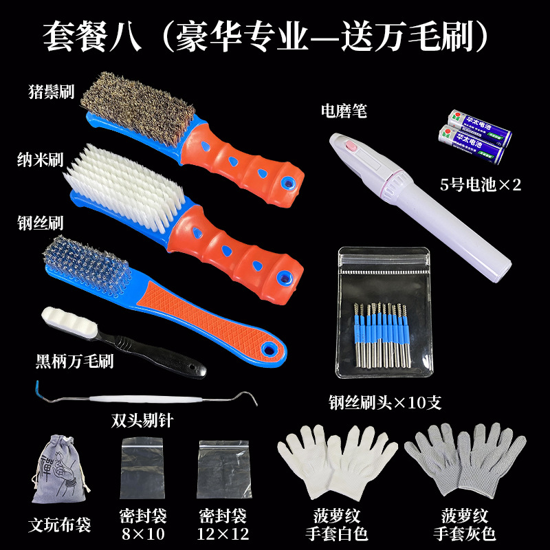 文玩毛刷核桃金刚菩提手串清理工具套装纳米猪鬃钢丝万毛刷子手套