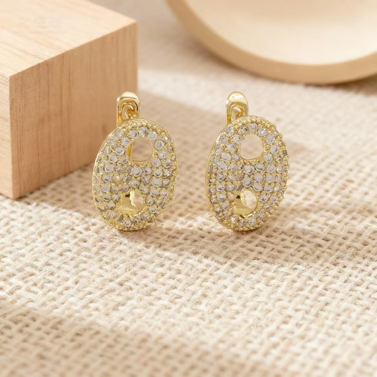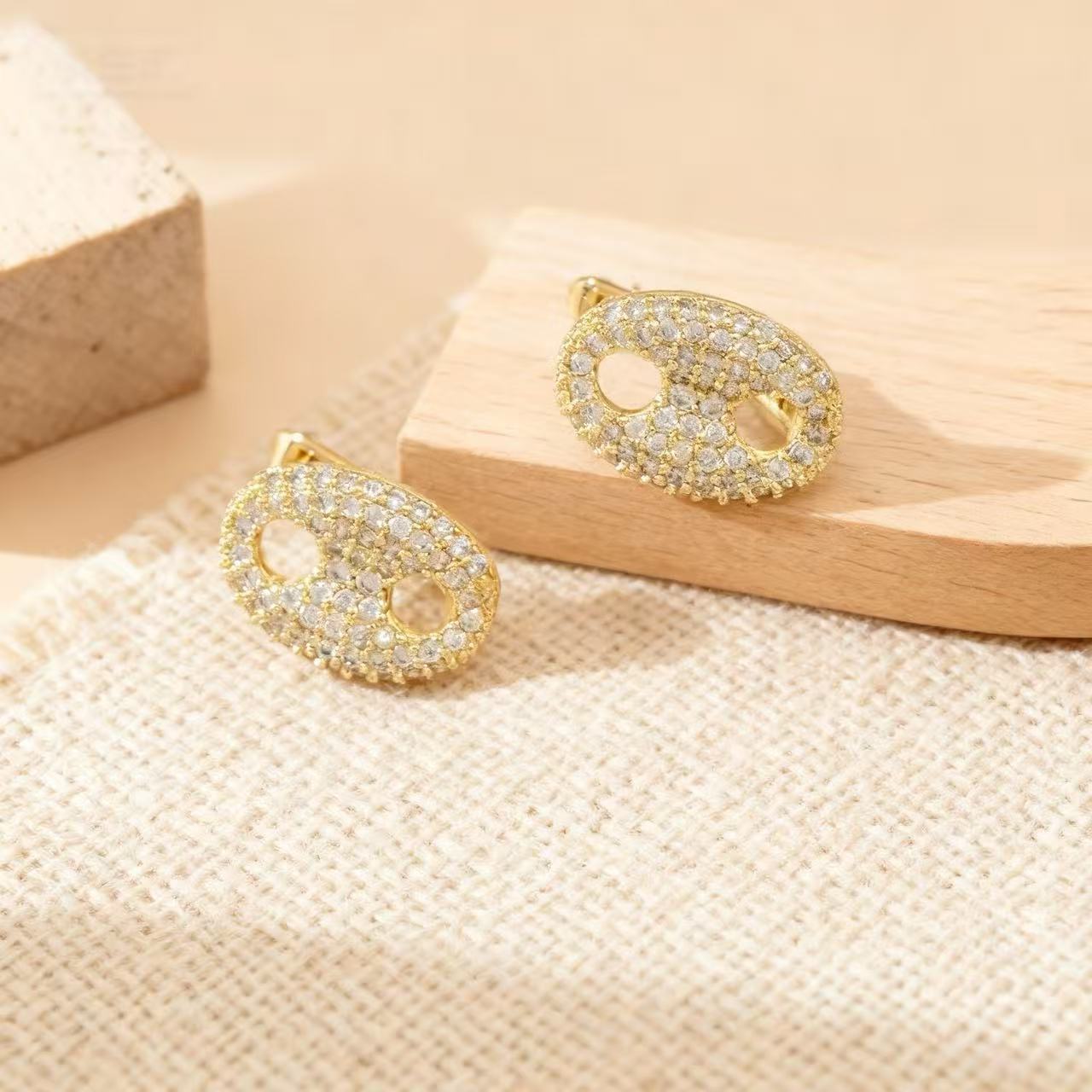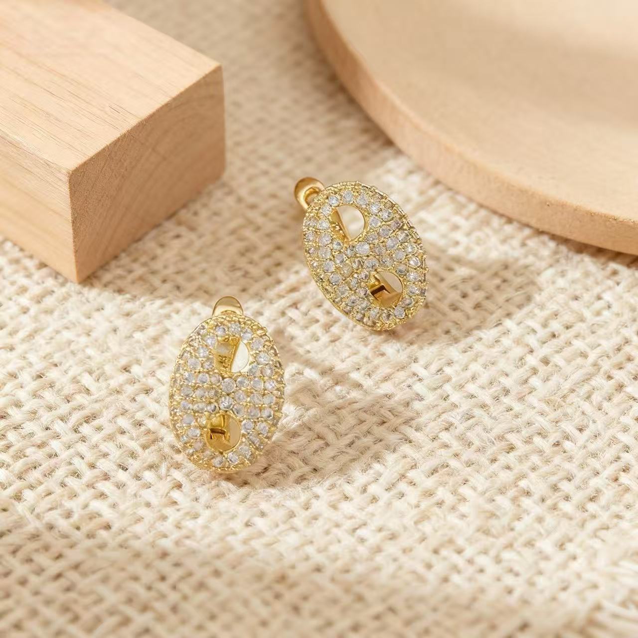 【真金电镀】跨境鼻子满钻耳钉女小众设计高级感耳环秋冬百搭耳饰
