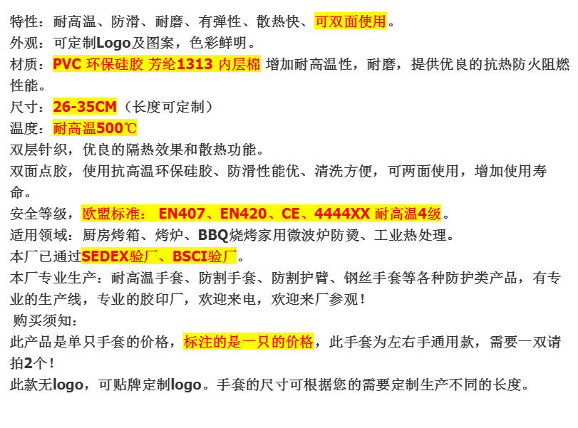 批发双层隔热手套 BBQ耐高温烤箱手套 烧烤硅胶专用阻燃防护手套