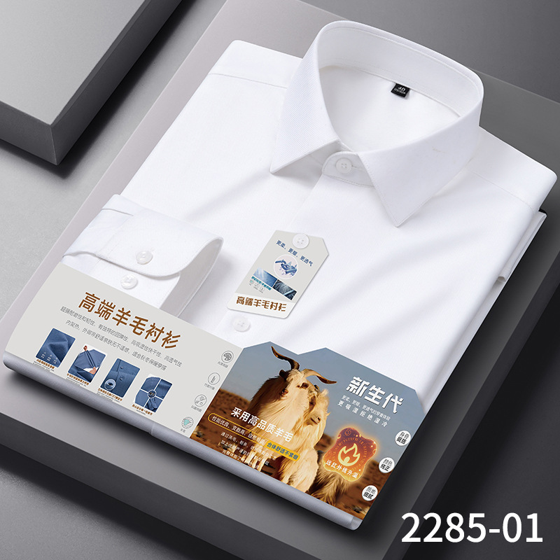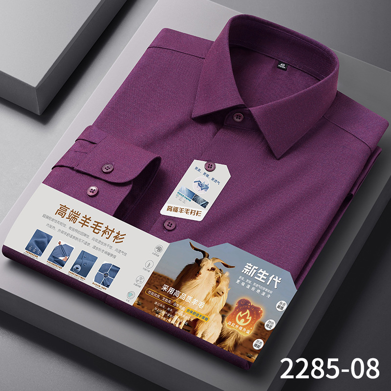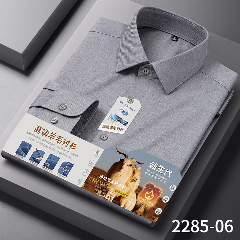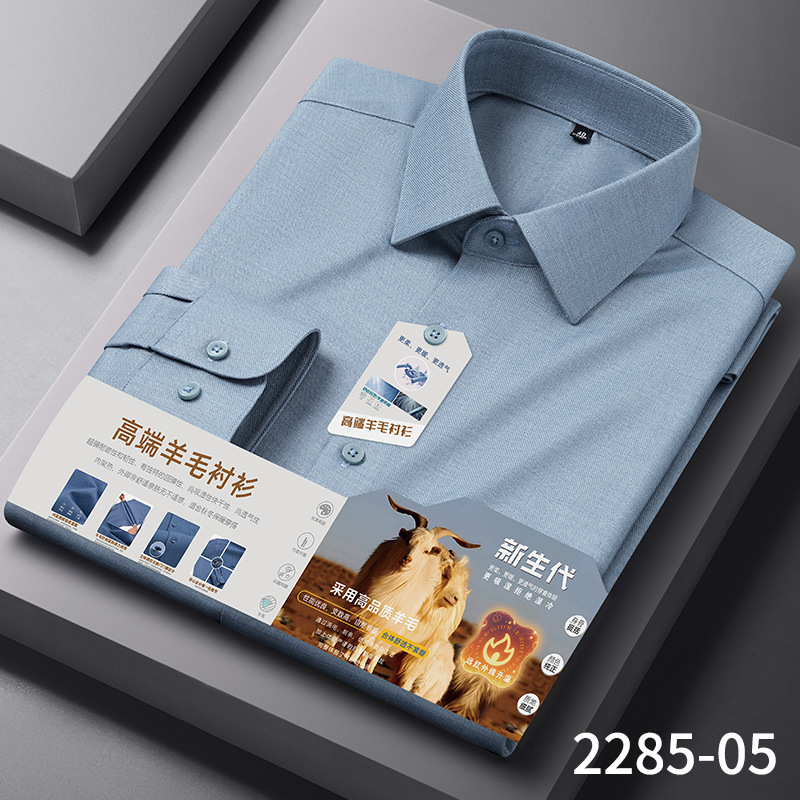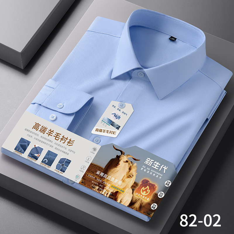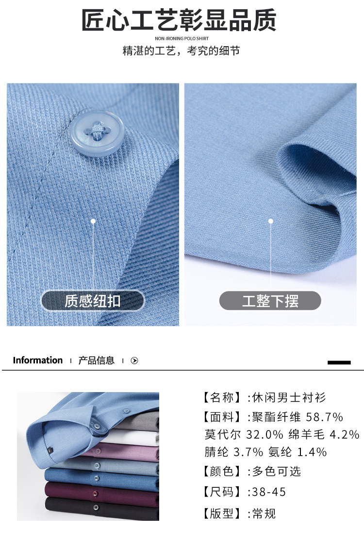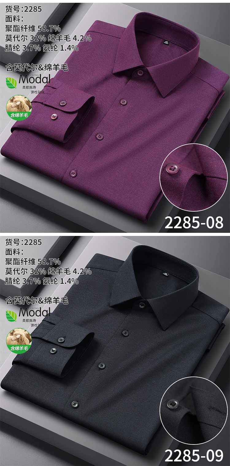 【莫代尔+绵羊毛】男士免烫长袖衬衫秋冬款莫代尔加厚商务衬衣