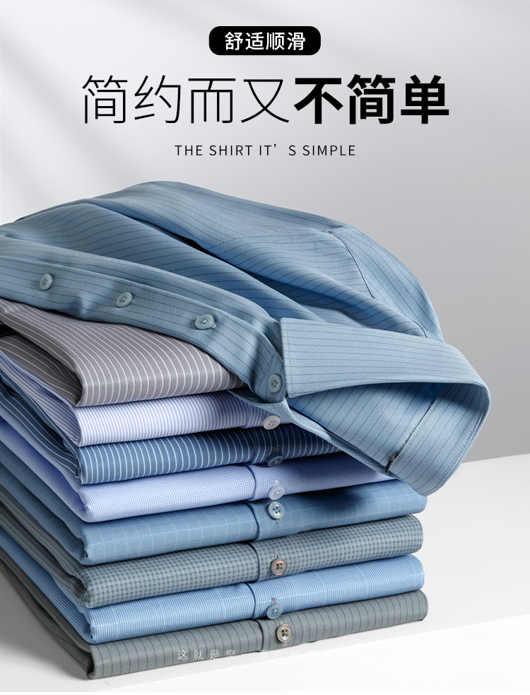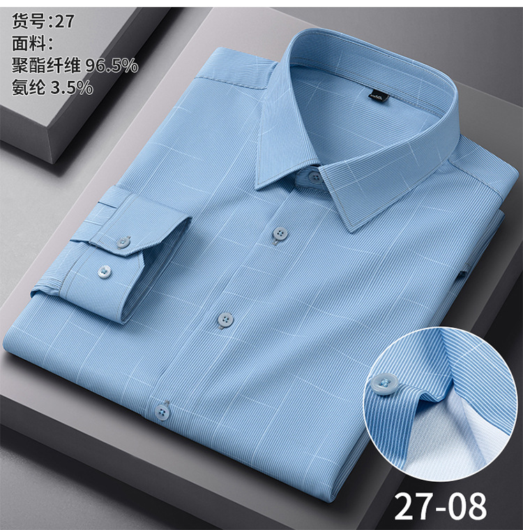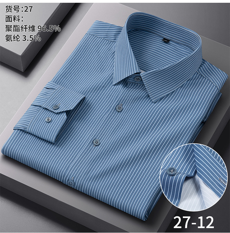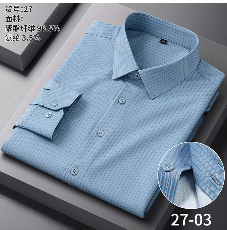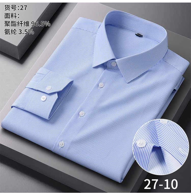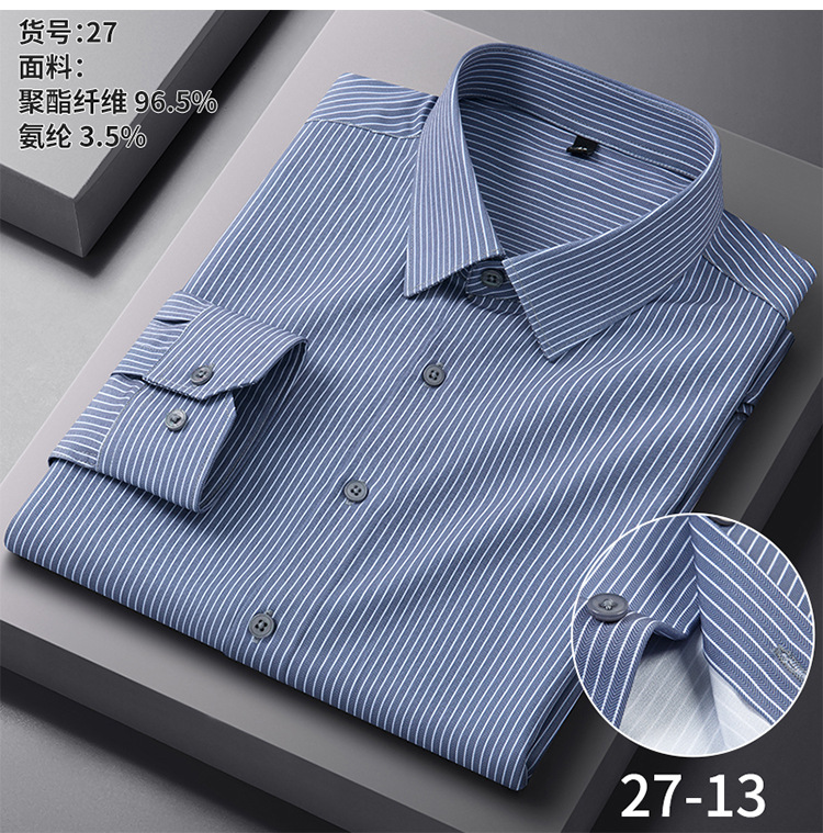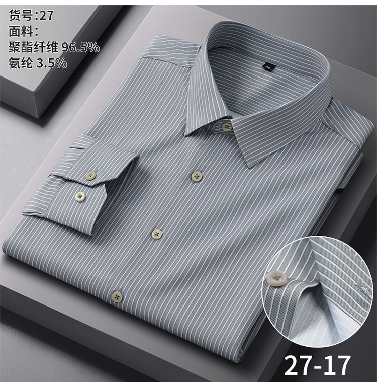 男士云感无痕免熨烫衬衫商务休闲条纹男衬衣秋季新款男装寸衫批发