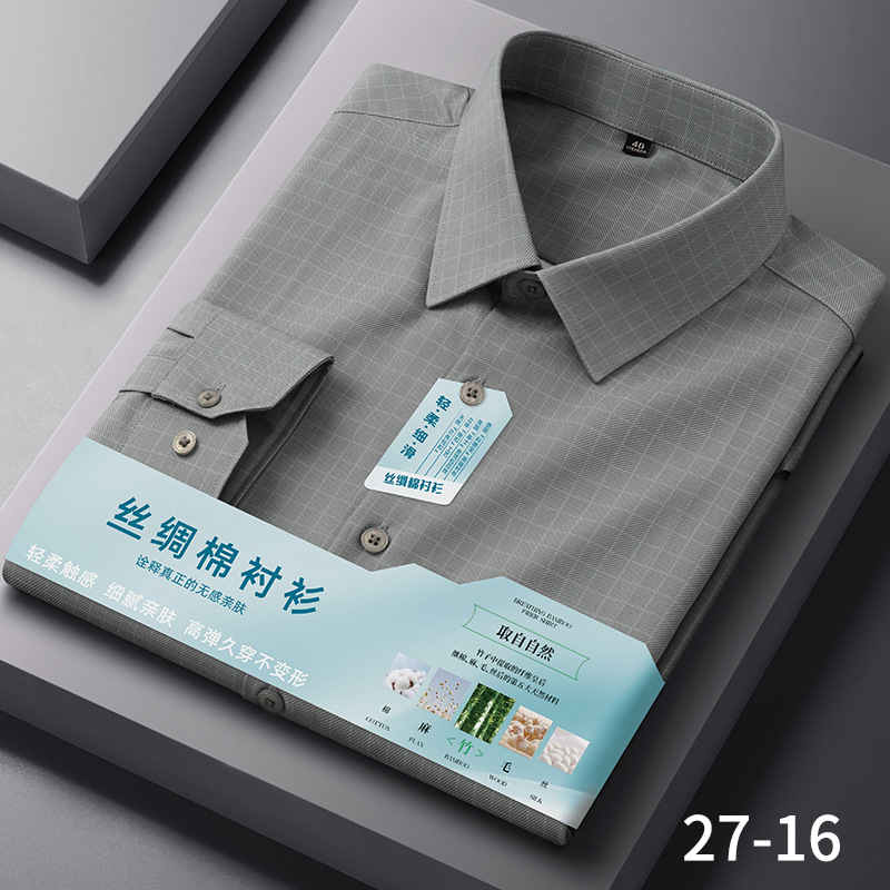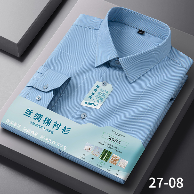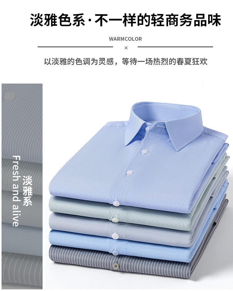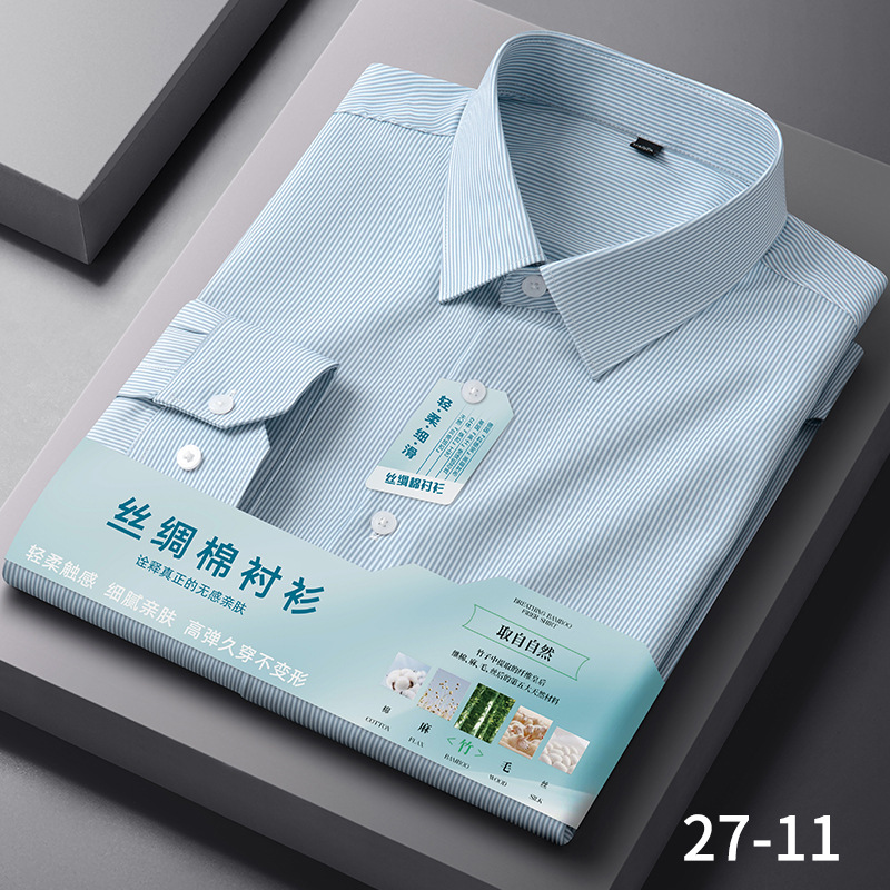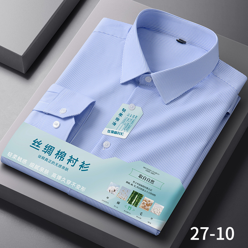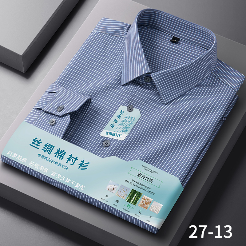 男士云感无痕免熨烫衬衫商务休闲条纹男衬衣秋季新款男装寸衫批发