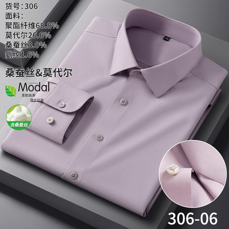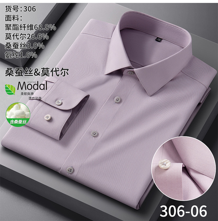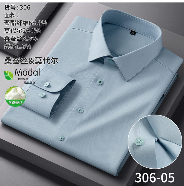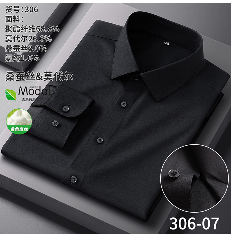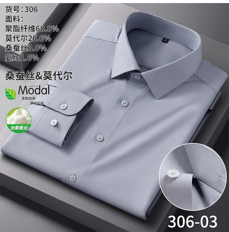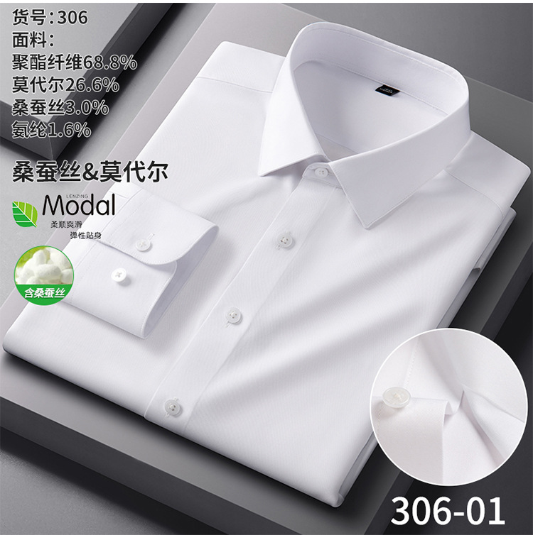 【莫代尔+桑蚕丝】新款长袖衬衫男士商务休闲男装秋季内搭白衬衫
