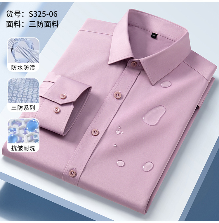 2025新款三防弹力休闲男士衬衫易打理白色商务透气高端纯色衬衣