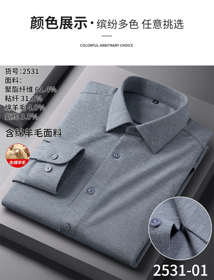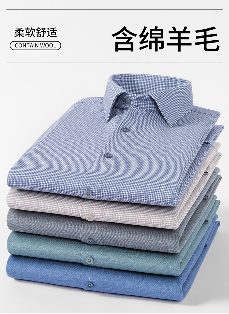 【绵羊毛+免烫】秋冬新款衬衫男长袖轻奢无痕免烫抗皱商务男衬衣