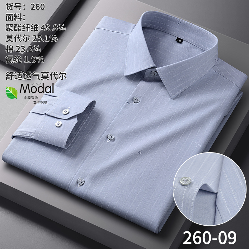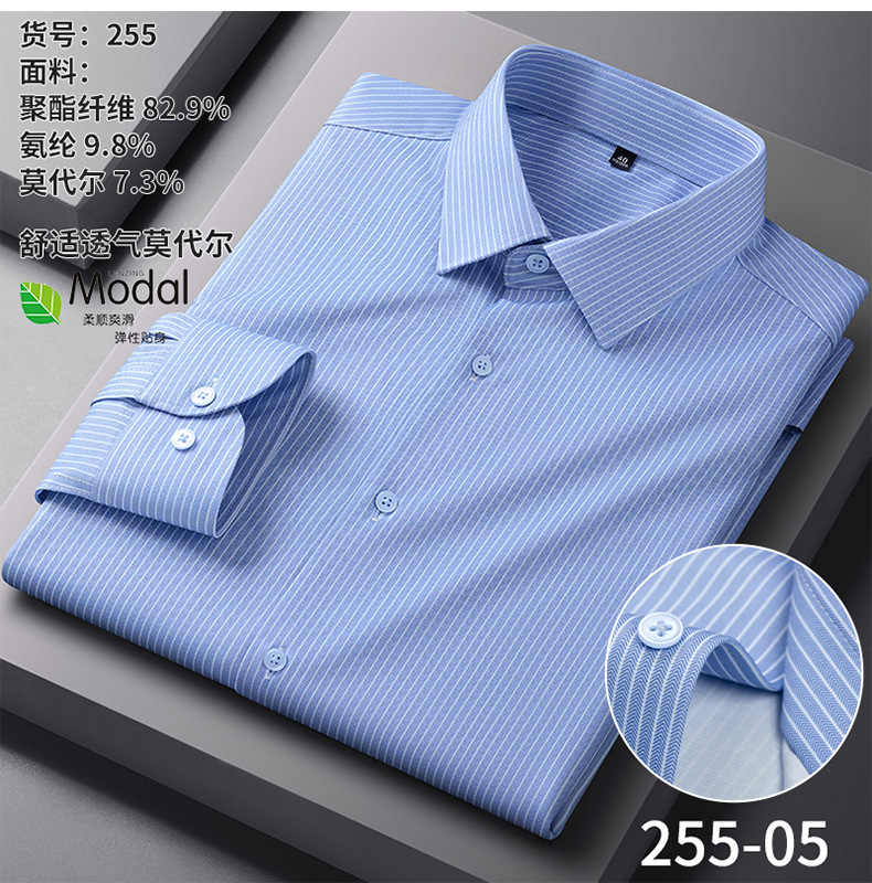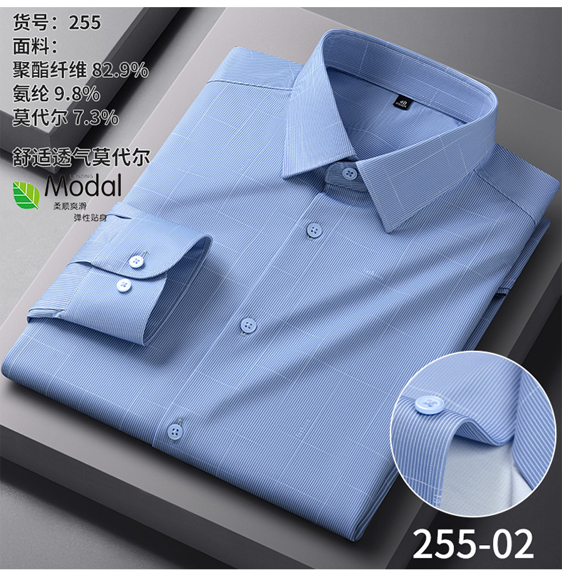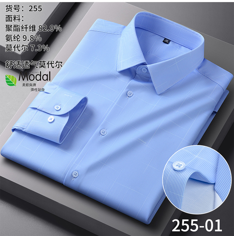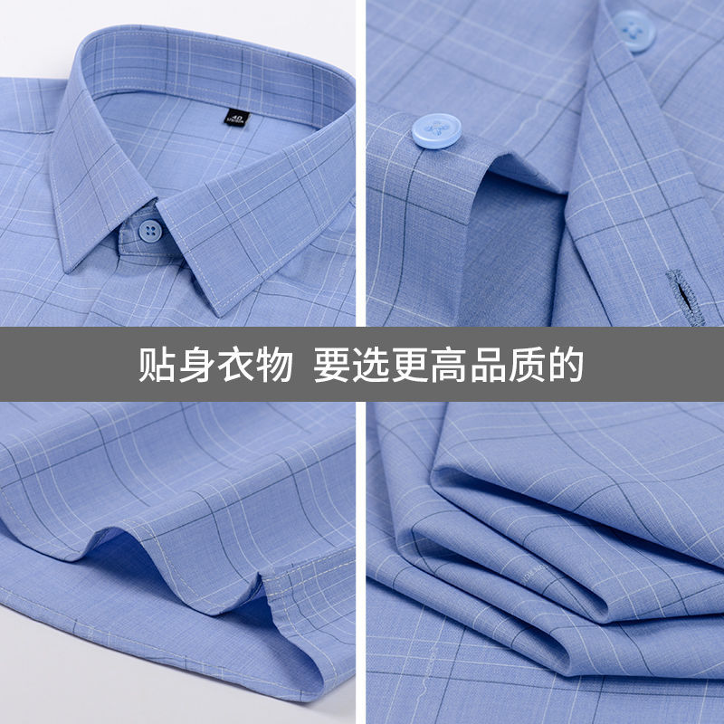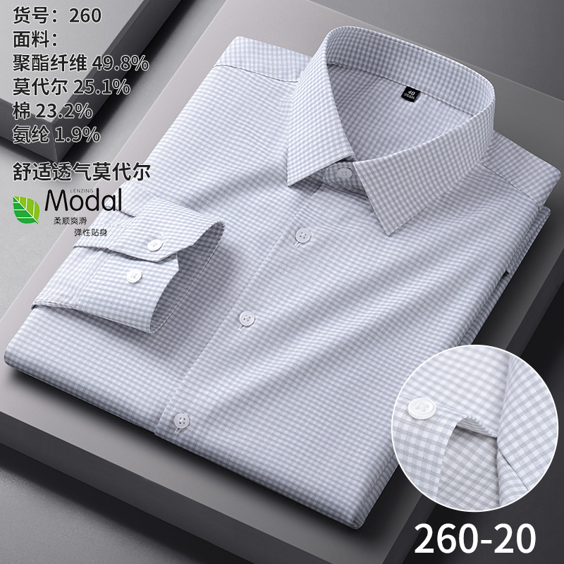 【莫代尔+棉】春秋新款高档商务休闲格纹男衬衫免烫透气职业装