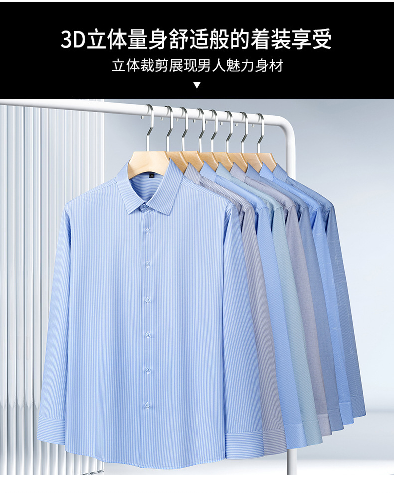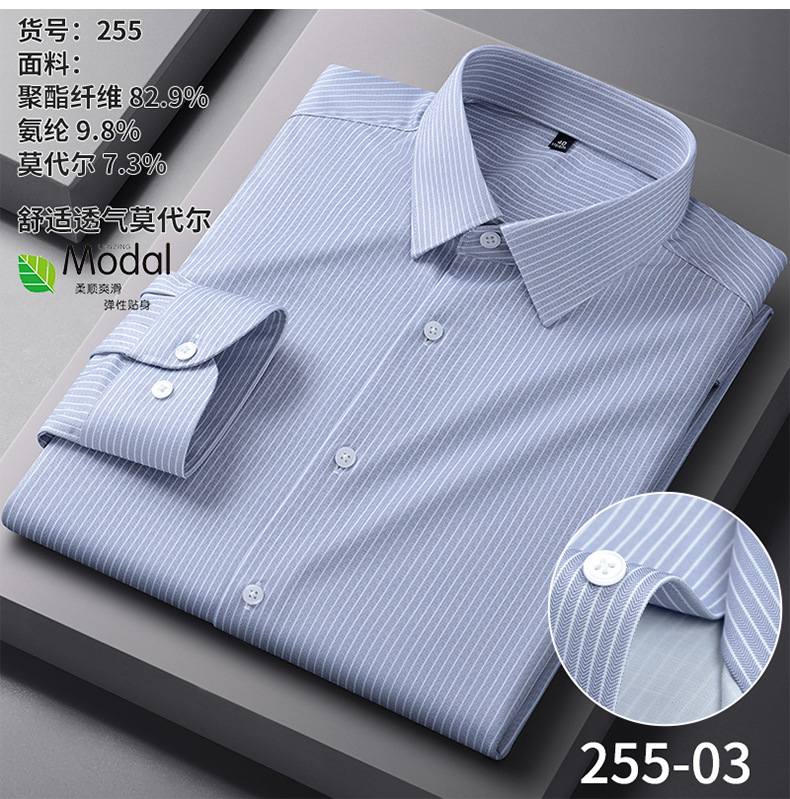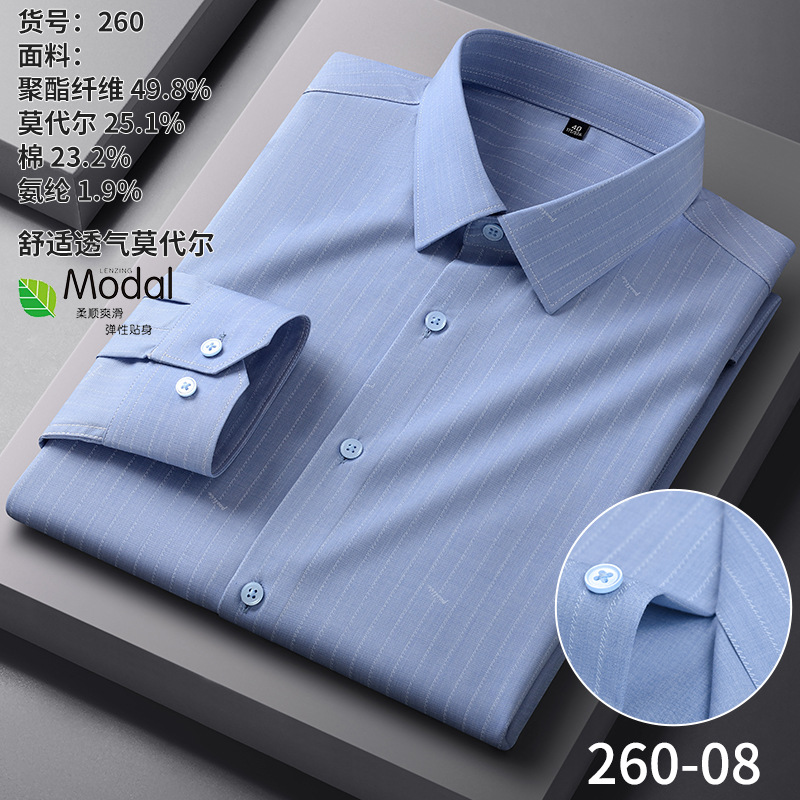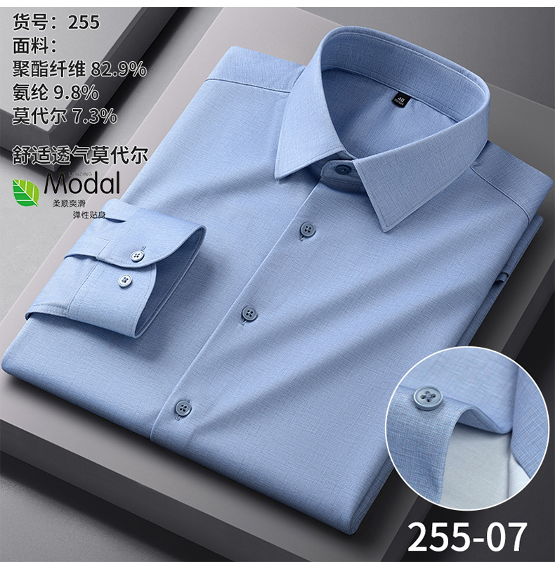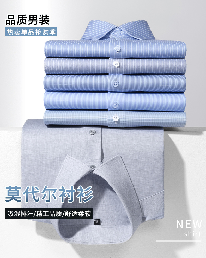 【莫代尔+棉】春秋新款高档商务休闲格纹男衬衫免烫透气职业装