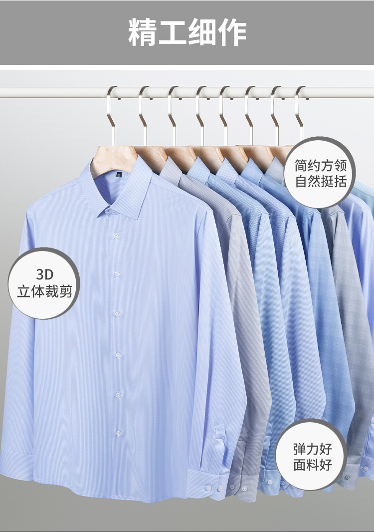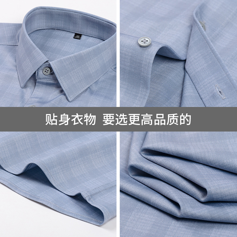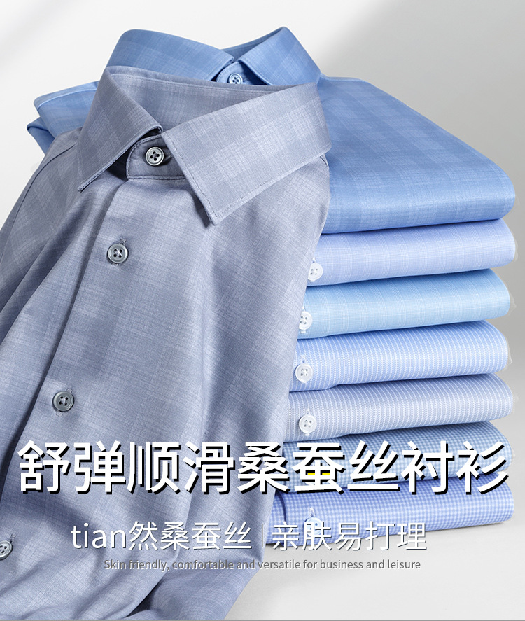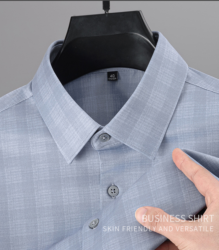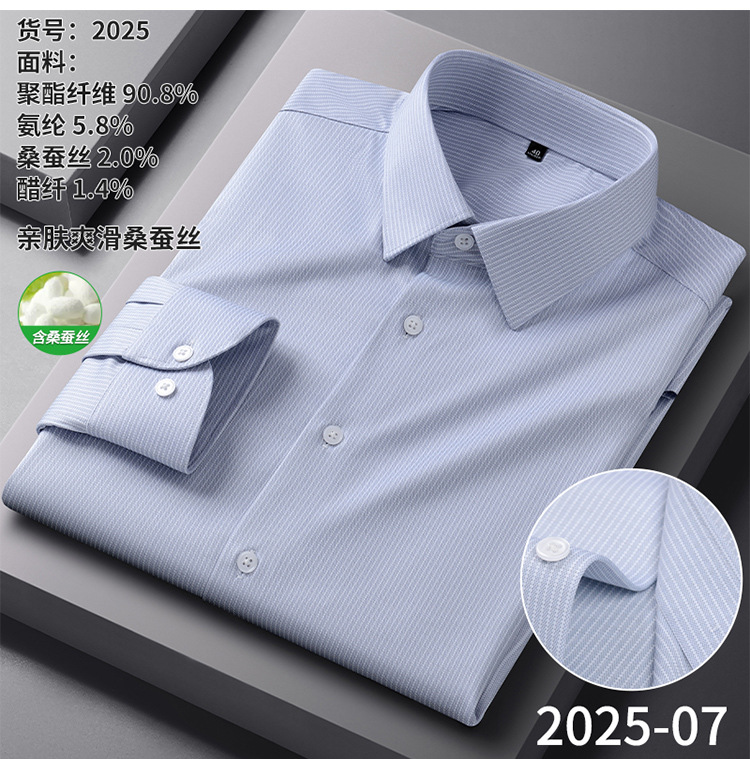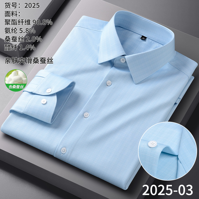 2025年高奢级格纹桑蚕丝男士长袖衬衫商务休闲免烫百搭开衫带弹力