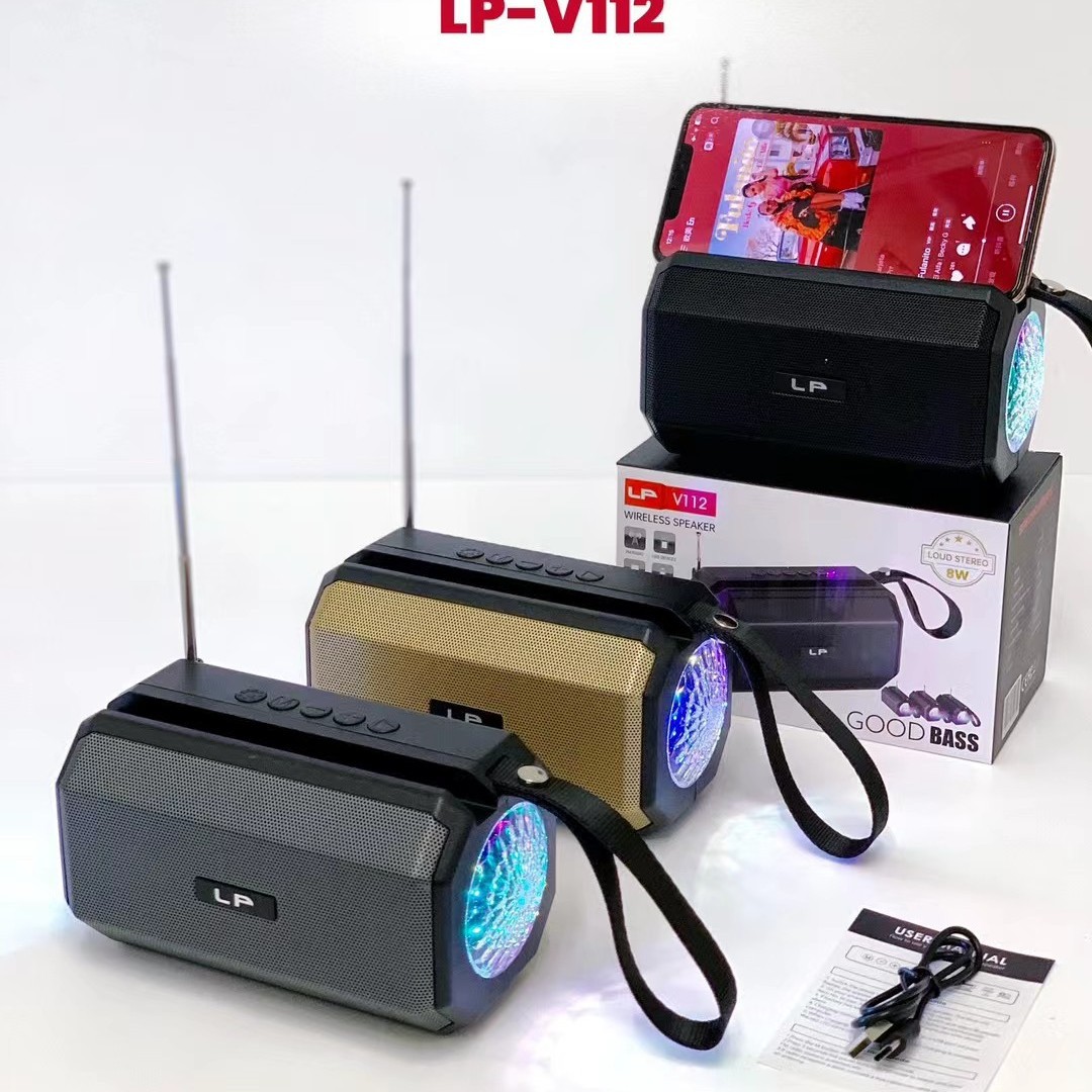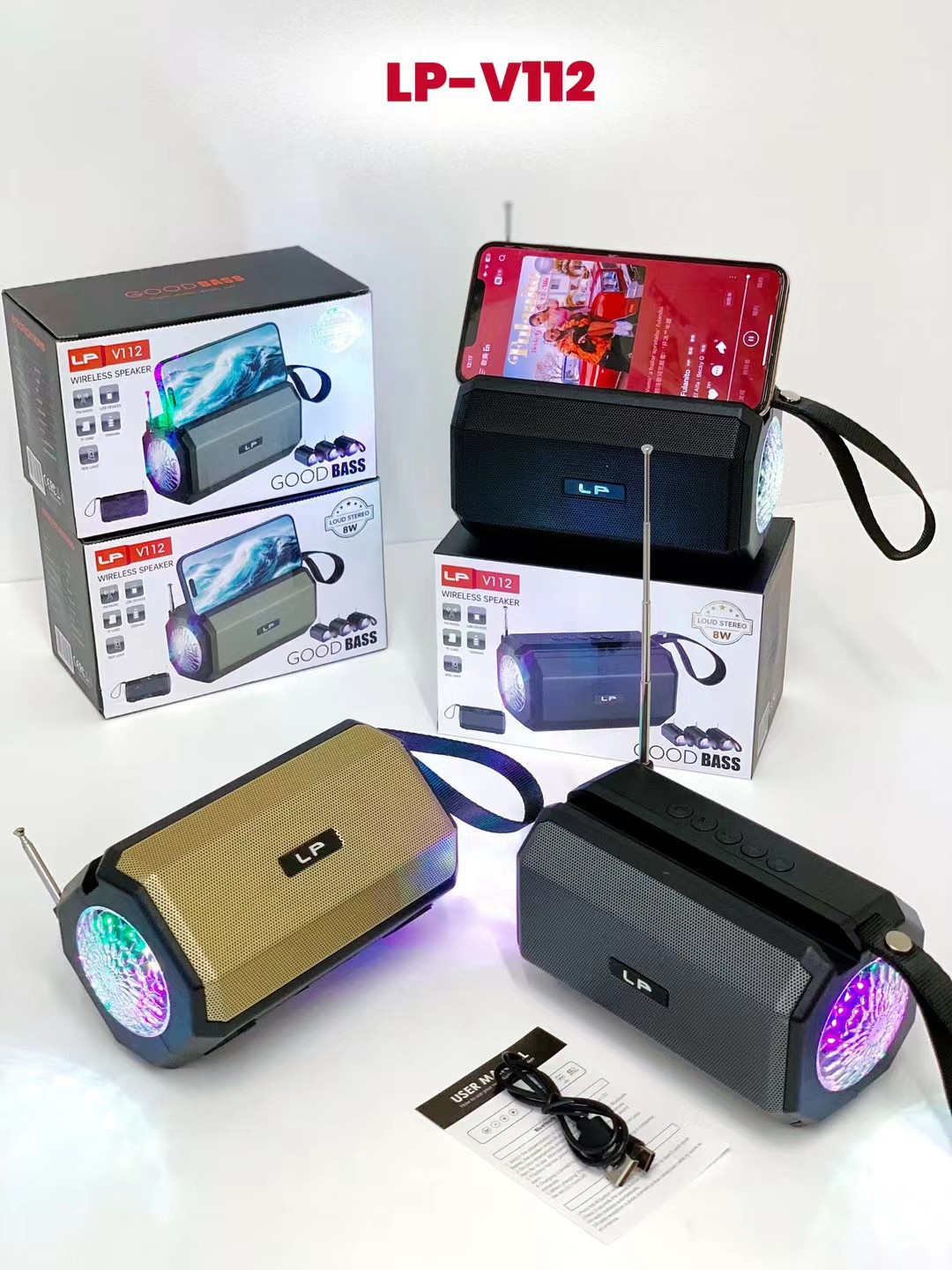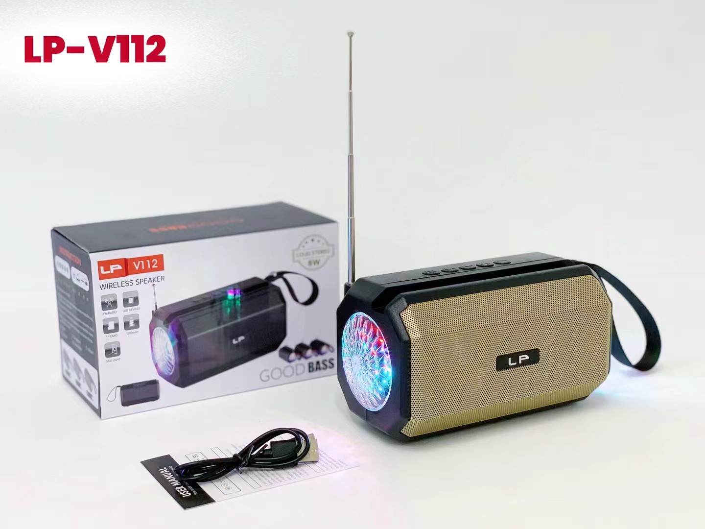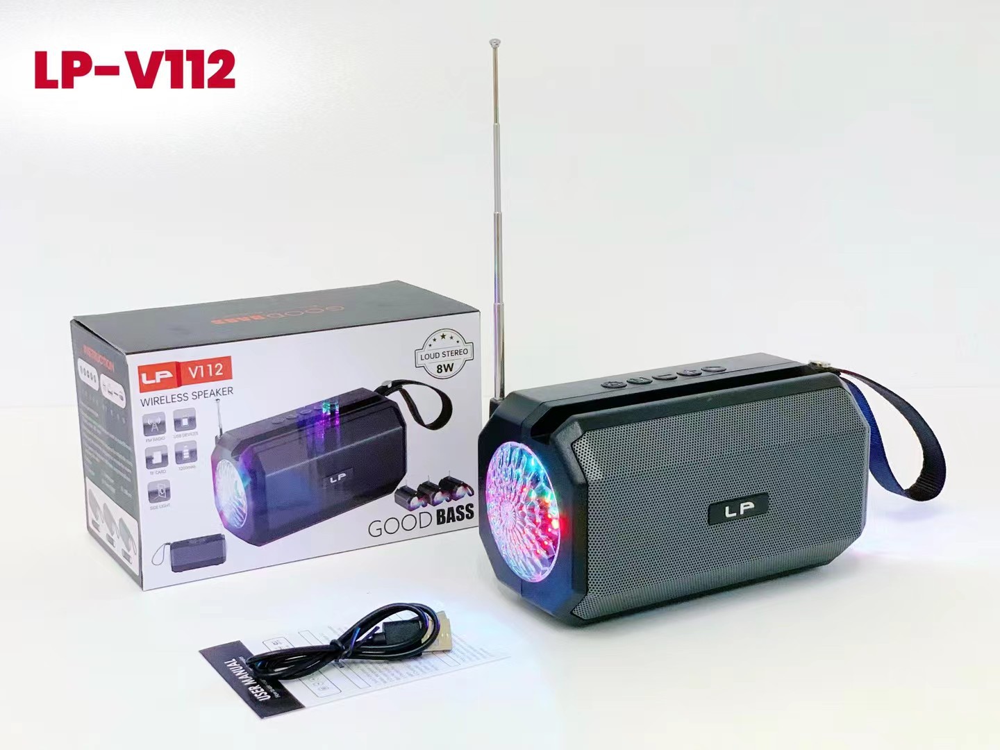 LP-V112跨境手提无线蓝牙音响RGB舞台灯天线收音机户外低音炮音箱