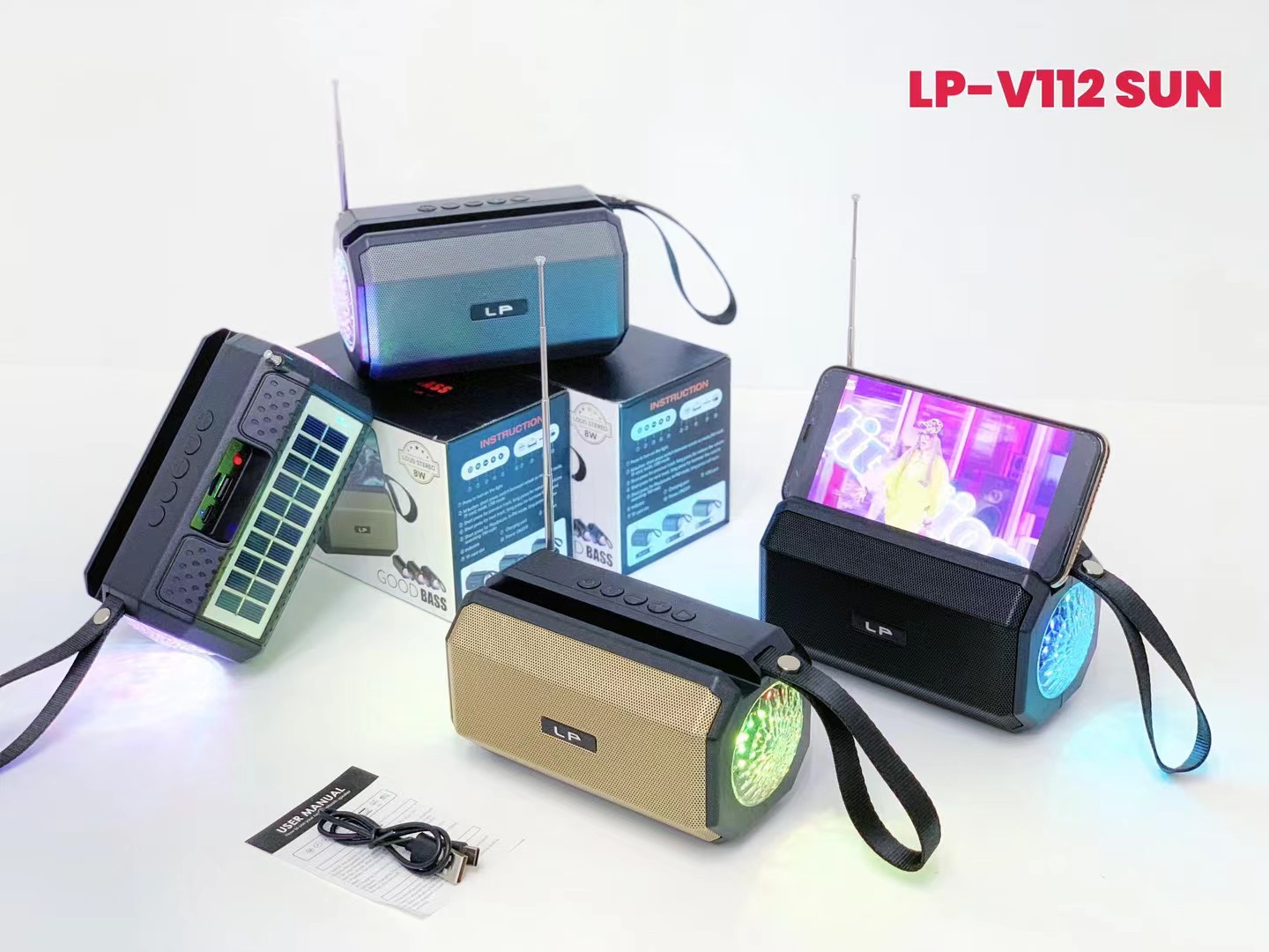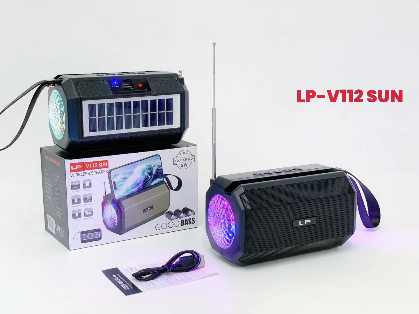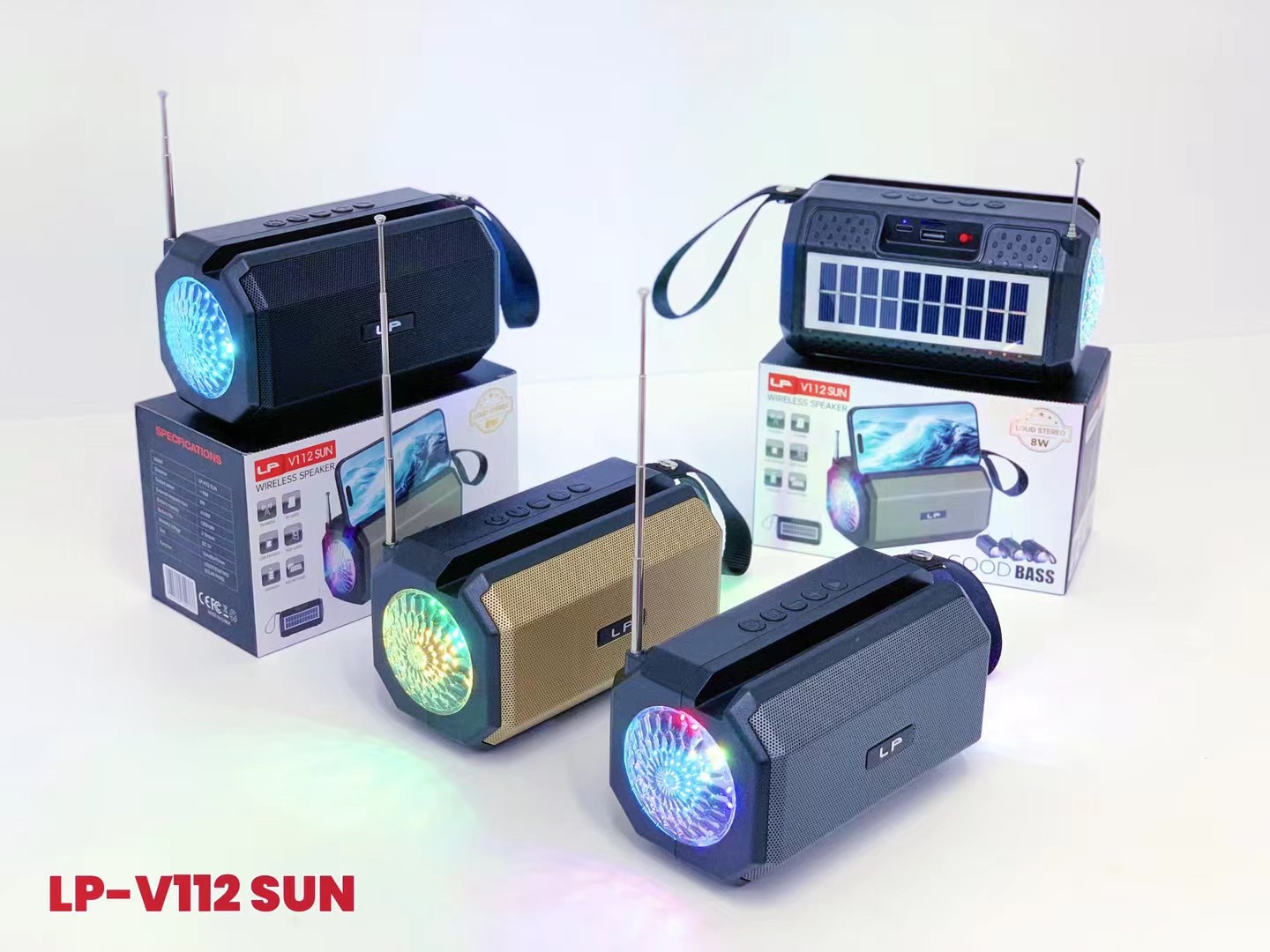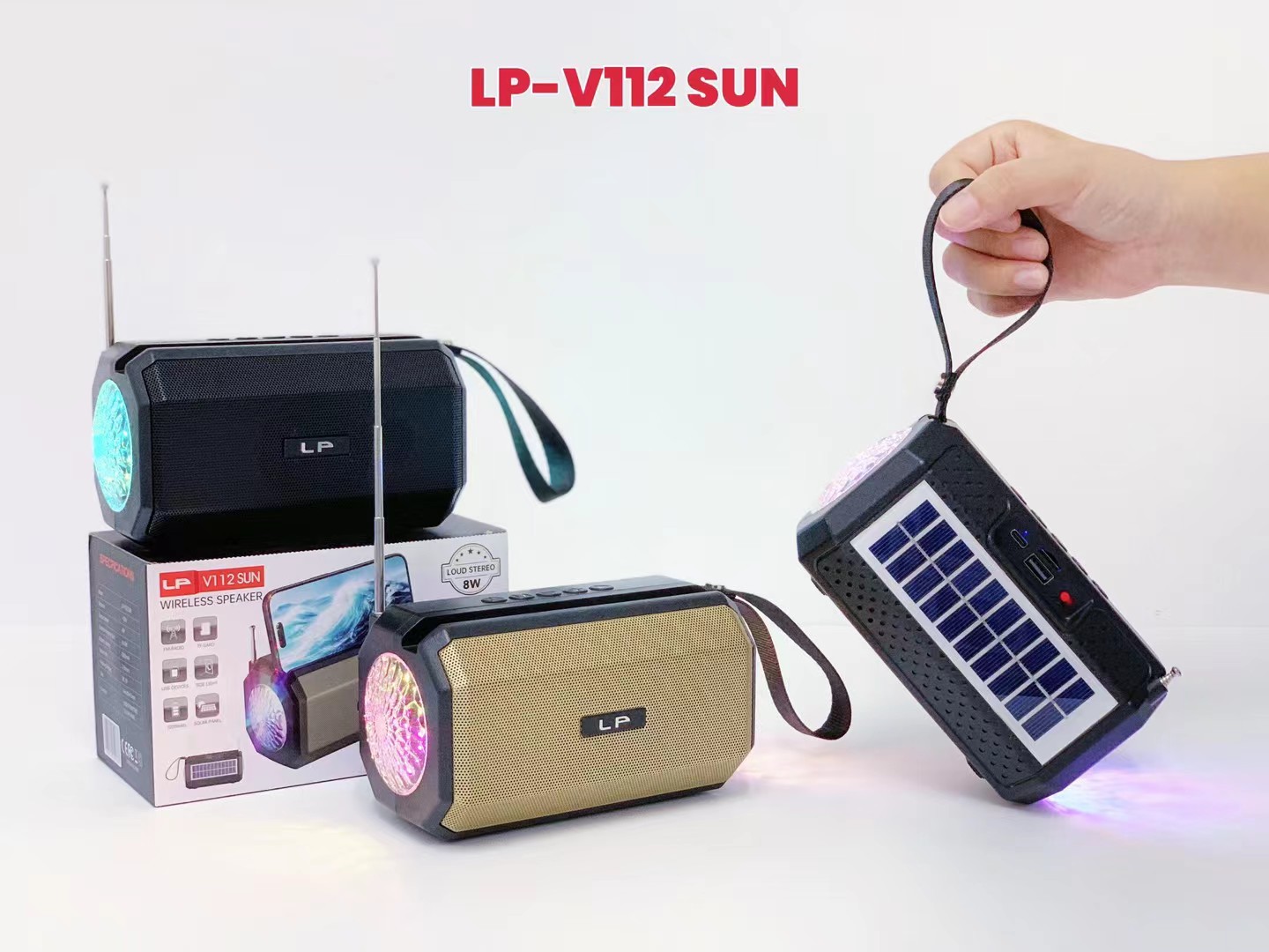 LP-V112SUN 跨境太阳能手提无线蓝牙音响RGB收音机户外低音炮音箱