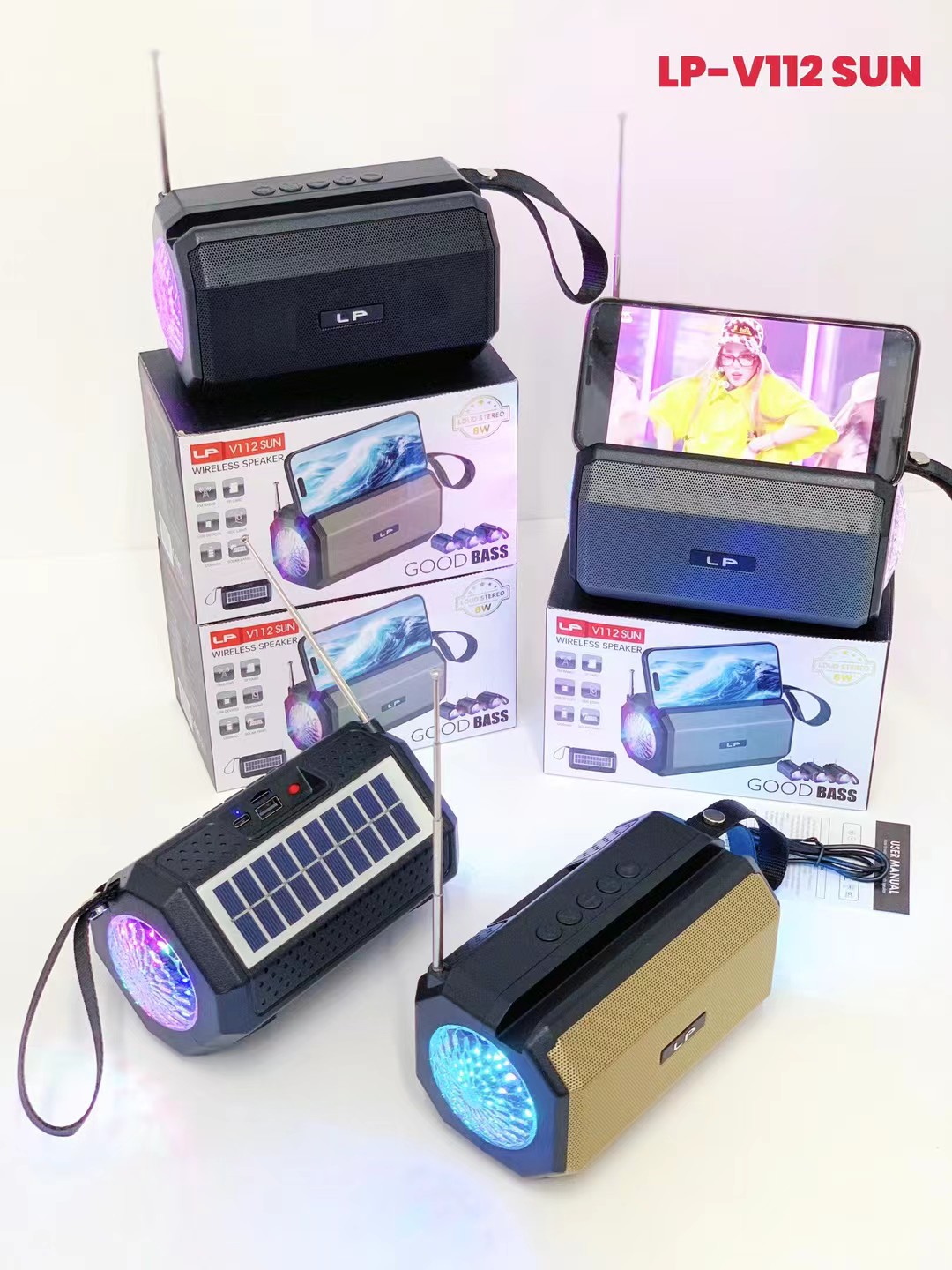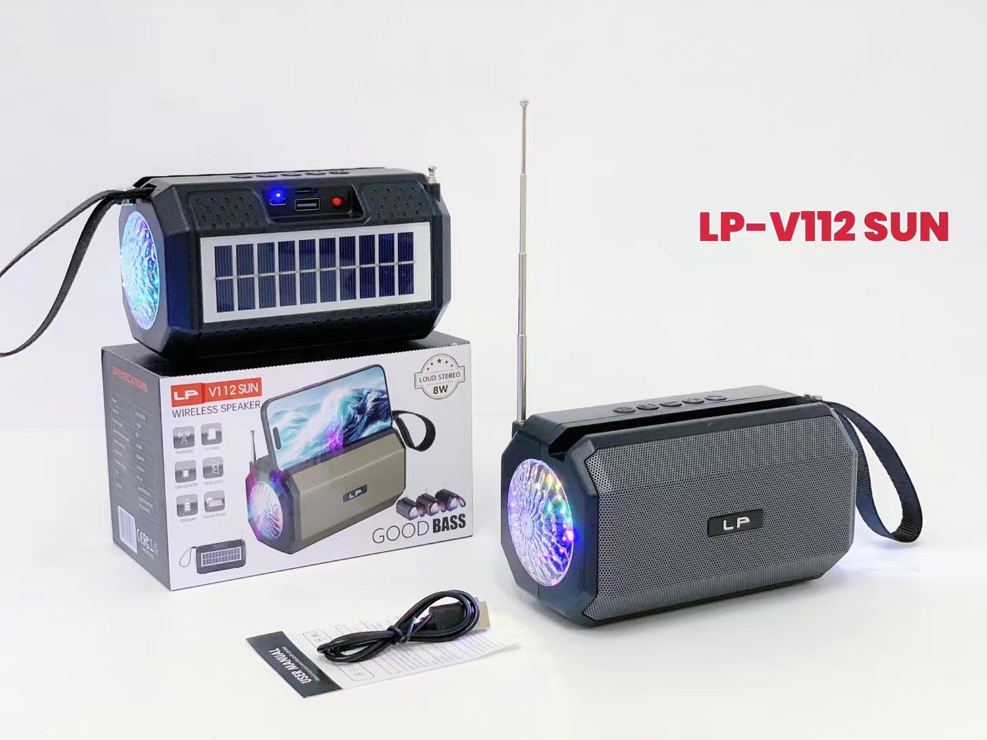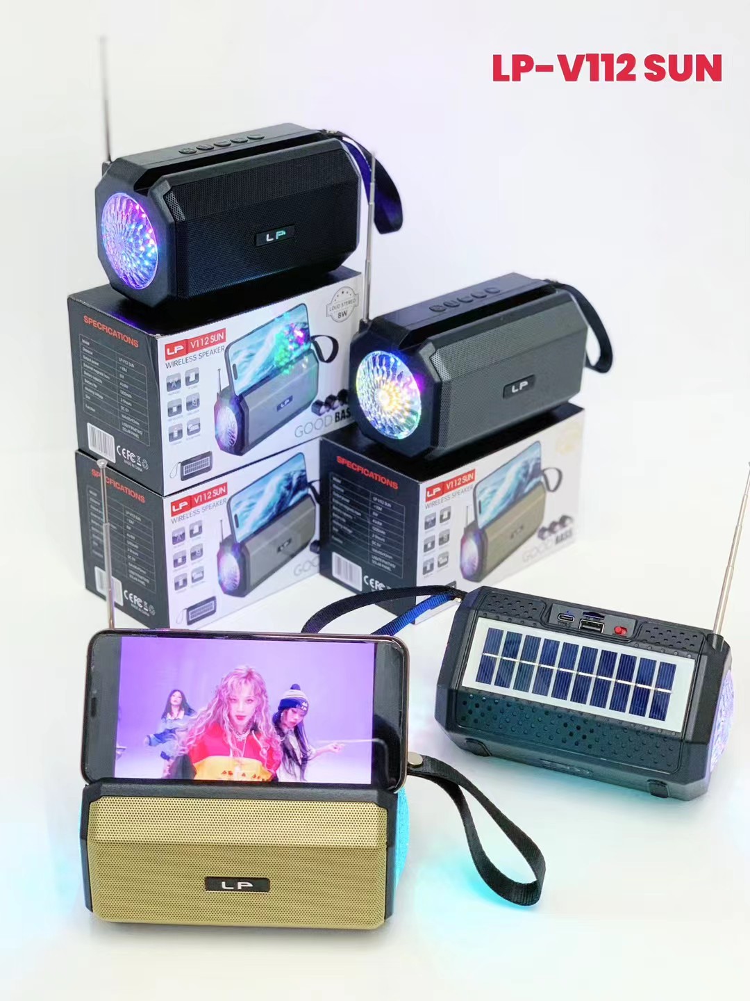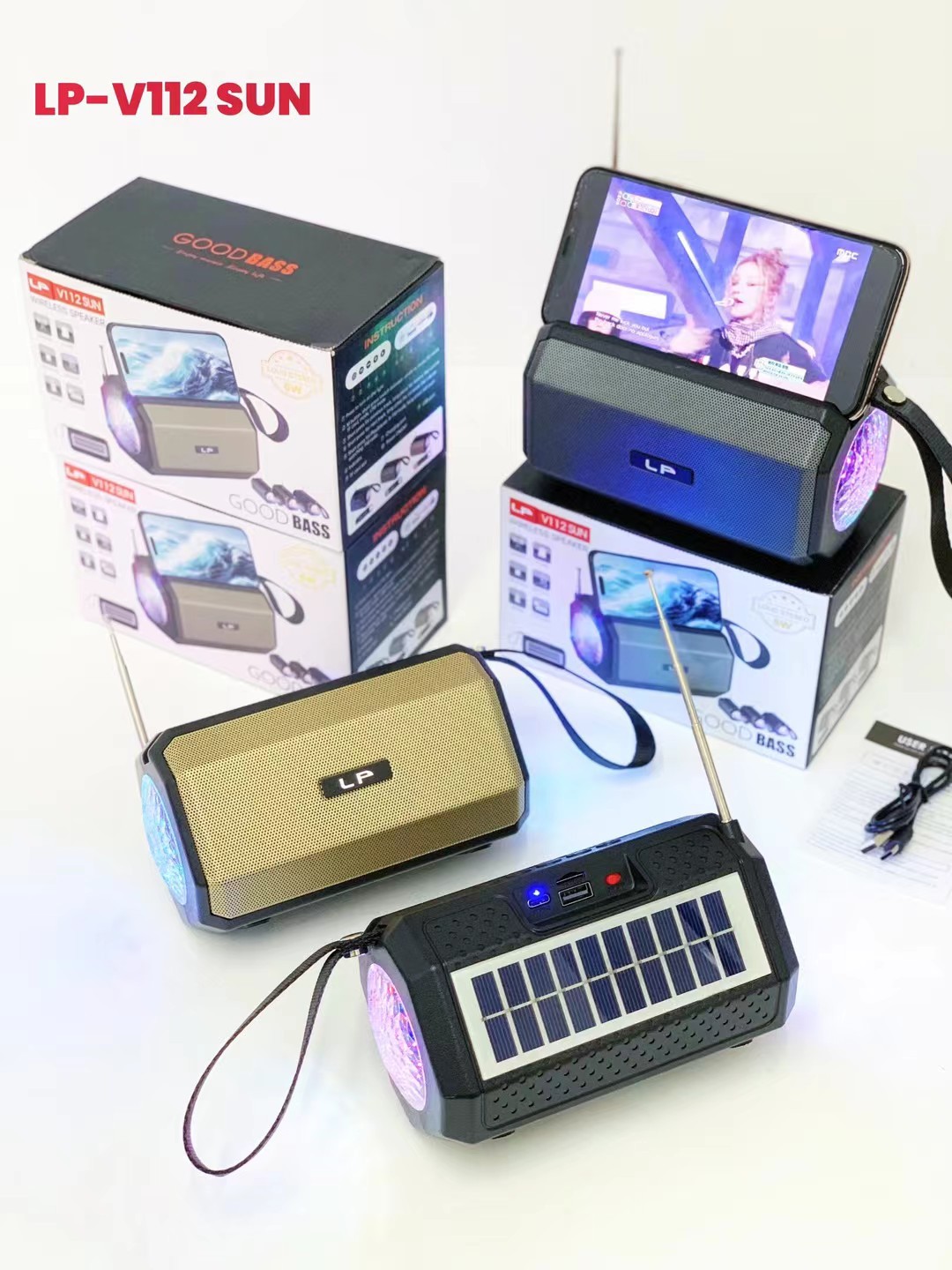 LP-V112SUN 跨境太阳能手提无线蓝牙音响RGB收音机户外低音炮音箱