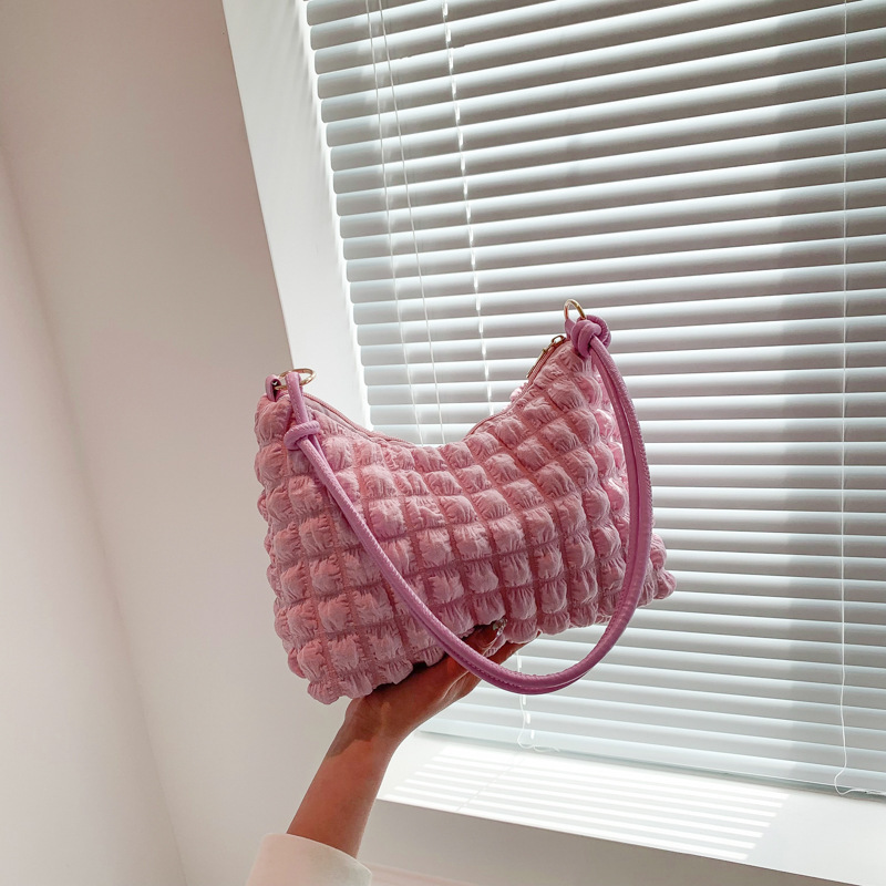 女士简约气质温柔褶皱腋下包包女2024春夏季新款单肩斜挎包小方包