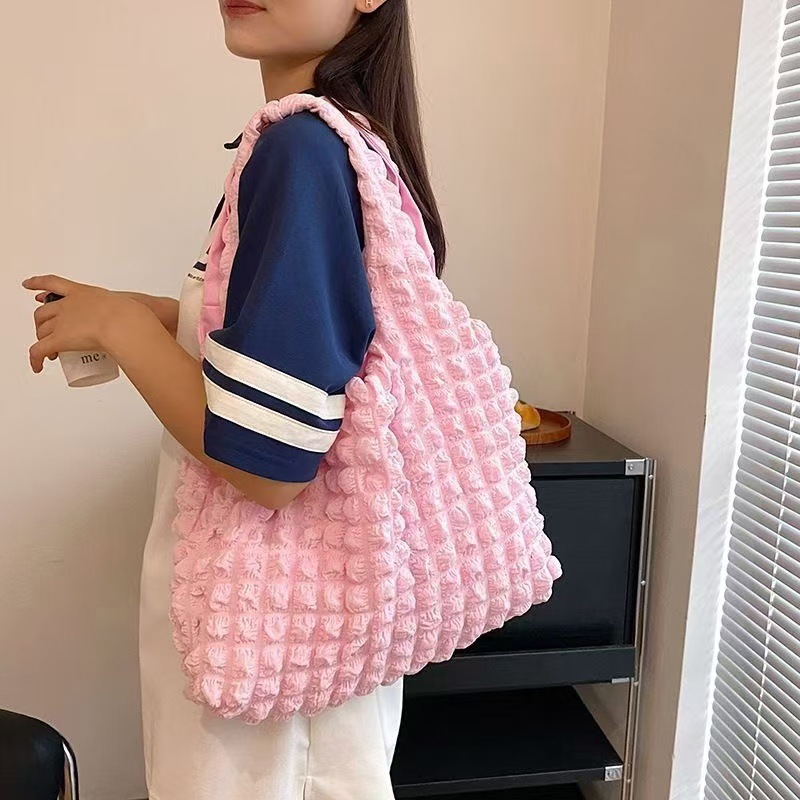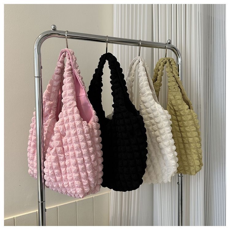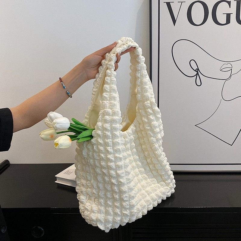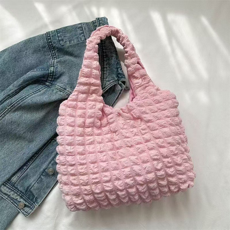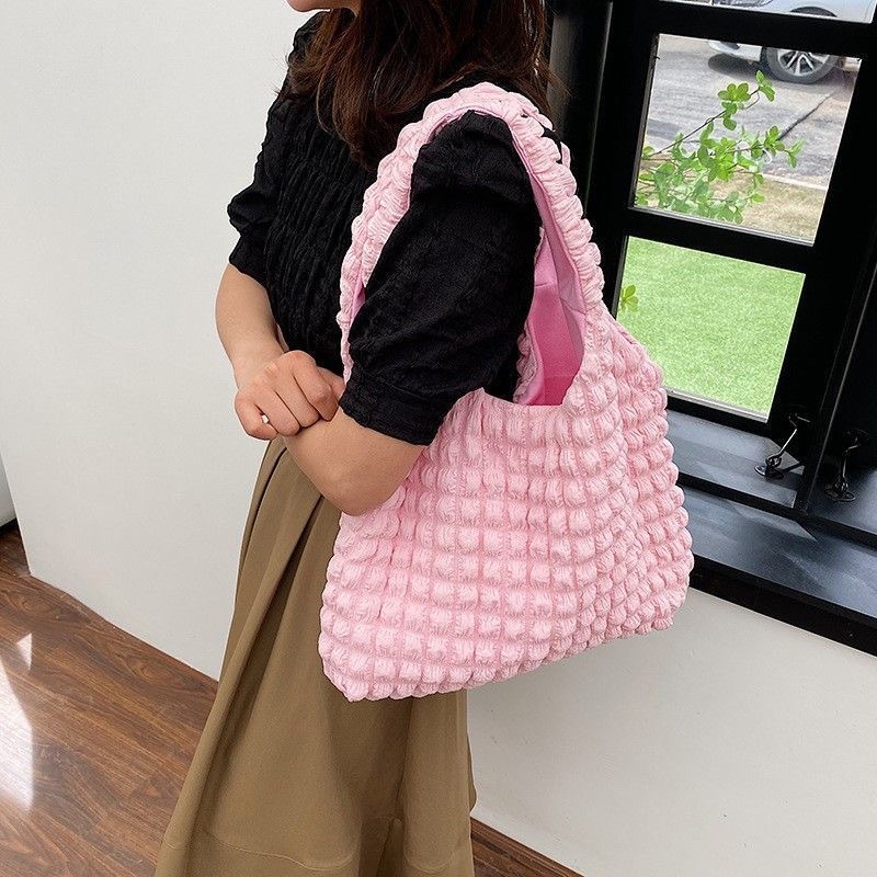 韩版褶皱泡泡芙包少女单肩手拎上班便当包潮大容量云朵腋下托特包