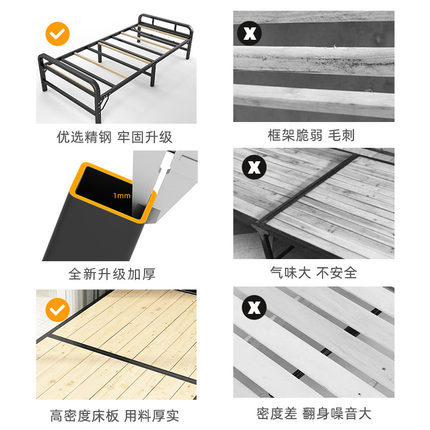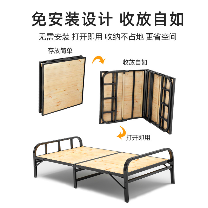 单人1米1.2米木板折叠床租房床单人床钢木床折叠床家用救灾折叠床