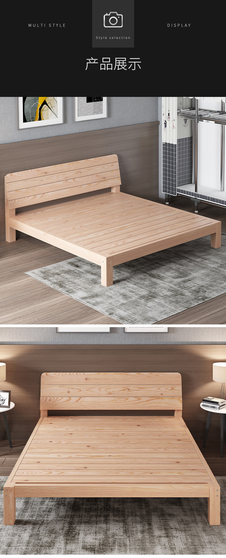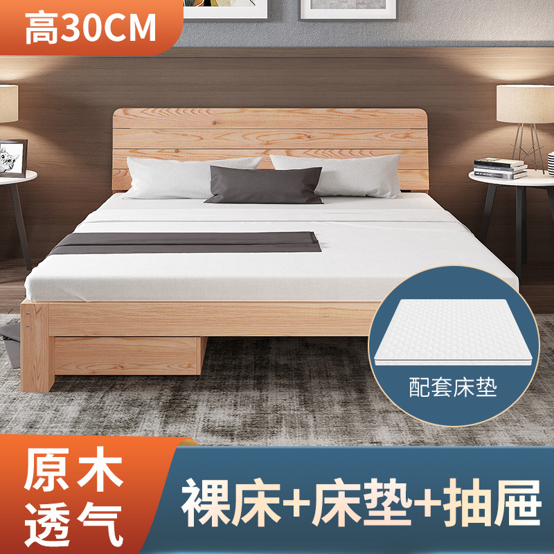 1.5 m dormitory double solid wood bed 1.8m rental room simple single bed 1.2 bed frame breathable bed board