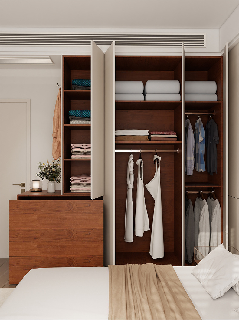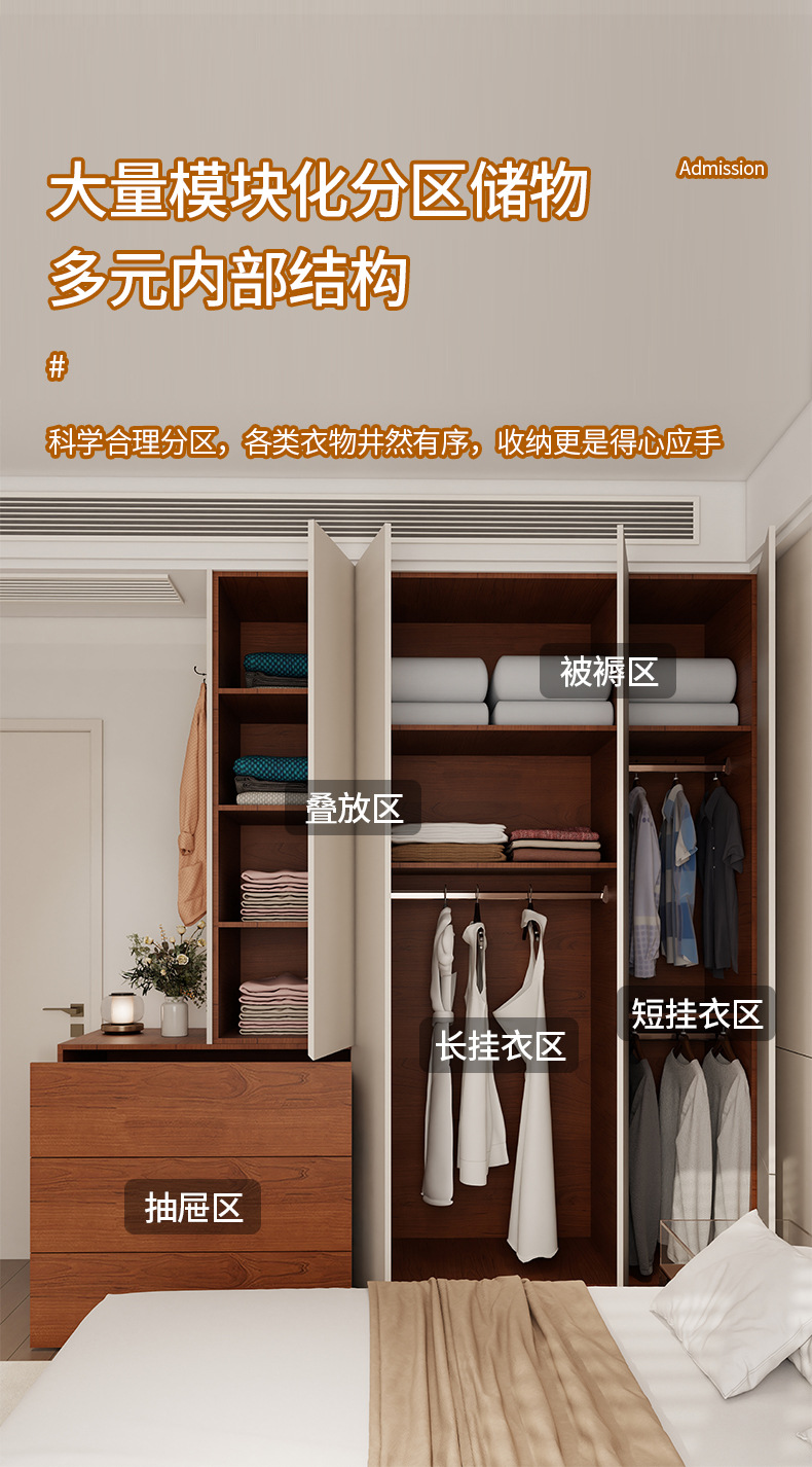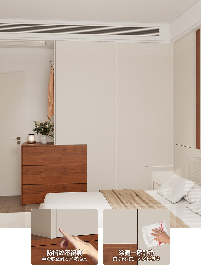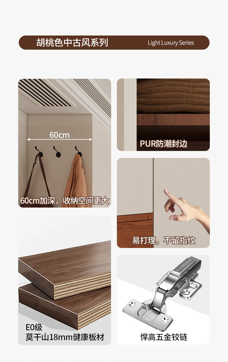 新款奶油复古风小红书爆款莫干山实木欧松板卧室衣柜落地式衣橱柜