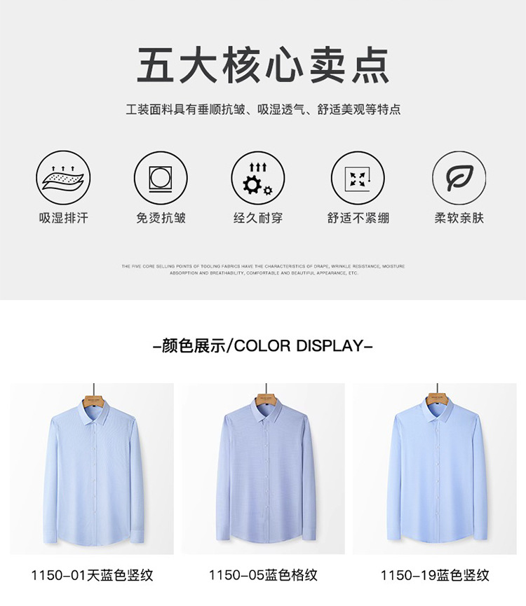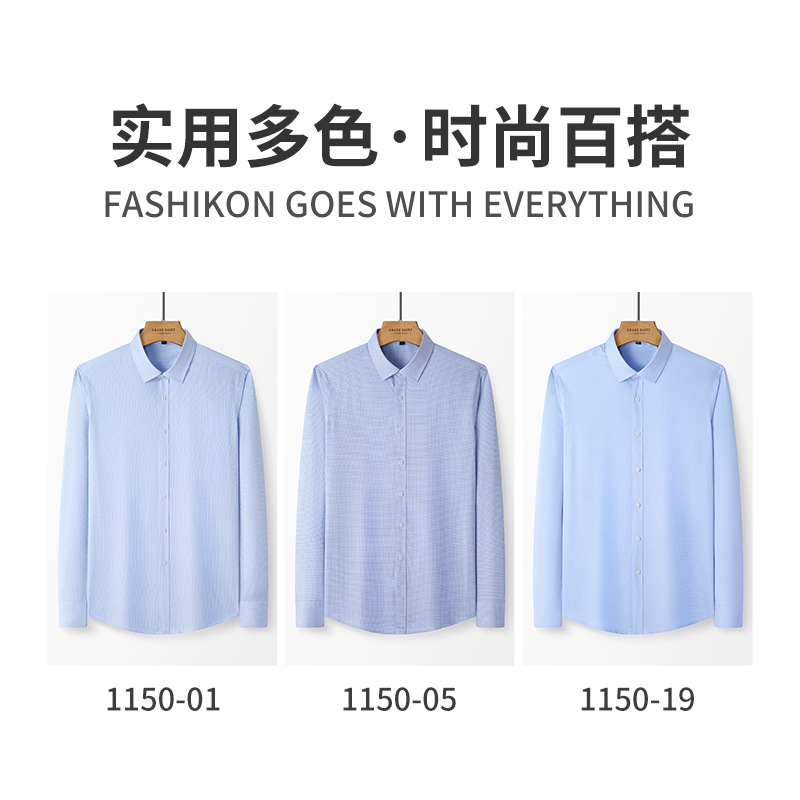 新款男士商务条纹长袖衬衫天丝混纺亲肤时尚免烫竹纤维职业衬衣