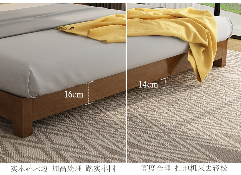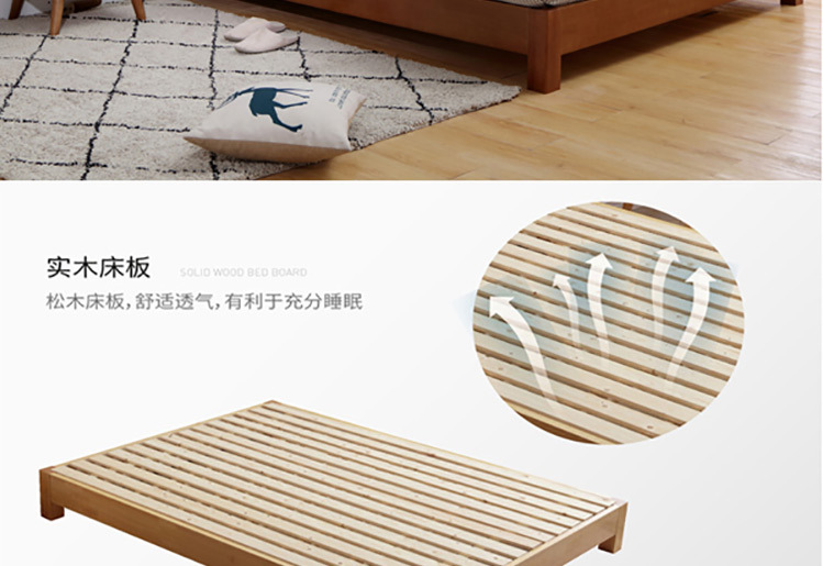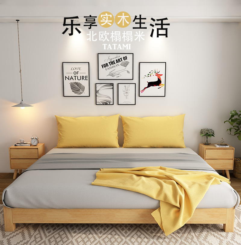 无床头实木榻榻米床1.2m单人床北欧现代简约双人小户型1.5m实木床