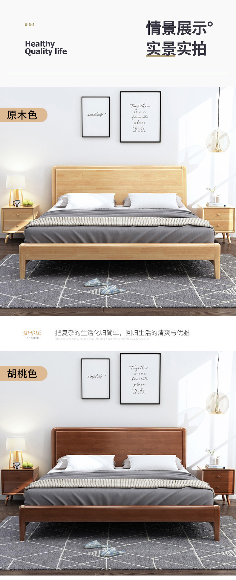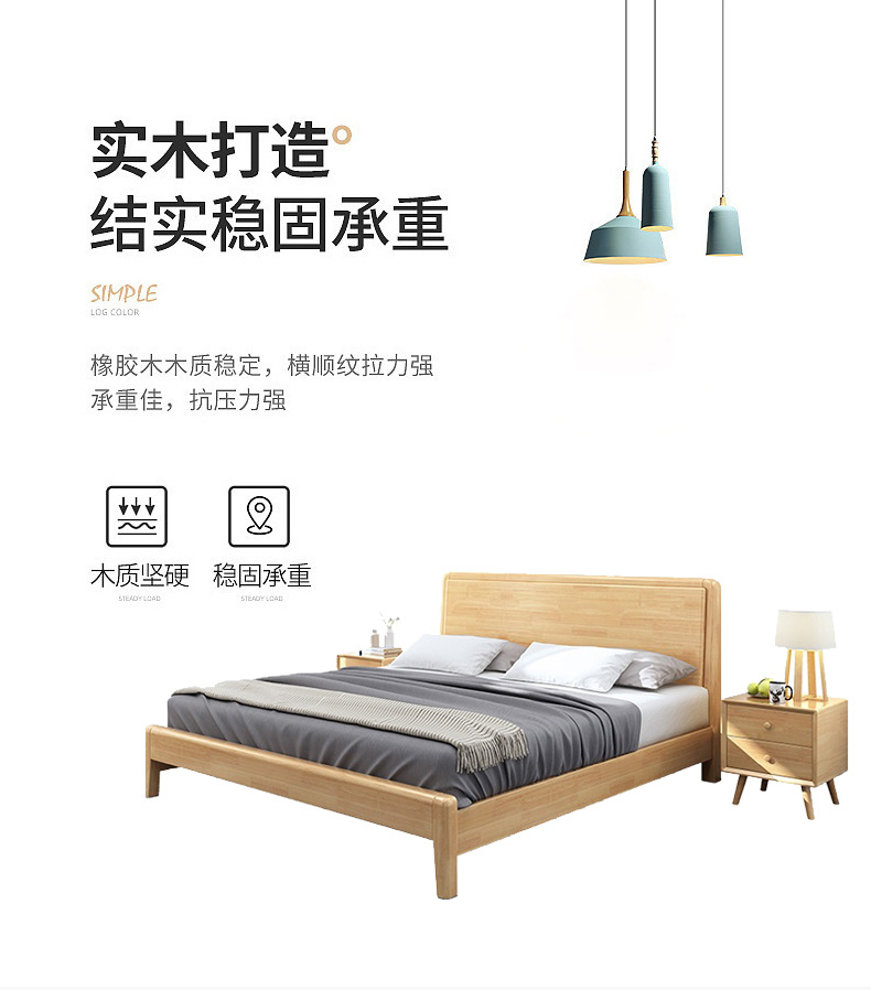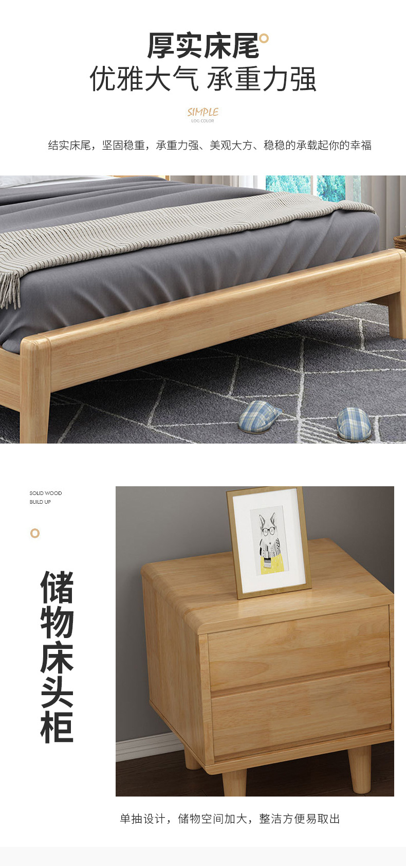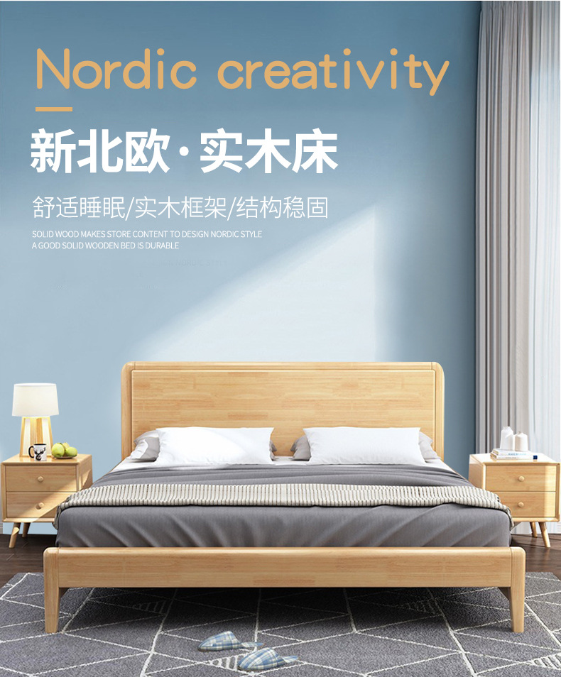 北欧实木床1米8简约现代床架双人床婚床木质民宿卧室1.5m单人床