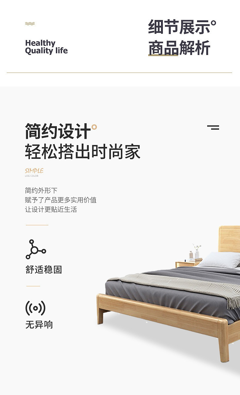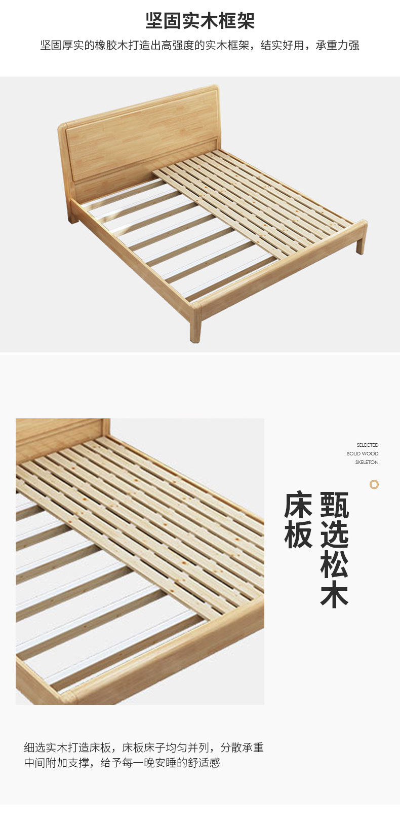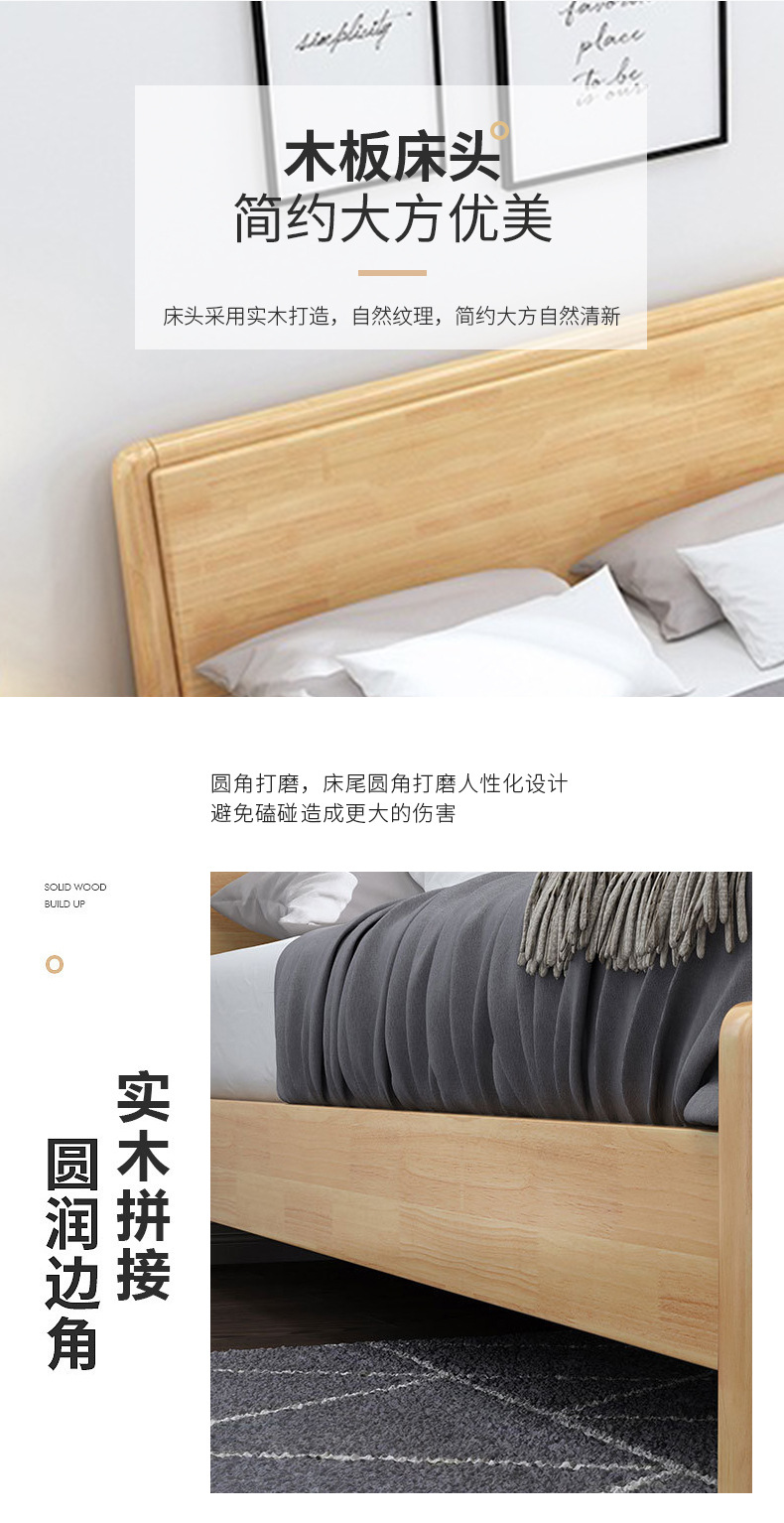 北欧实木床1米8简约现代床架双人床婚床木质民宿卧室1.5m单人床