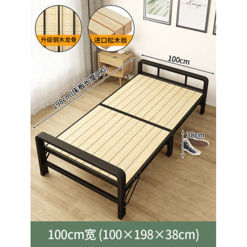 单人1米1.2米木板折叠床租房床单人床钢木床折叠床家用救灾折叠床