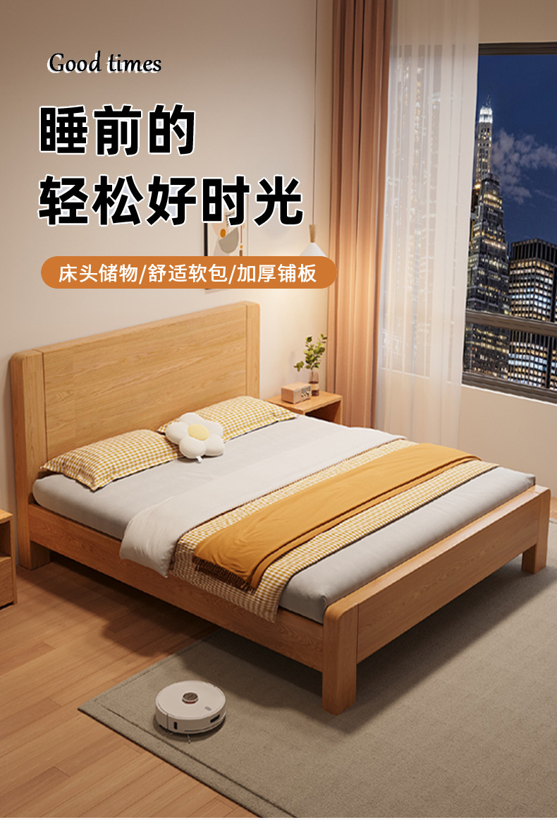 新款大板床原木色1.8m双人床出租房屋用1.5米小户型经济型单人床