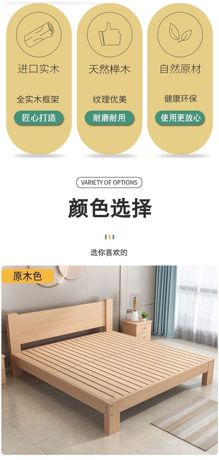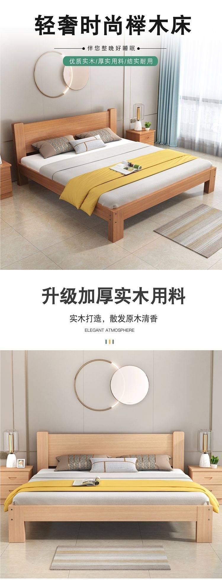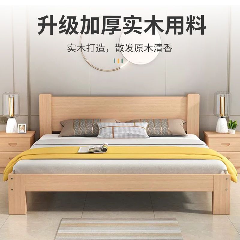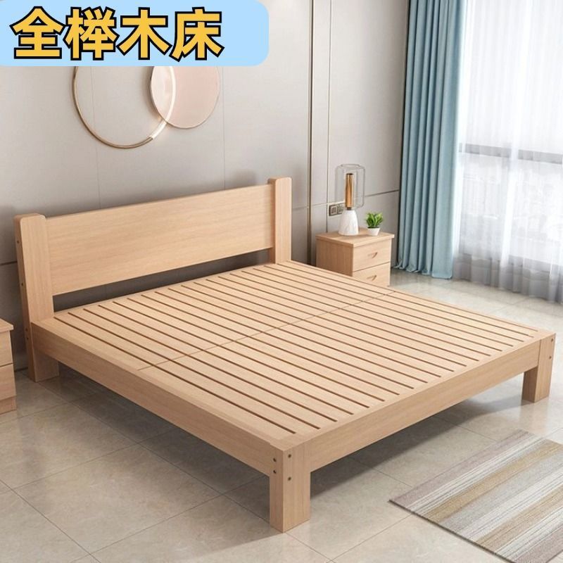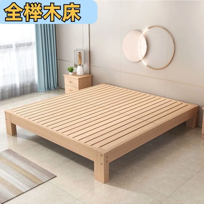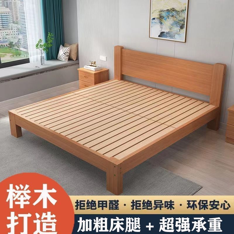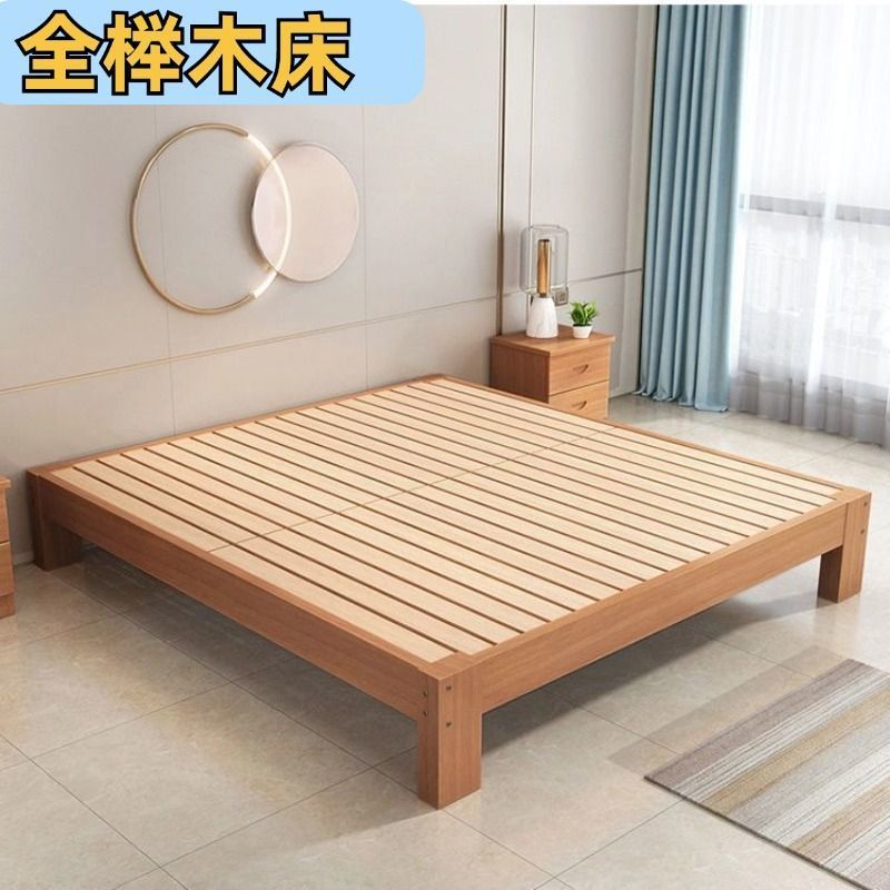 全榉木木床现代简约1.8双人1.5家用单人简易榻榻米床架榉木床加厚