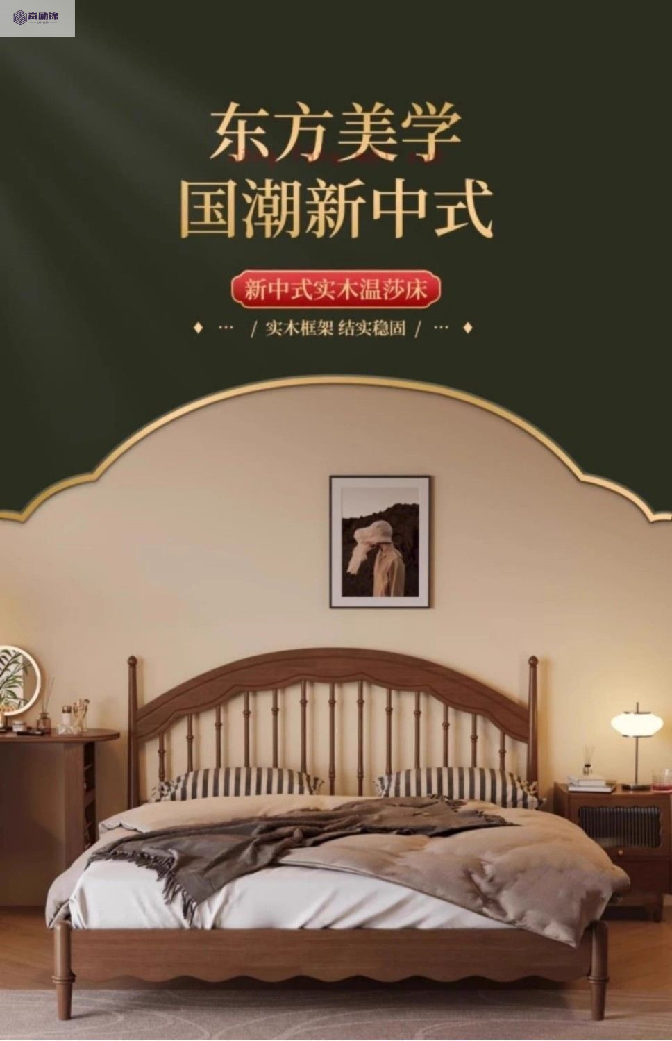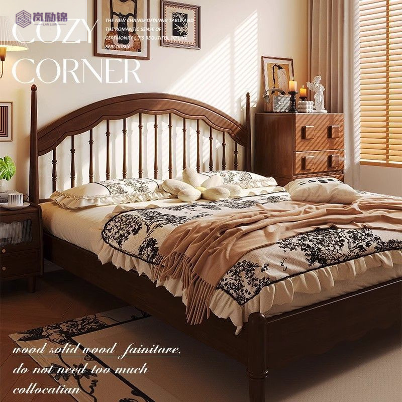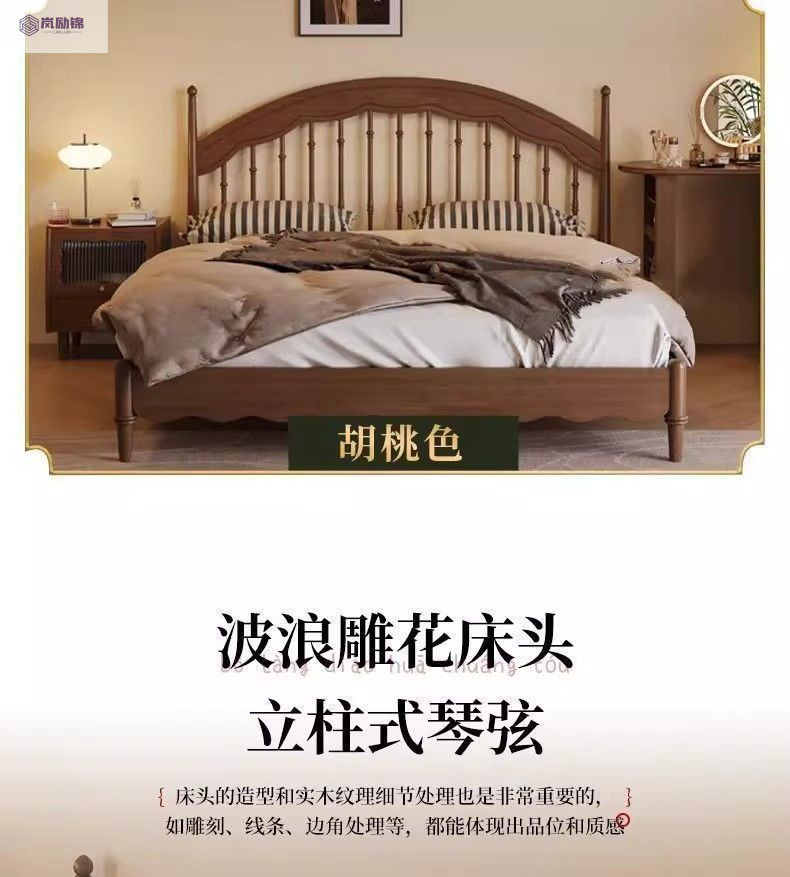 新款单人床纯实木温莎大床全实木木床古风1.8双人床1.5美式竖琴