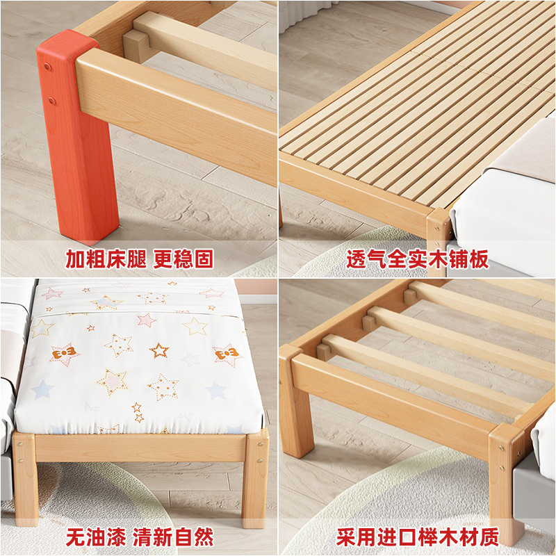 榉木儿童床拼接床婴儿小床公主床小孩单人床边床加宽实木拼接大床