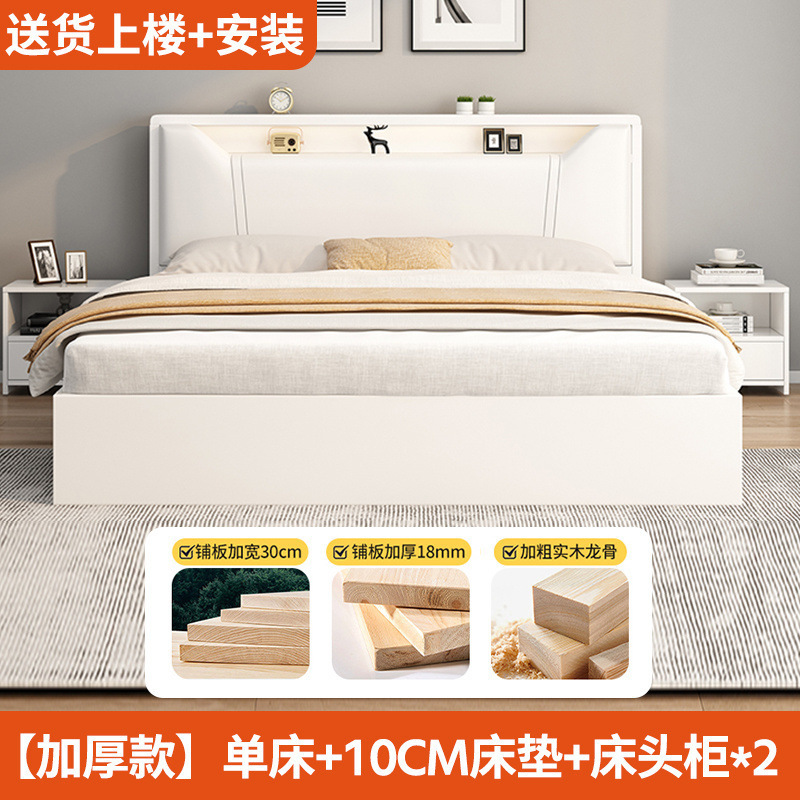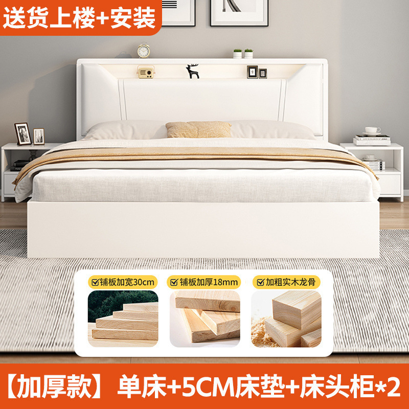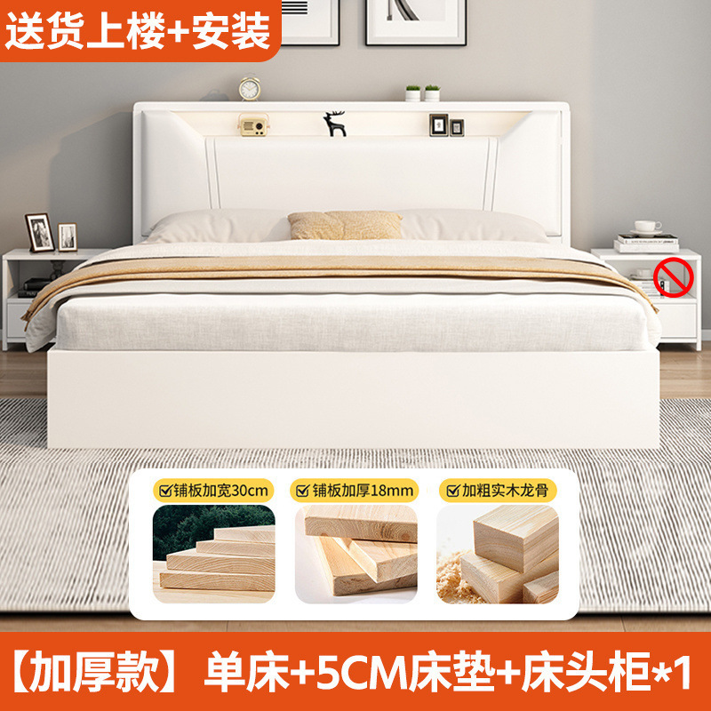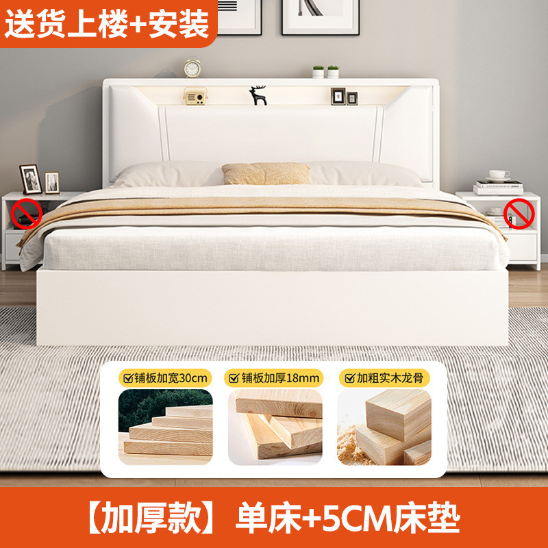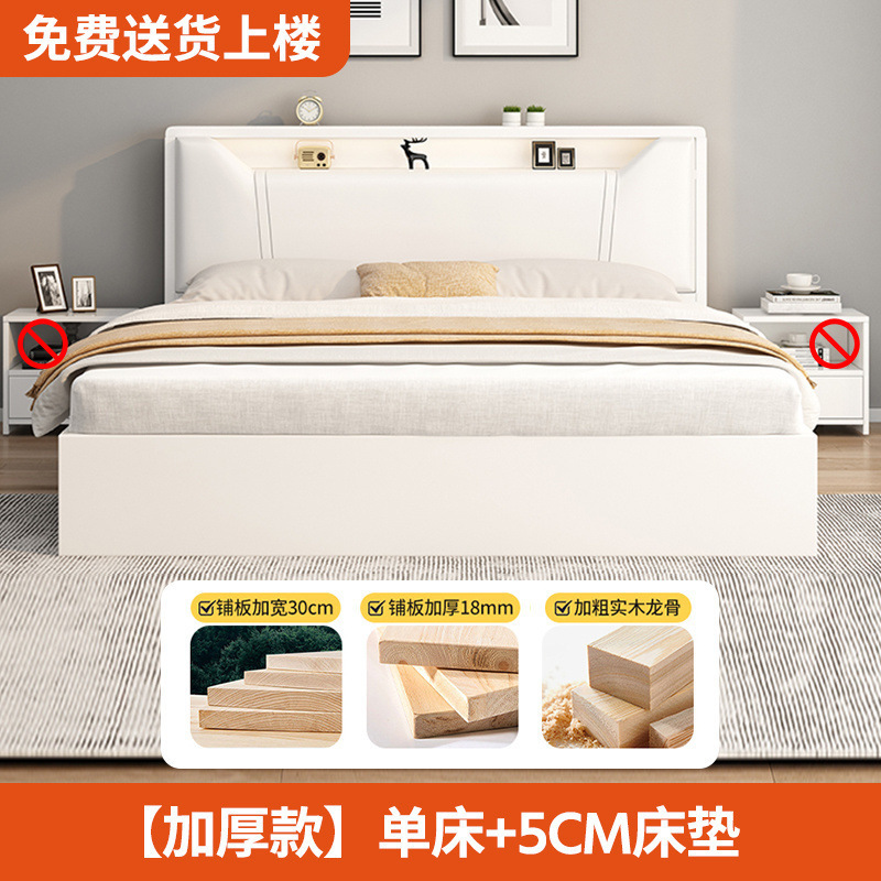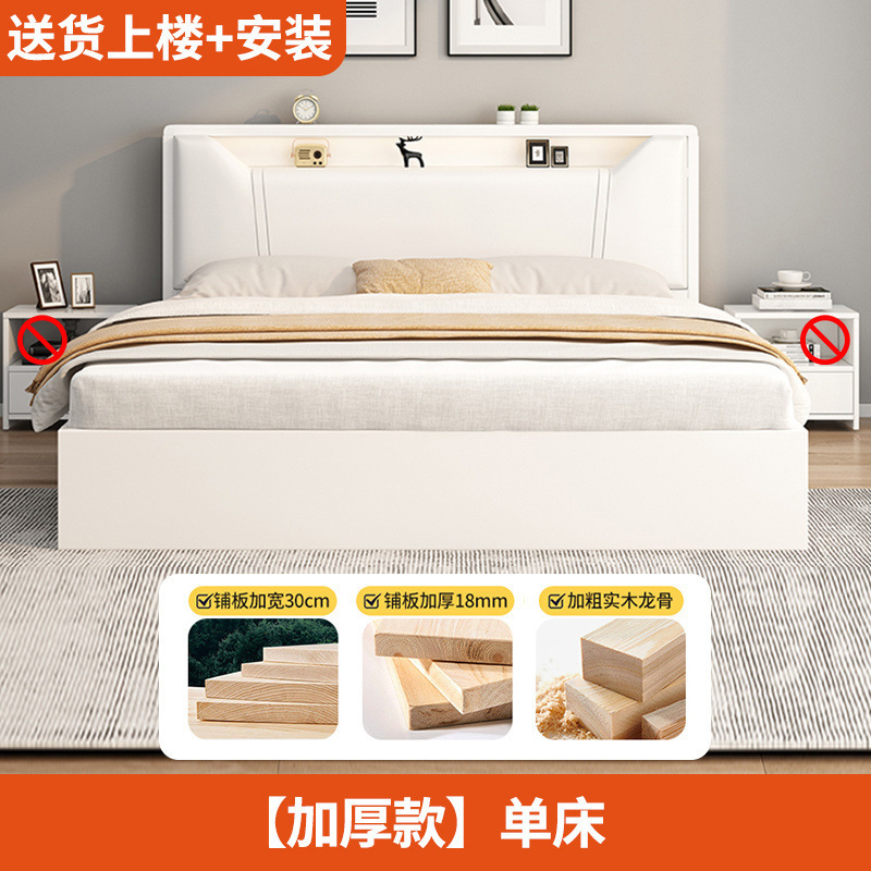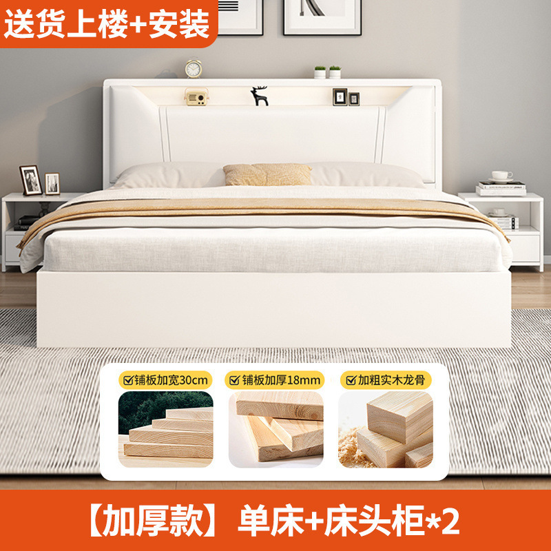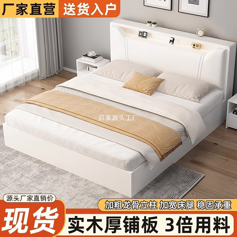 【超稳承重】现代简约木床18家用双人床主卧15单人床板式出租房12