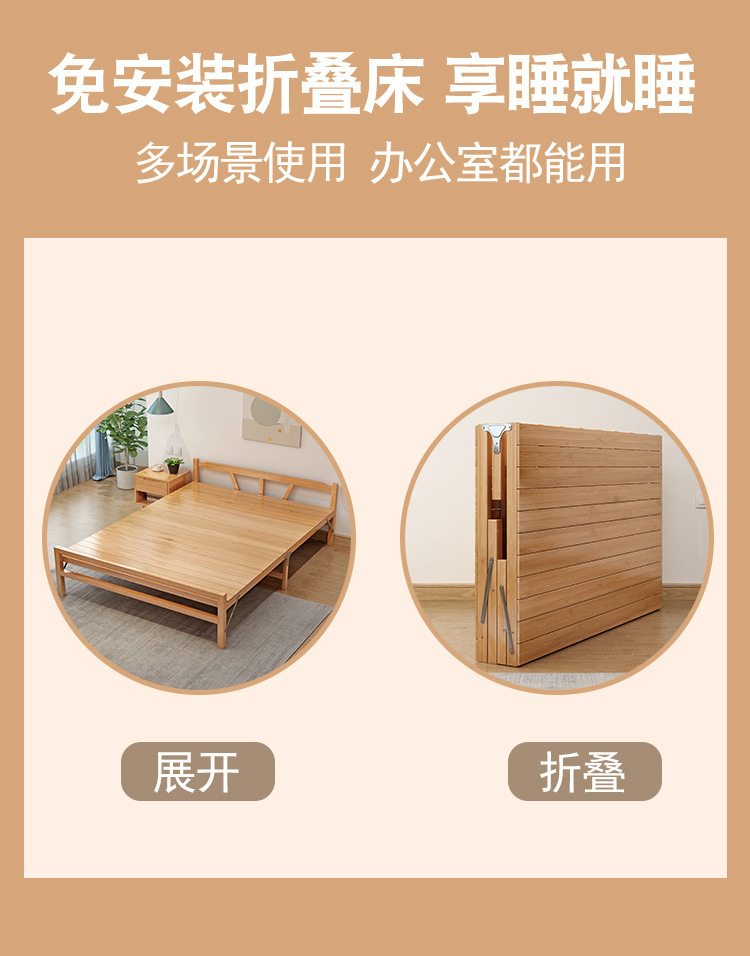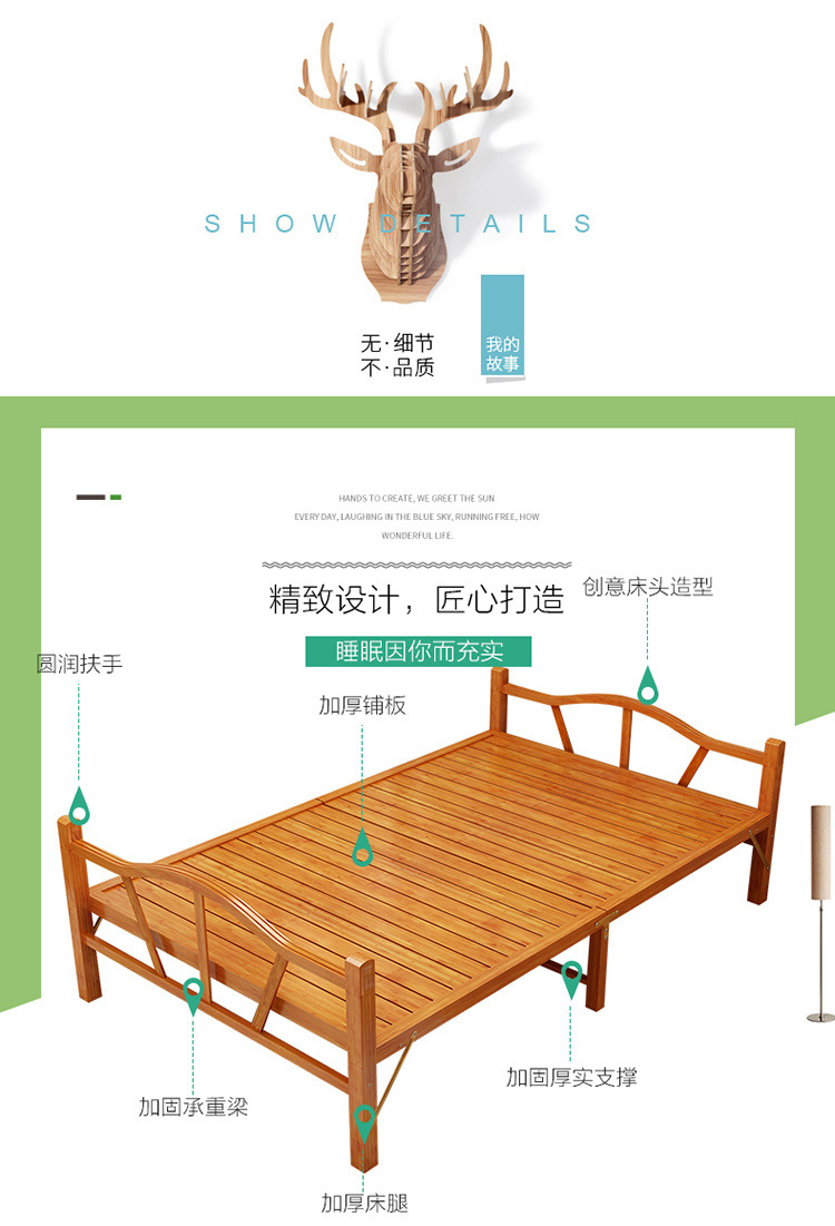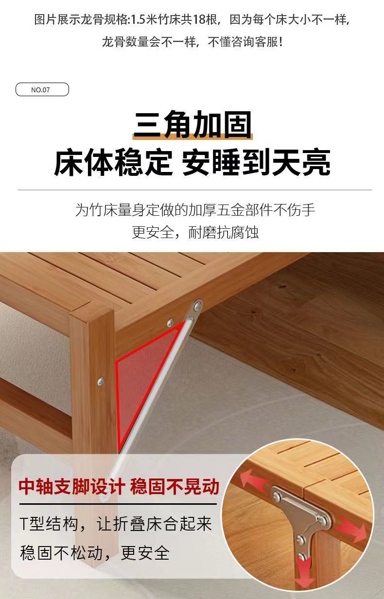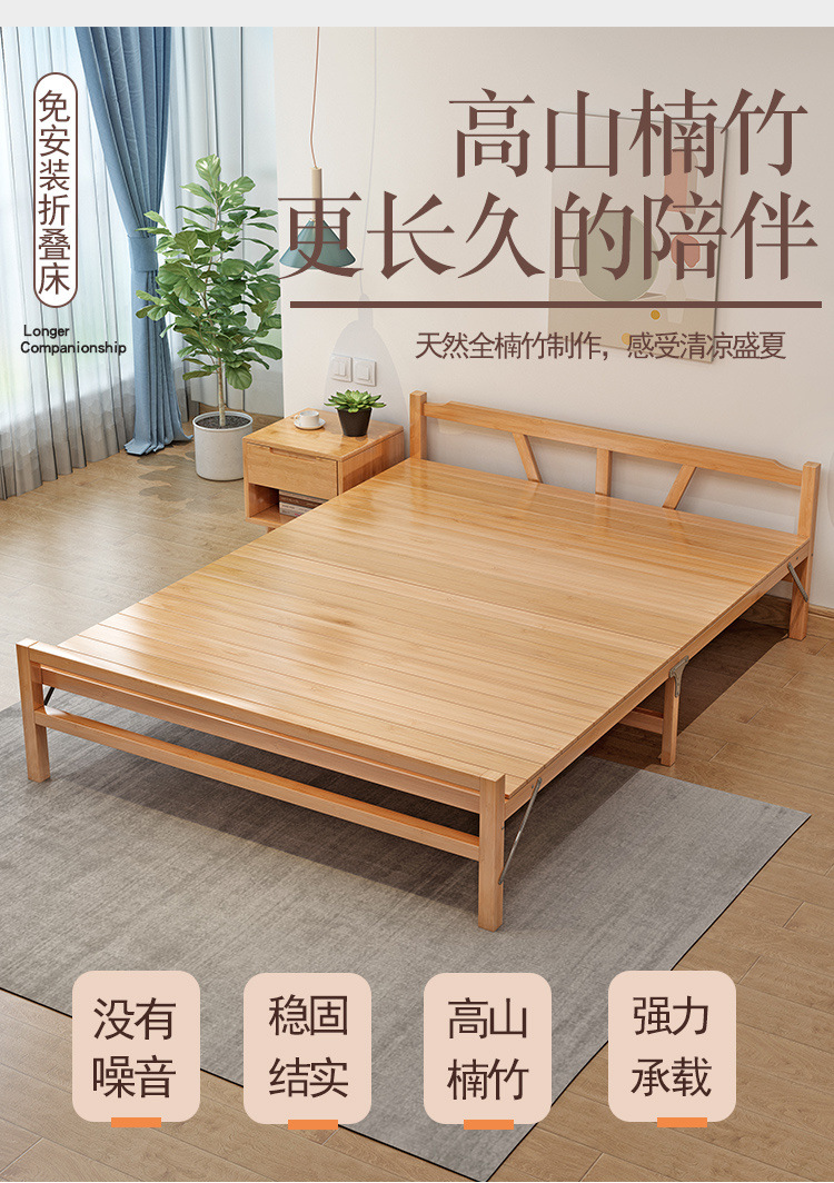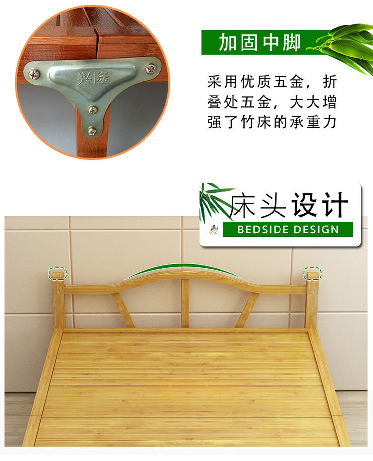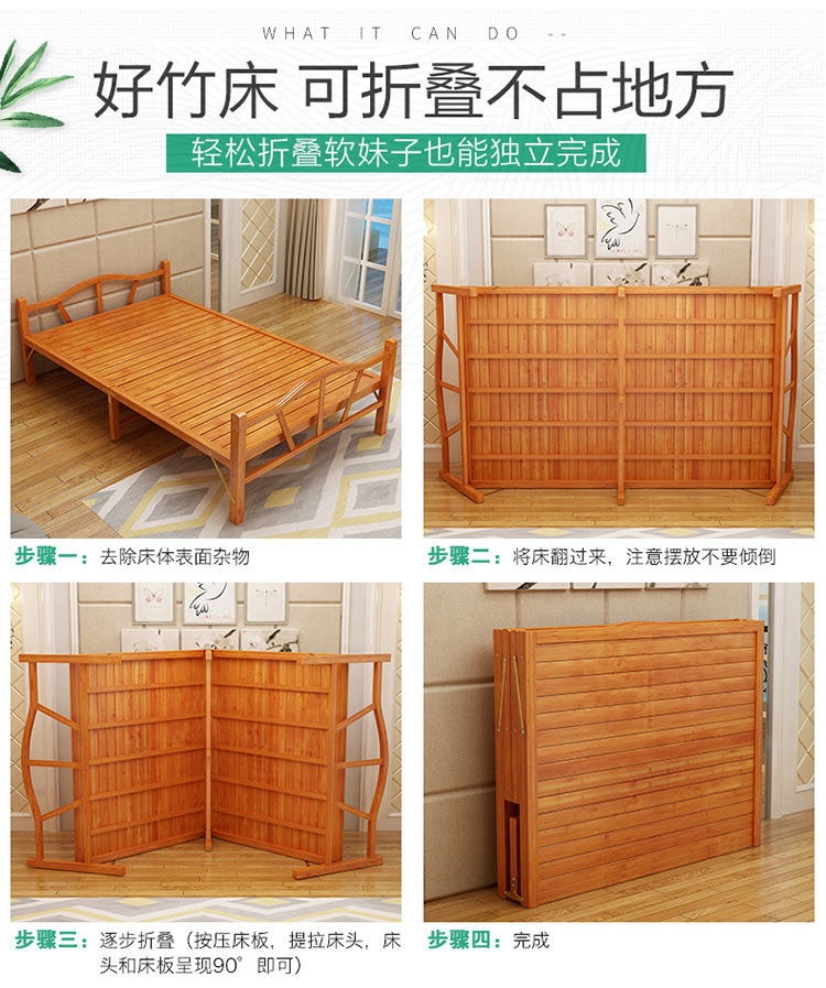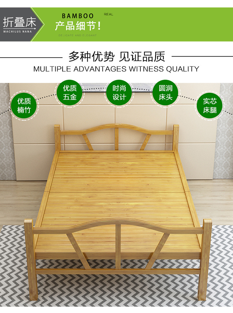 竹床折叠床单人双人简易家用款成人竹板凉床一米二出租房硬板木床