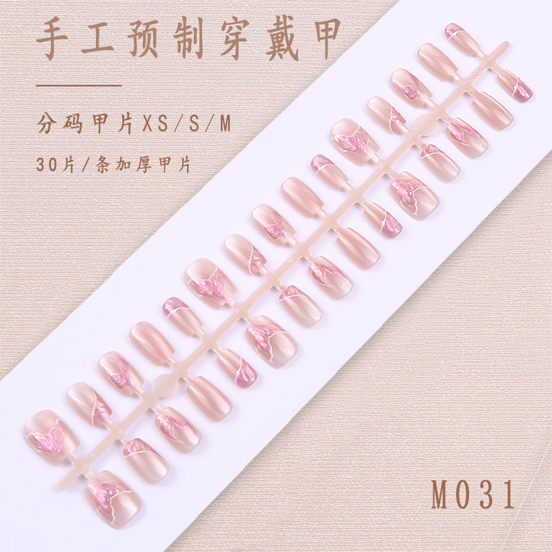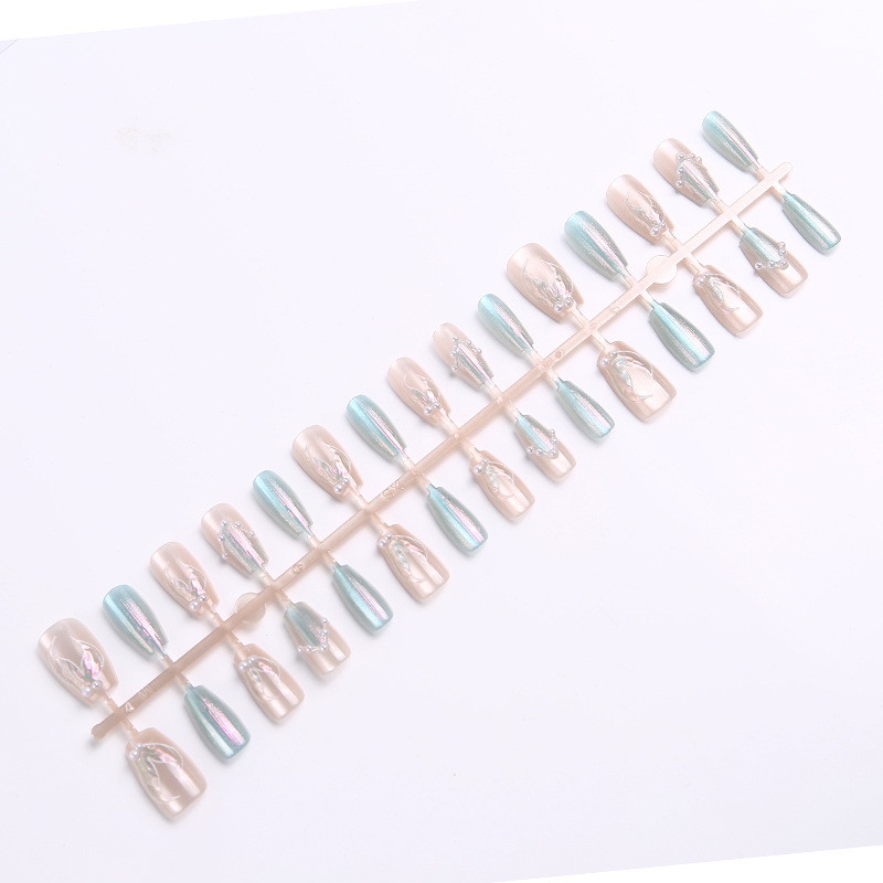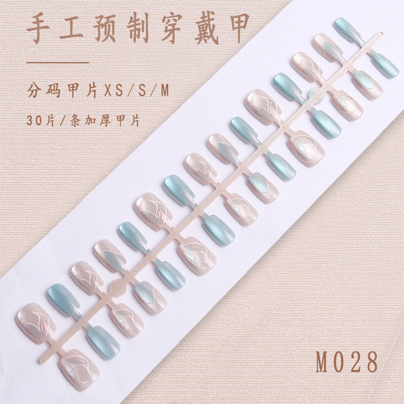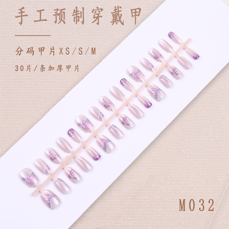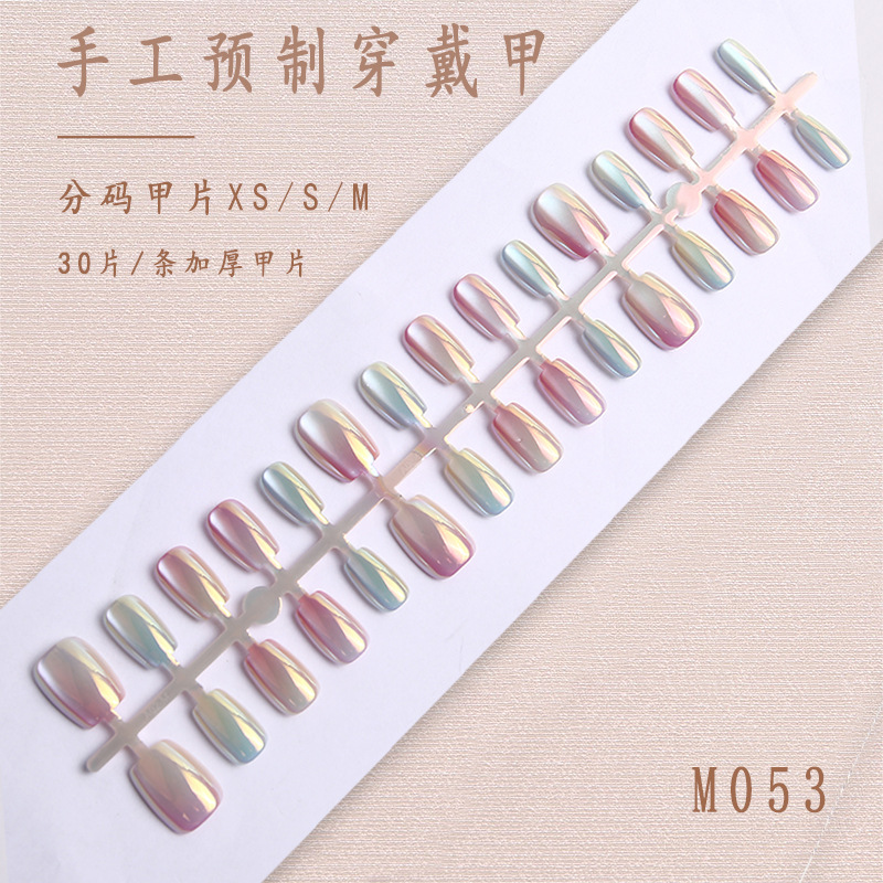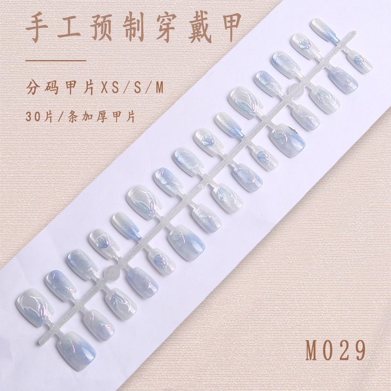 【30片】分码条装加厚甲片珍珠鱼尾指甲贴浮雕短款穿戴甲义乌美甲