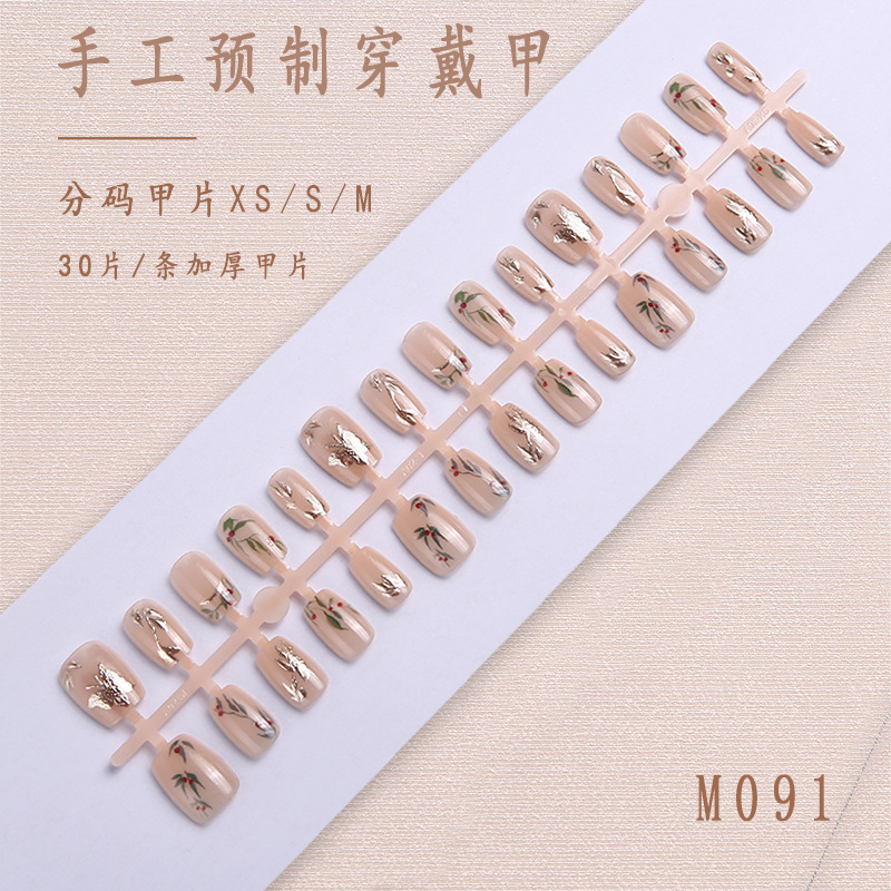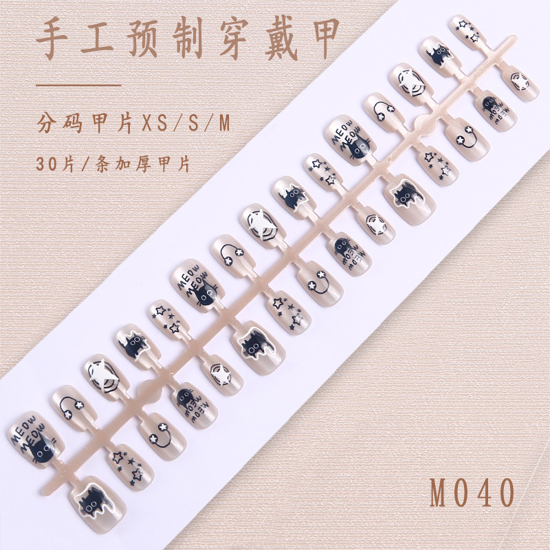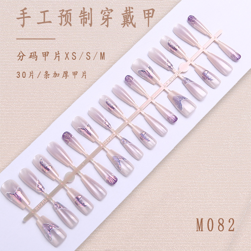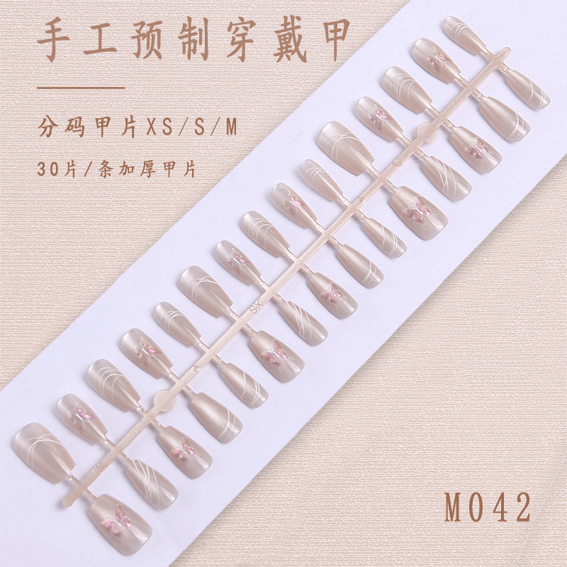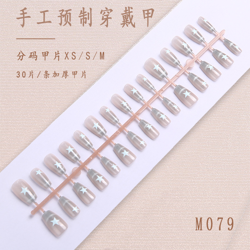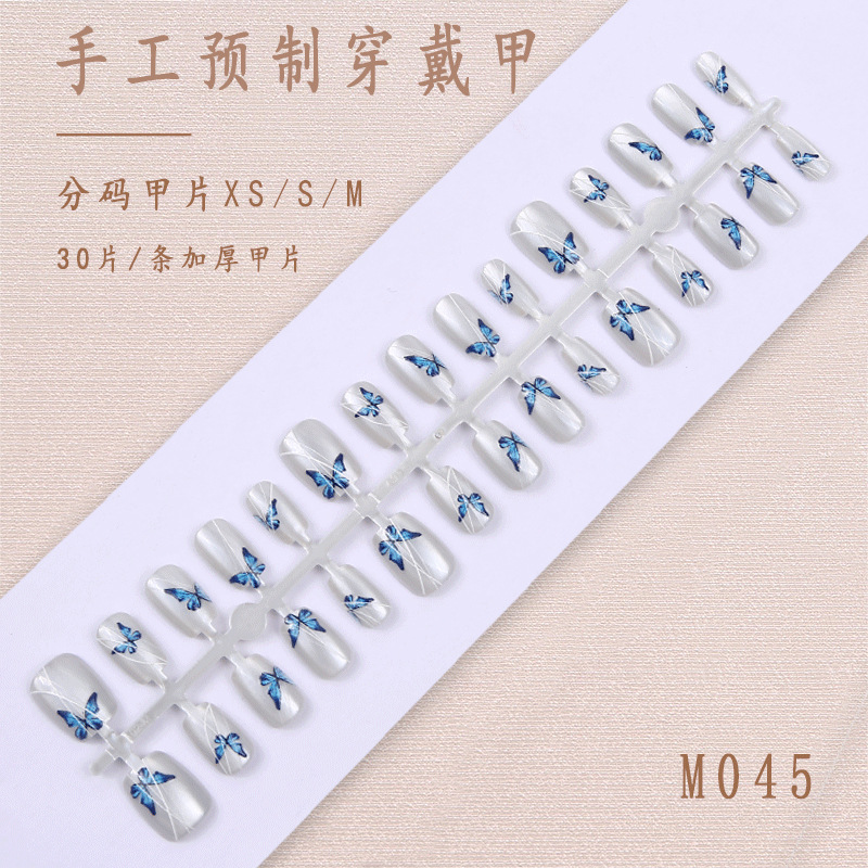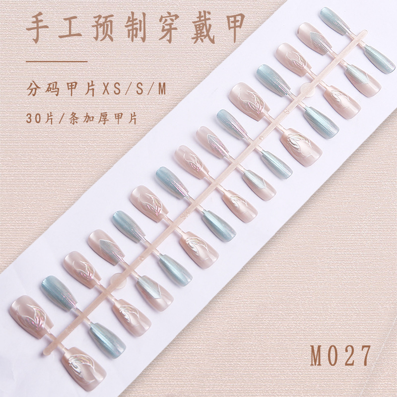 【30片】分码条装加厚甲片珍珠鱼尾指甲贴浮雕短款穿戴甲义乌美甲
