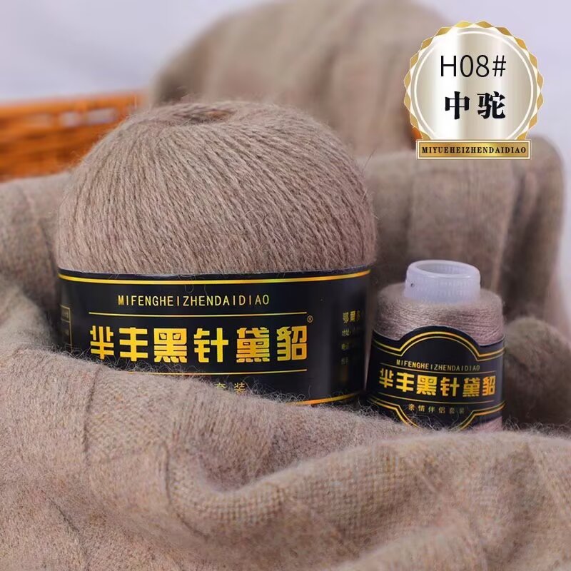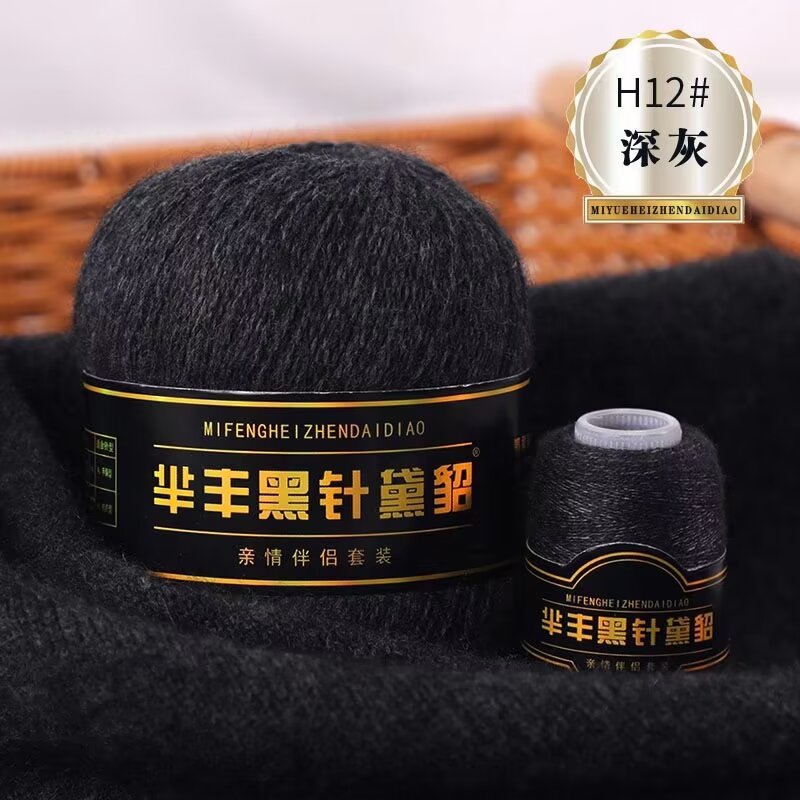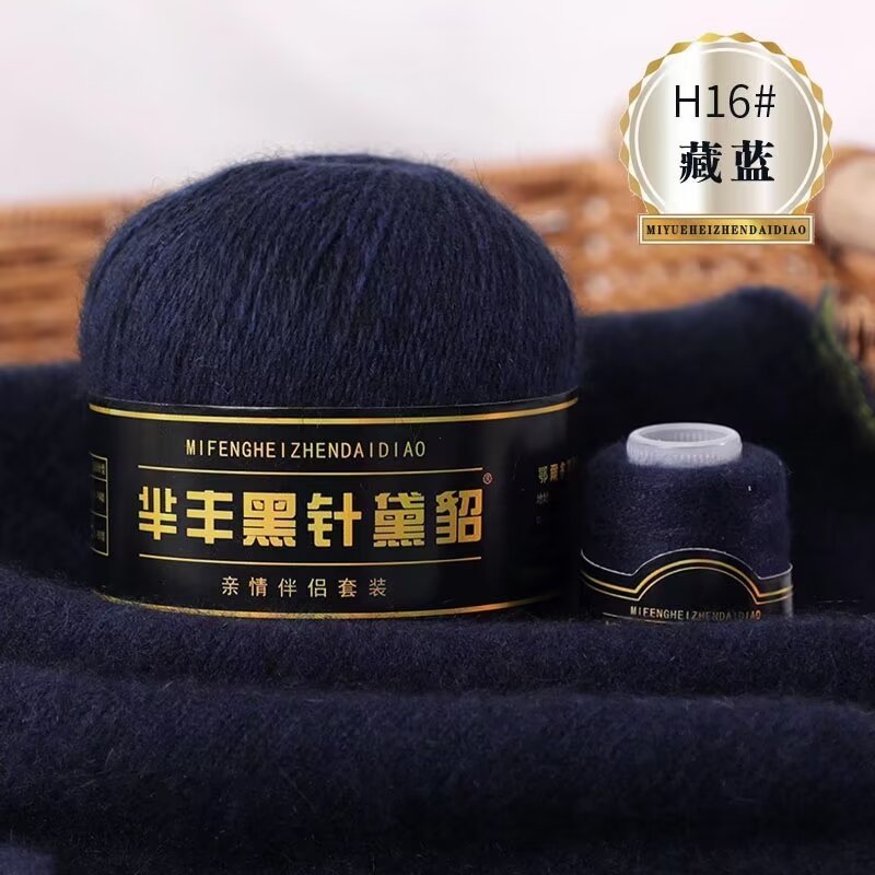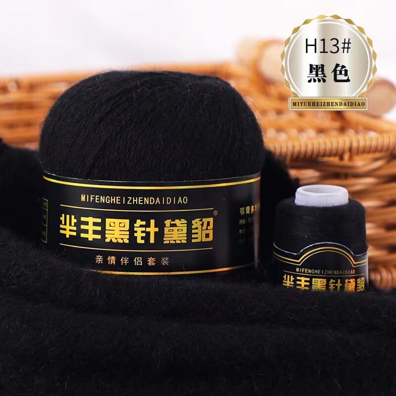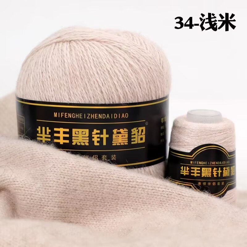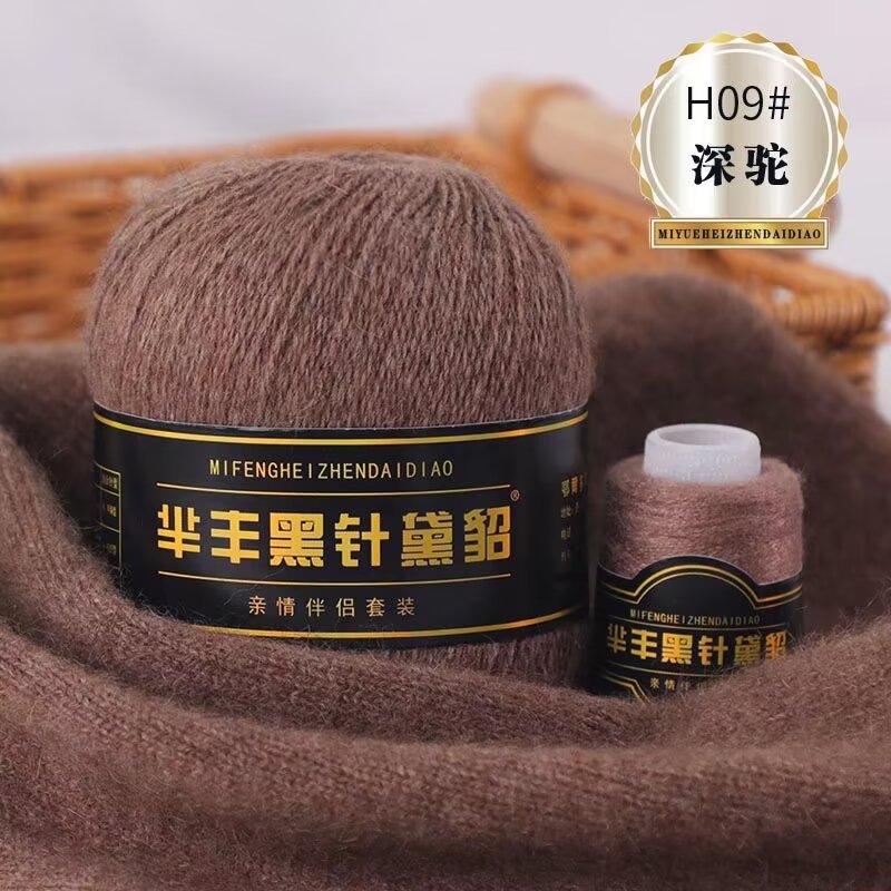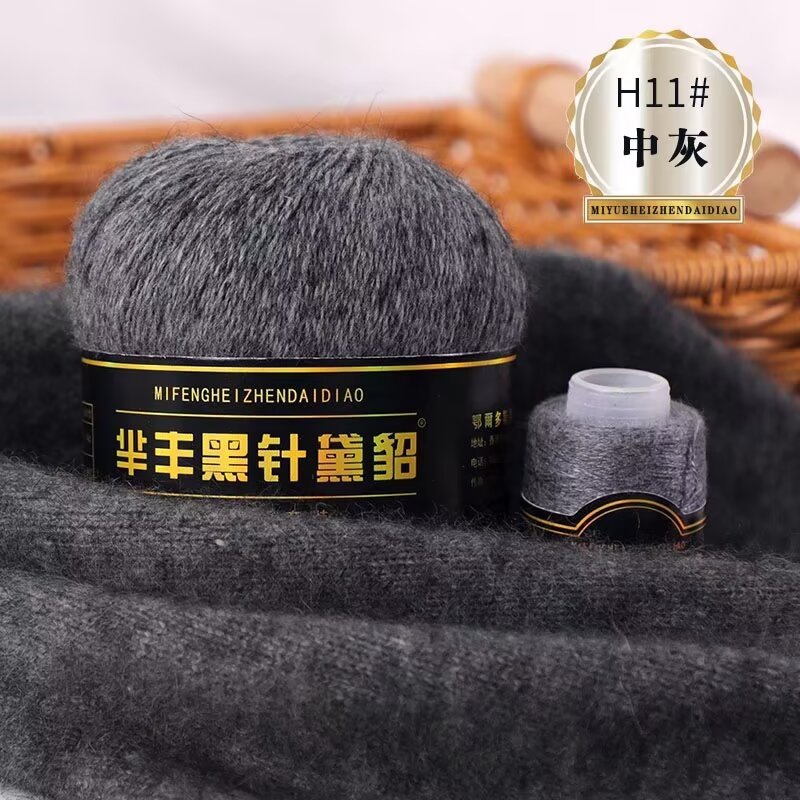 黑针黛貂6+6手工编织中粗长貂绒毛线山羊绒毛线亲肤围巾毛线