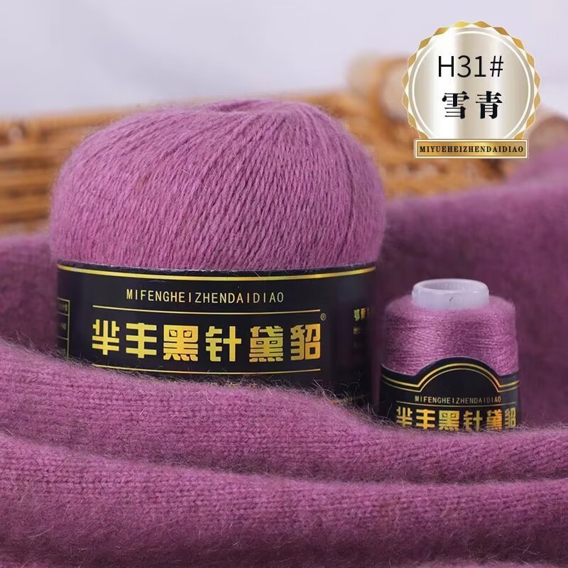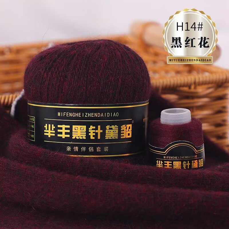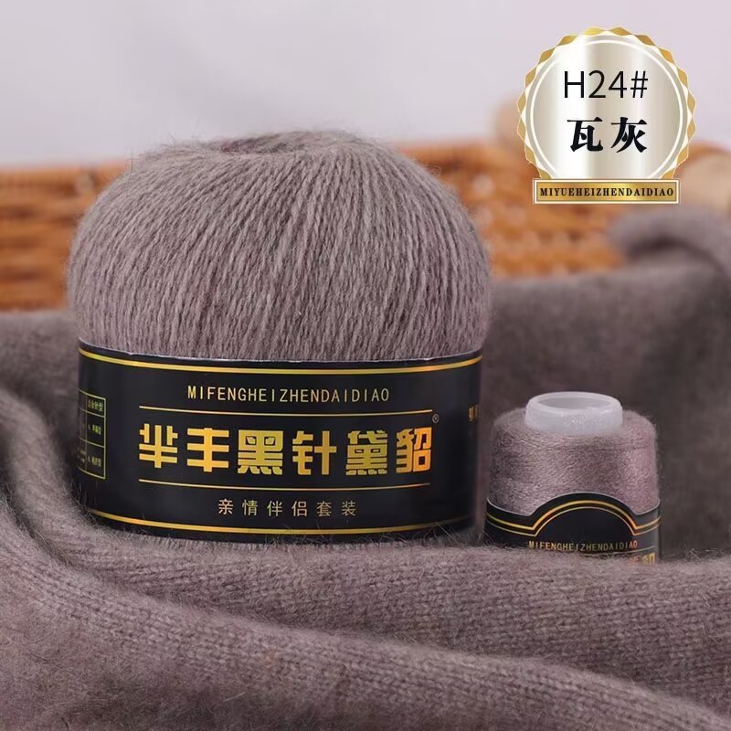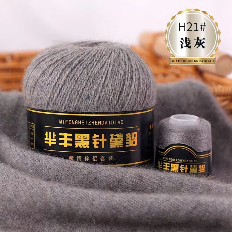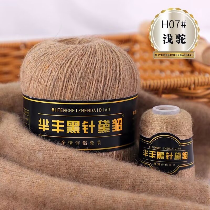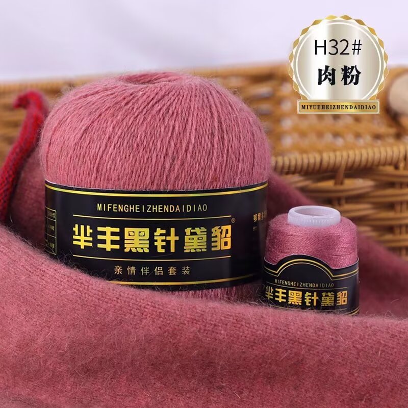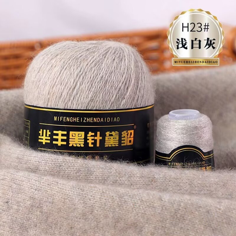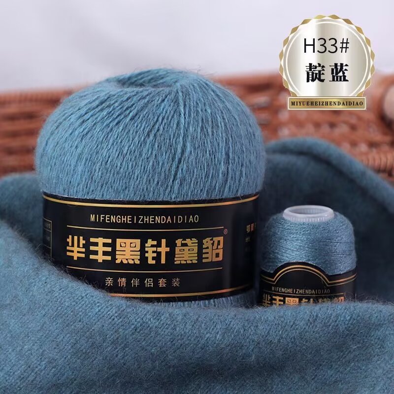 黑针黛貂6+6手工编织中粗长貂绒毛线山羊绒毛线亲肤围巾毛线