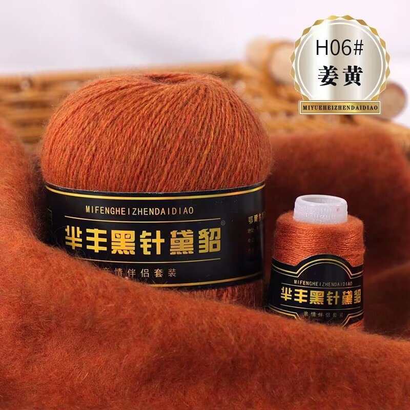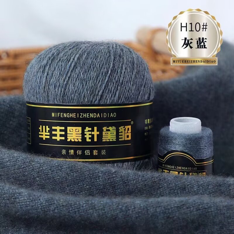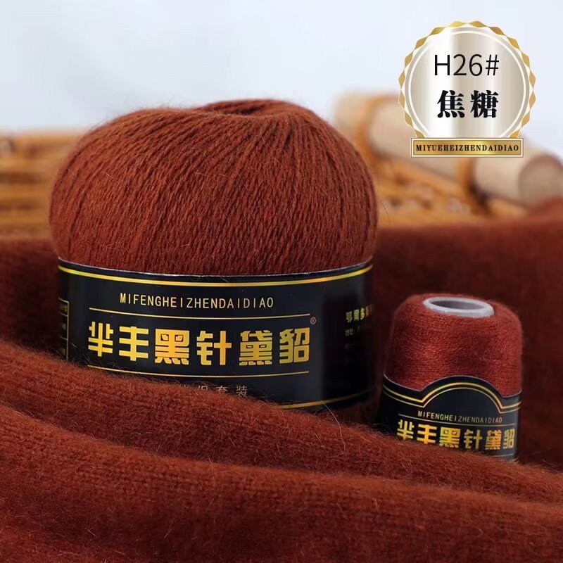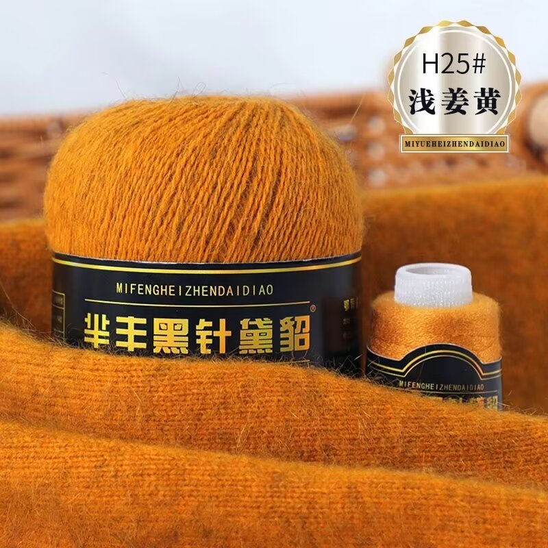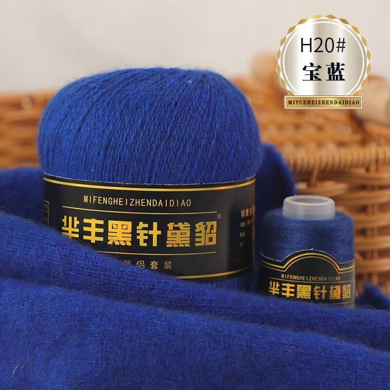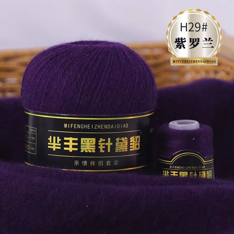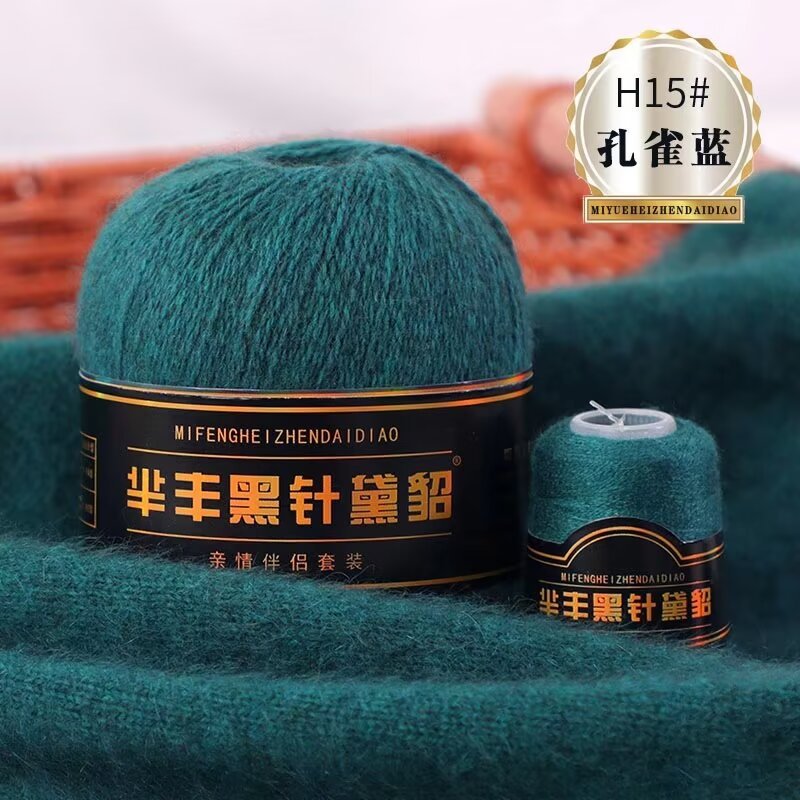 黑针黛貂6+6手工编织中粗长貂绒毛线山羊绒毛线亲肤围巾毛线