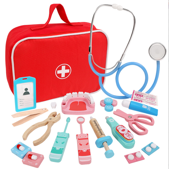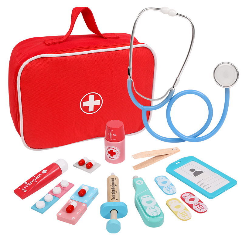 儿童木质仿真布袋医药箱0.65宝宝男女孩过家家医生打针玩具礼物
