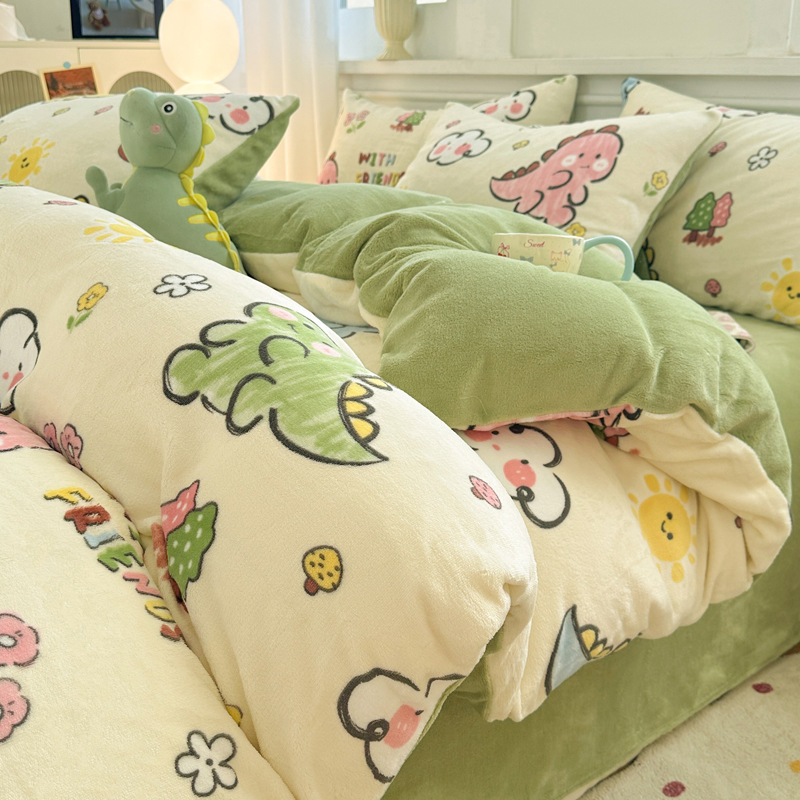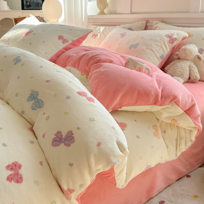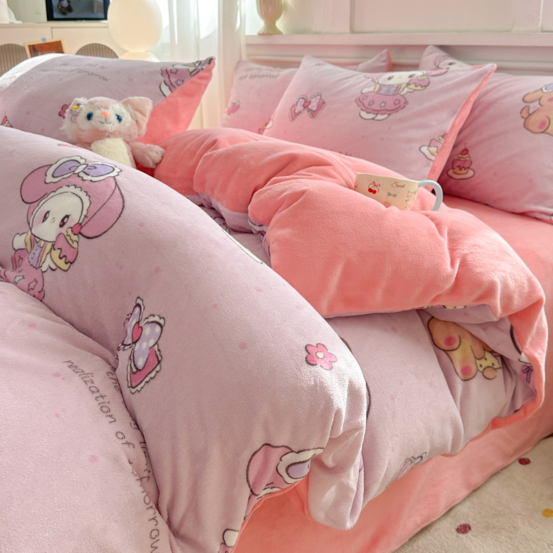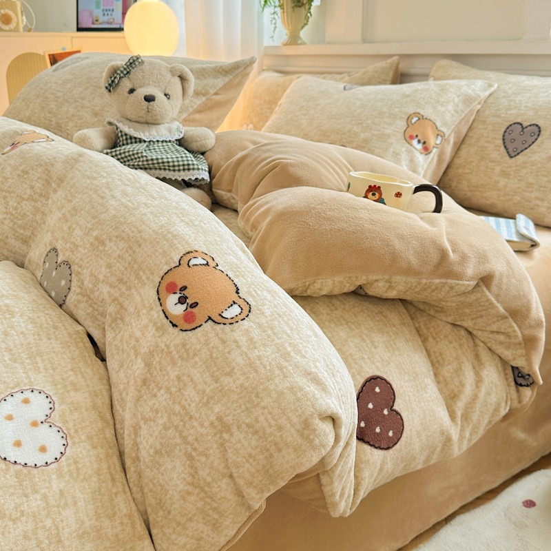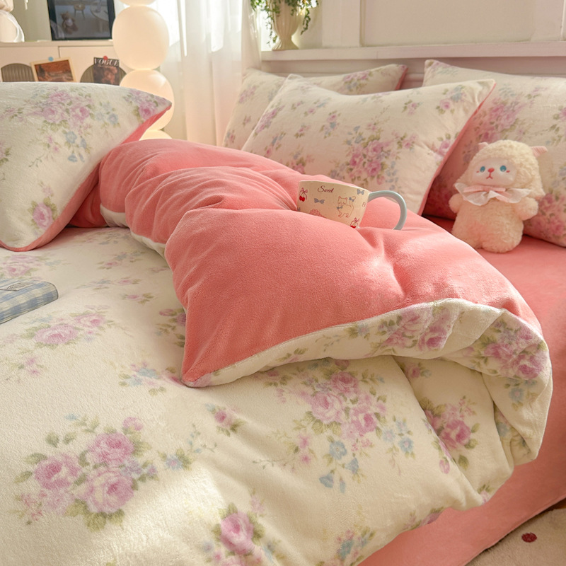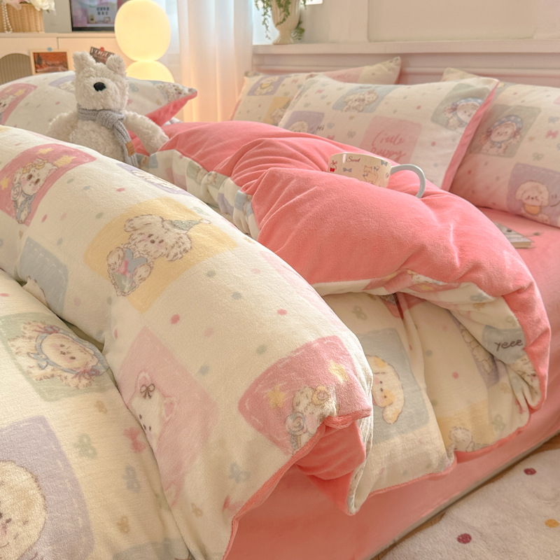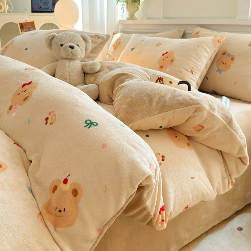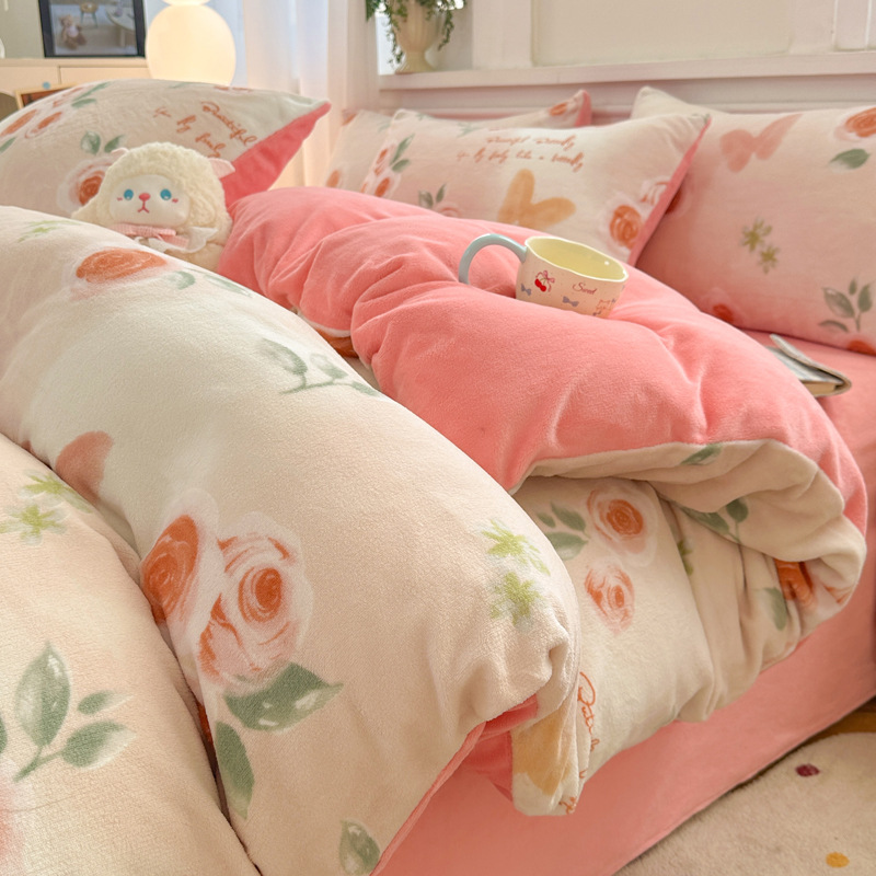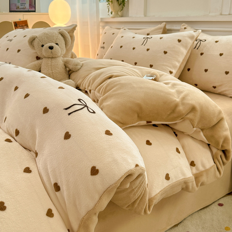 加厚保暖牛奶绒四件套被套床单珊瑚绒被罩双面法兰绒加绒冬季床上