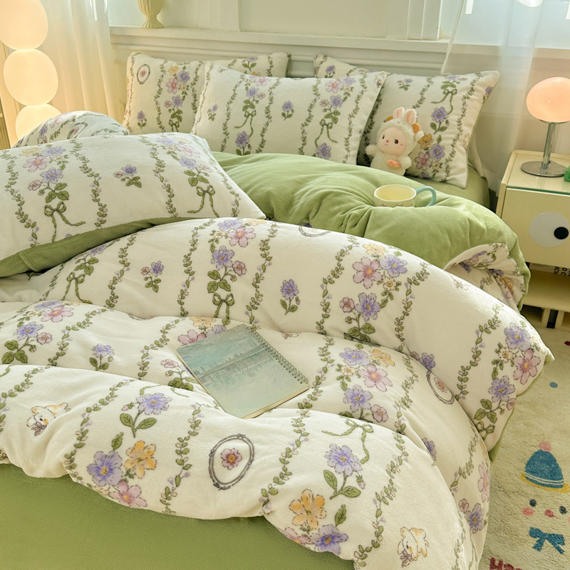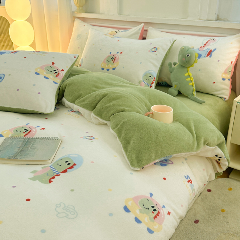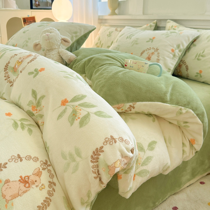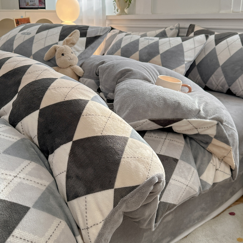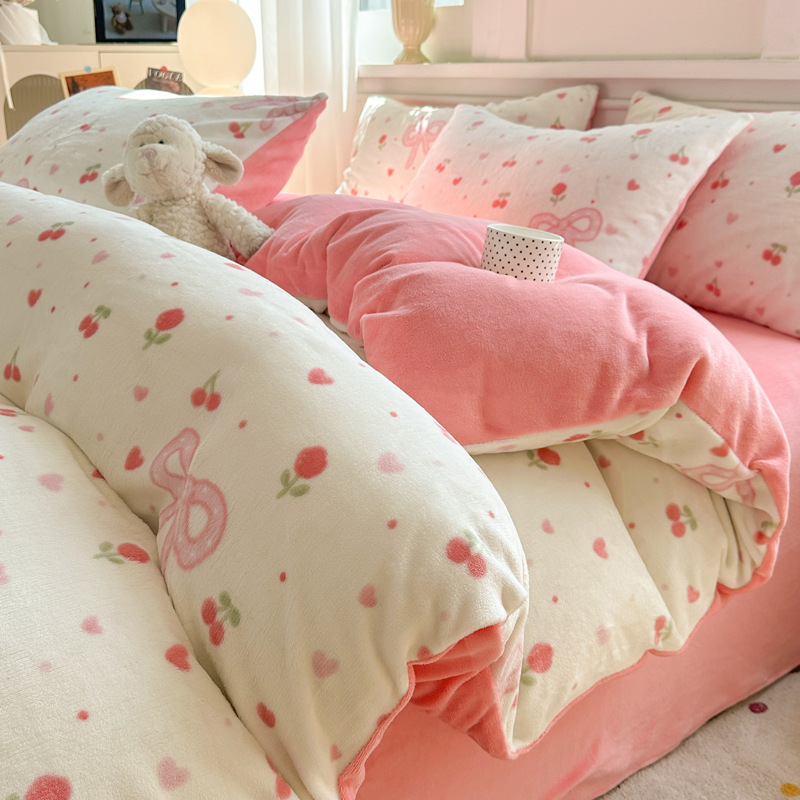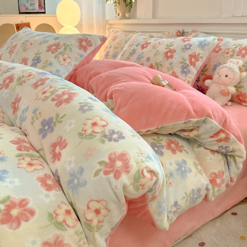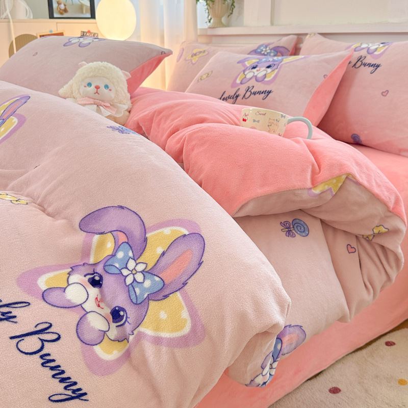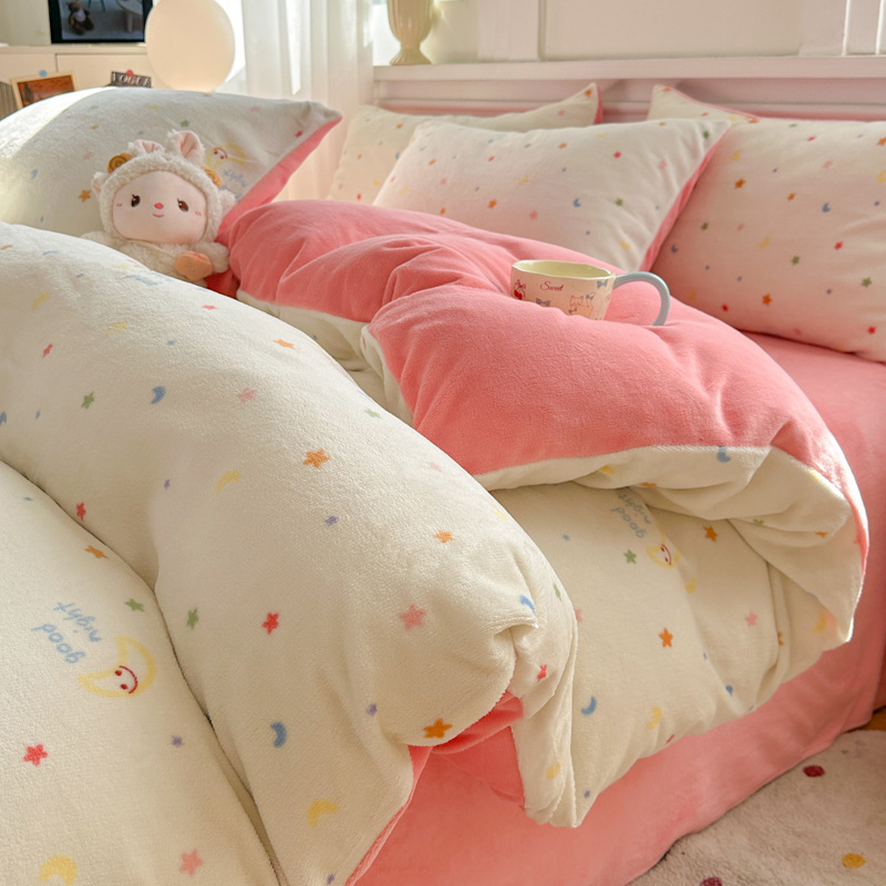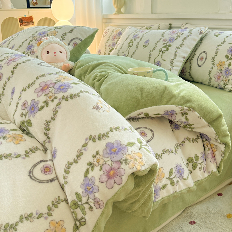 加厚保暖牛奶绒四件套被套床单珊瑚绒被罩双面法兰绒加绒冬季床上